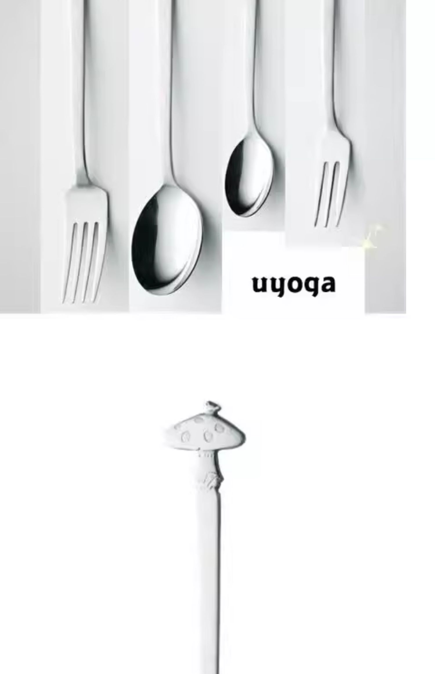 日本进口高桑金属蘑菇甜点叉/甜点匙/茶匙/蛋糕叉
