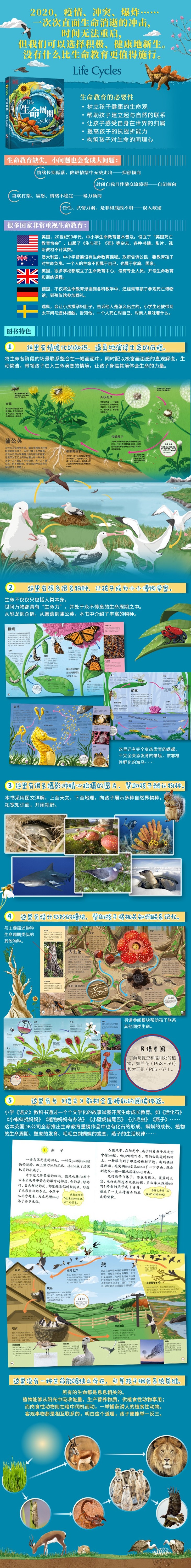 📚全书用令人惊叹的儿童插图书以创新的视角看待生命的循环,包括动物、恐龙、星星、火山,甚至你自己。