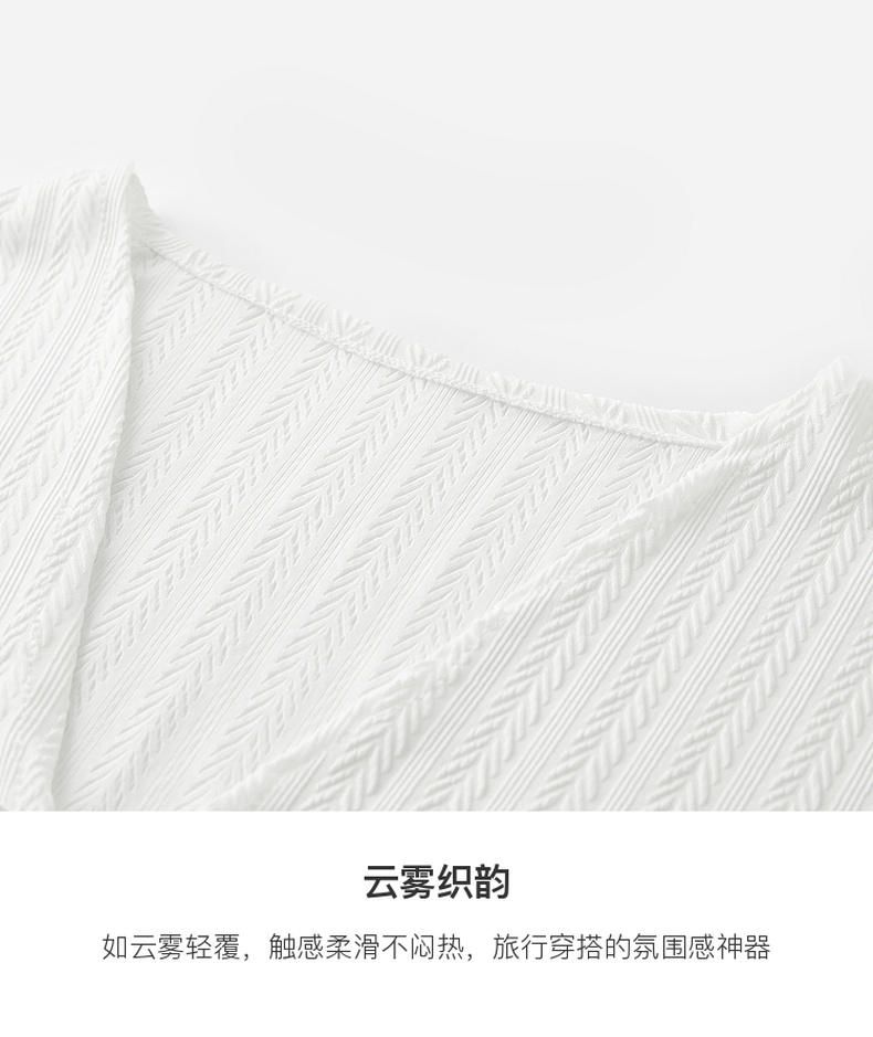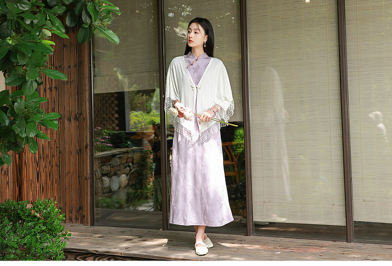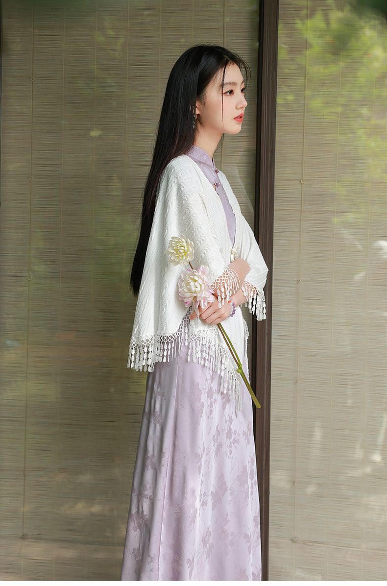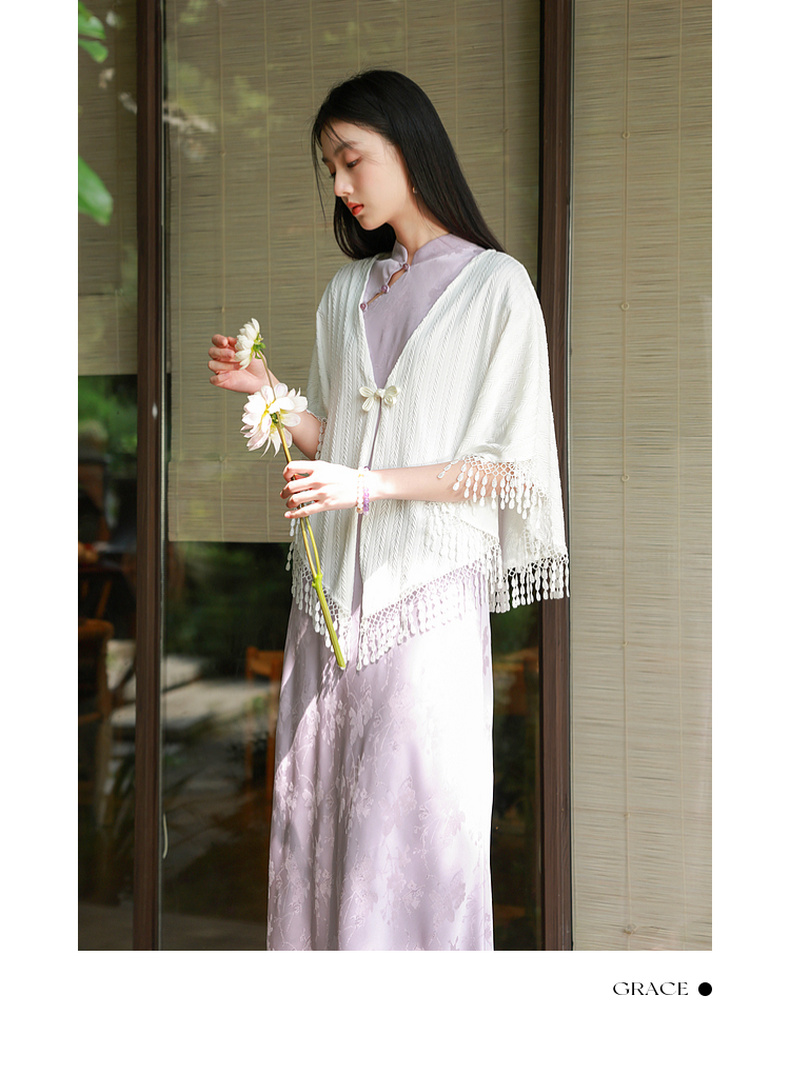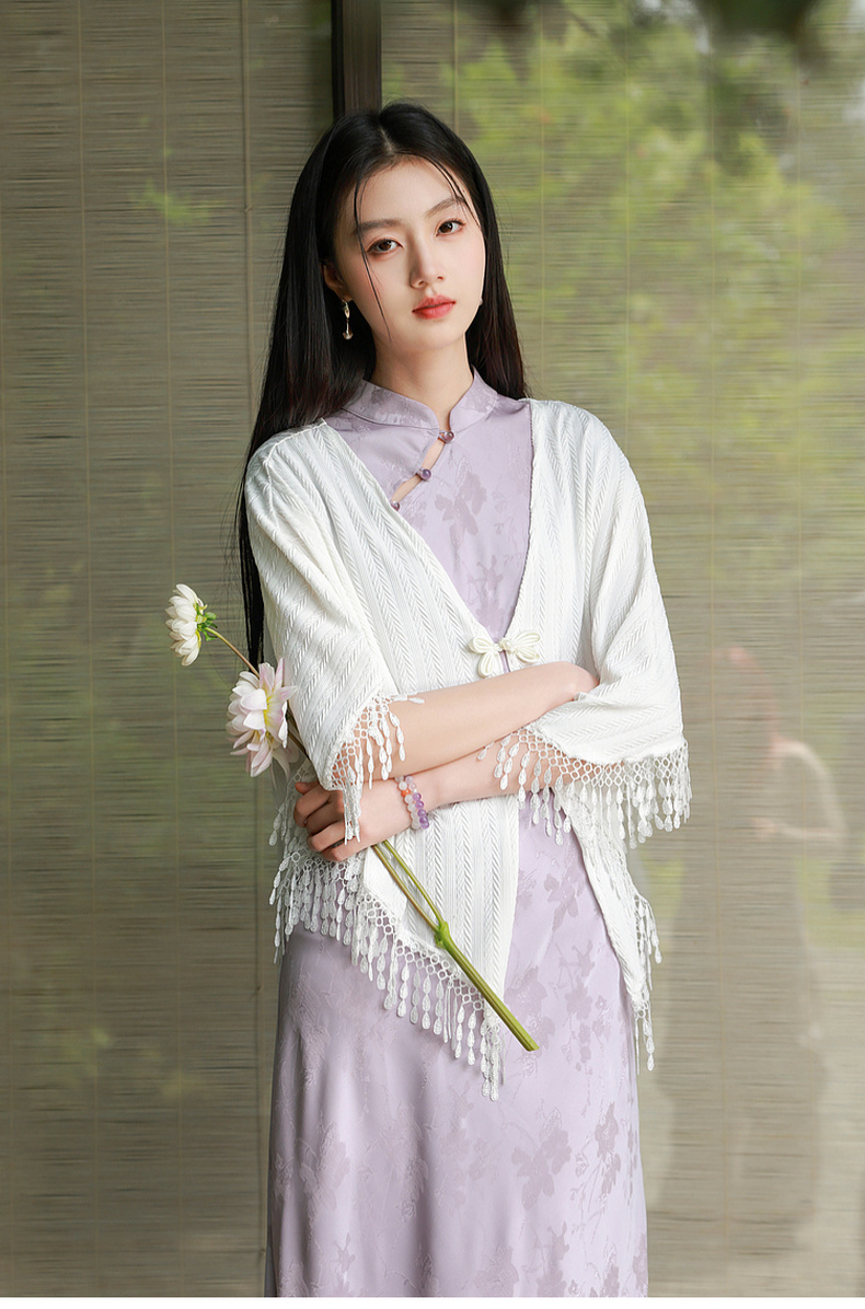 三彩2026新款蝴蝶结盘扣流苏披肩女夏米白国风穿搭外搭遮阳氛围感