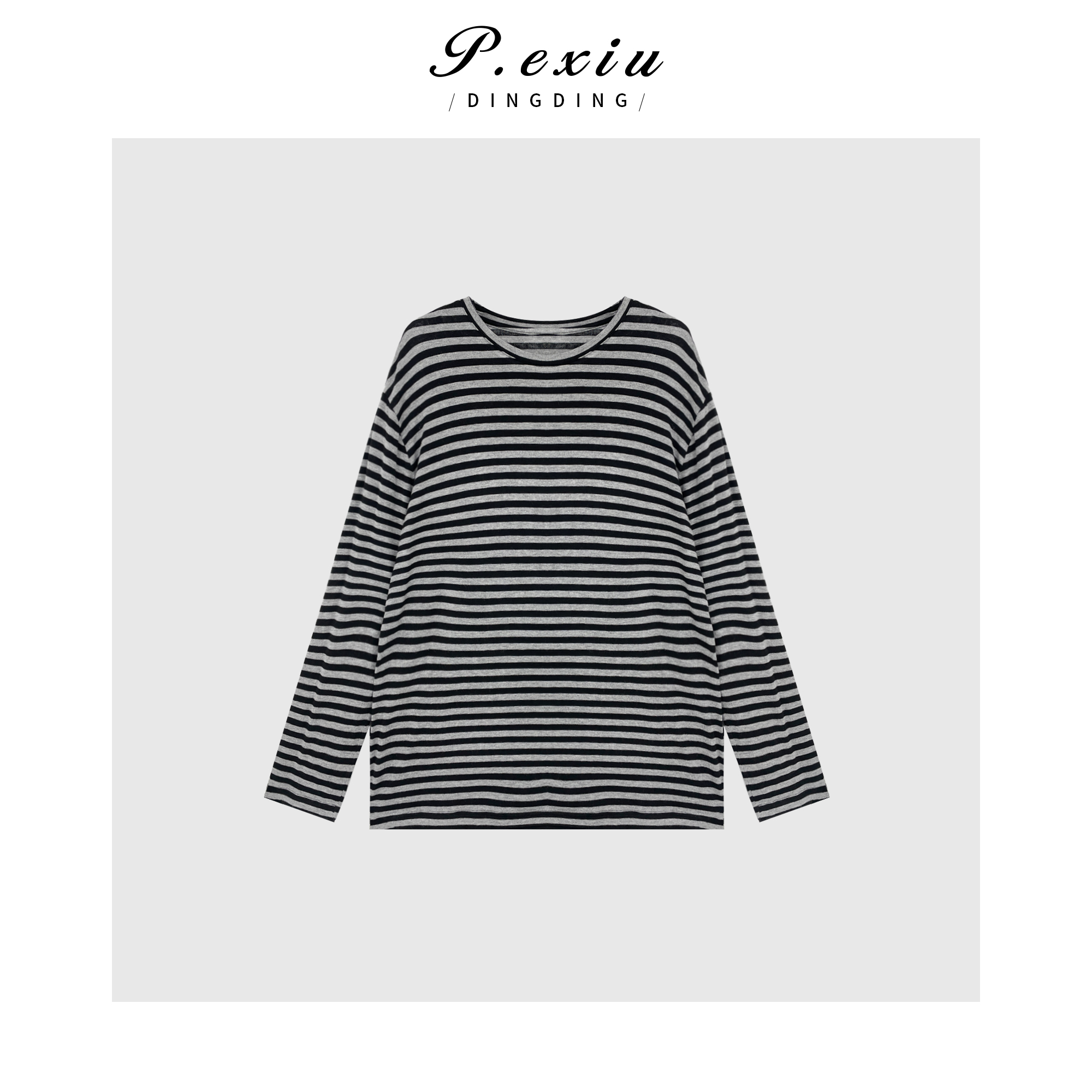 04-6潘依绣丁丁宠粉【果冻条纹T】慵懒随性休闲长袖T恤汉服 SH98810