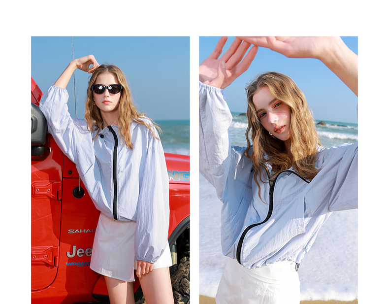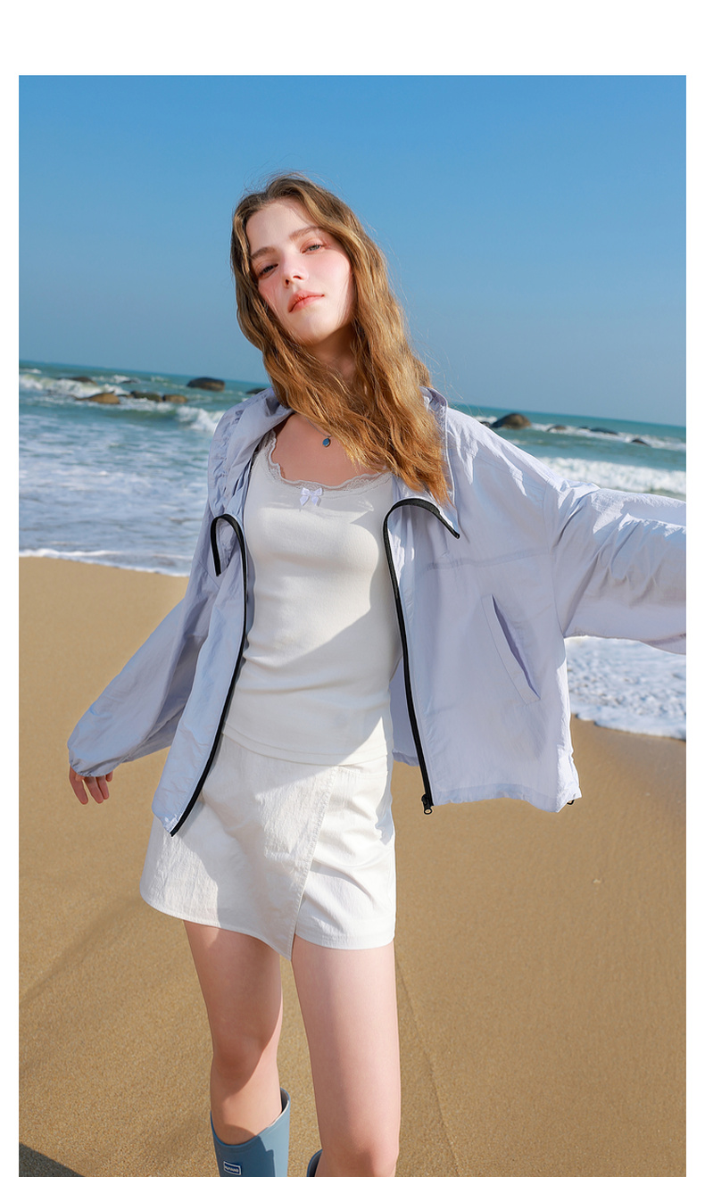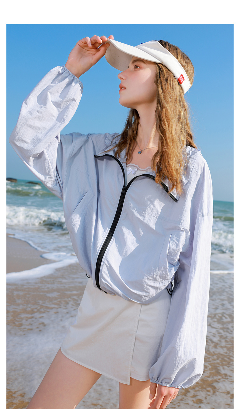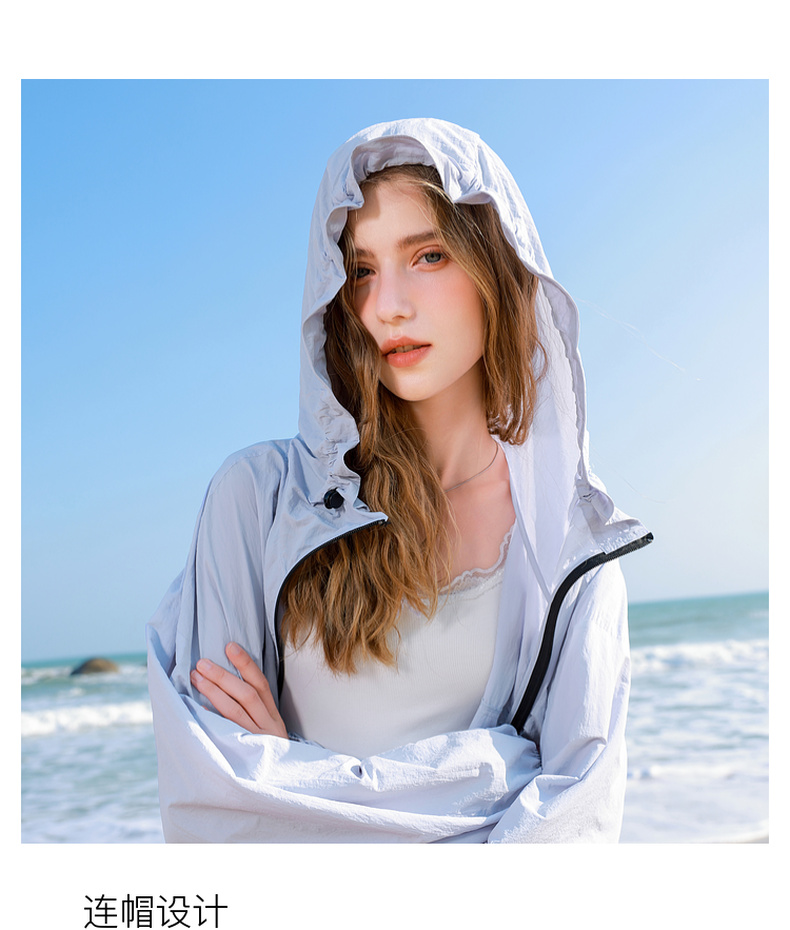 三彩独醒2025春季新款宽松连帽防晒衫开衫外套户外防紫外线F