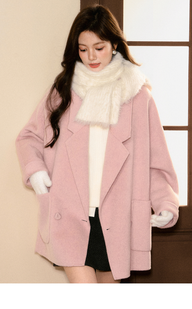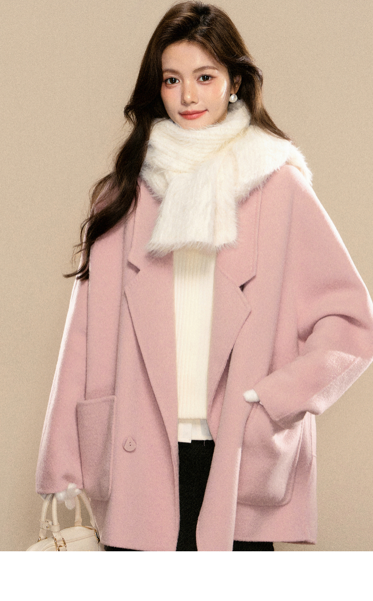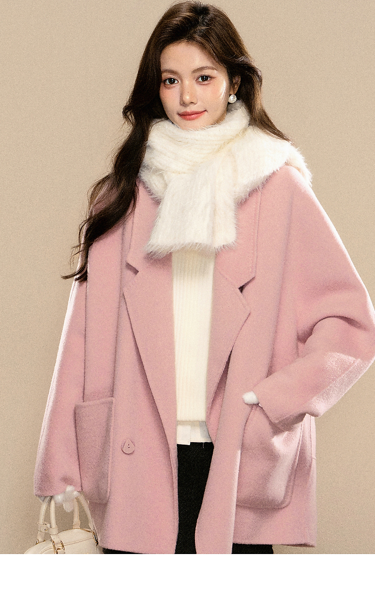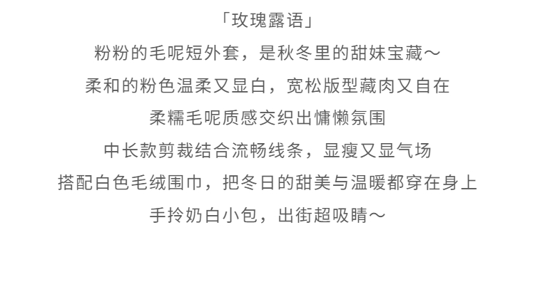鹿向南「玫瑰露语」高级感粉色气质毛呢外套女初秋宽松巨显瘦大衣