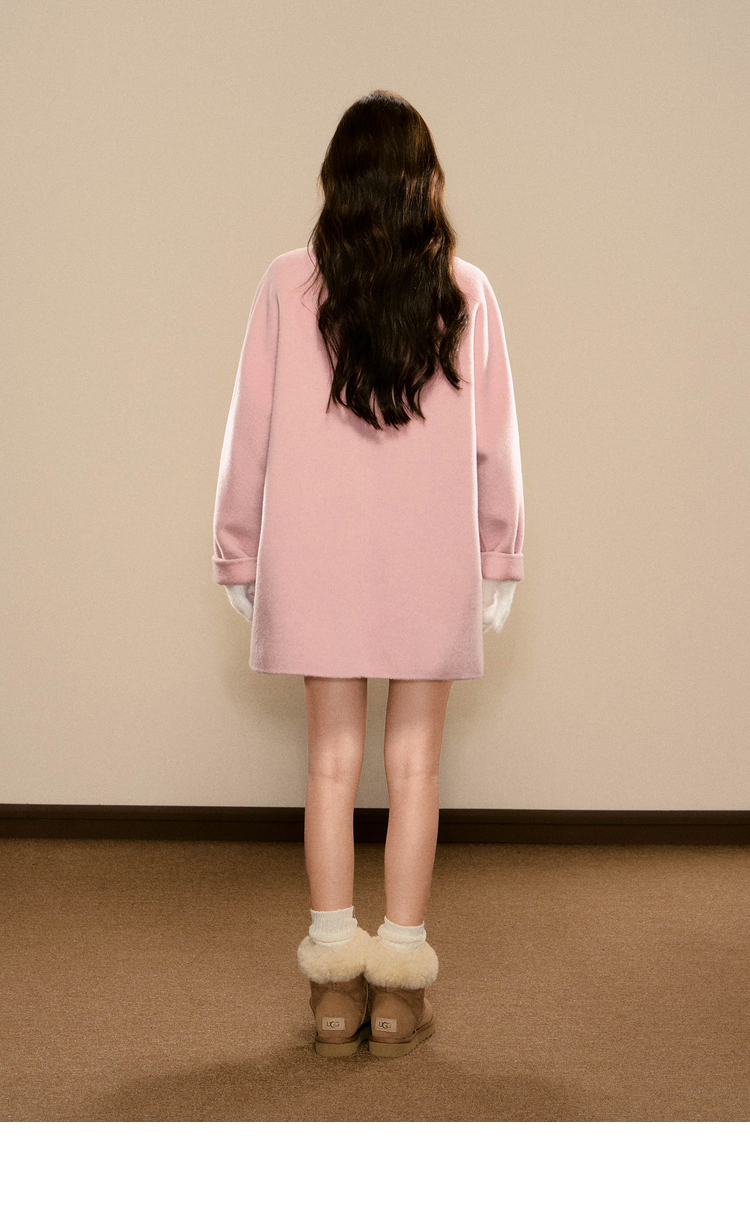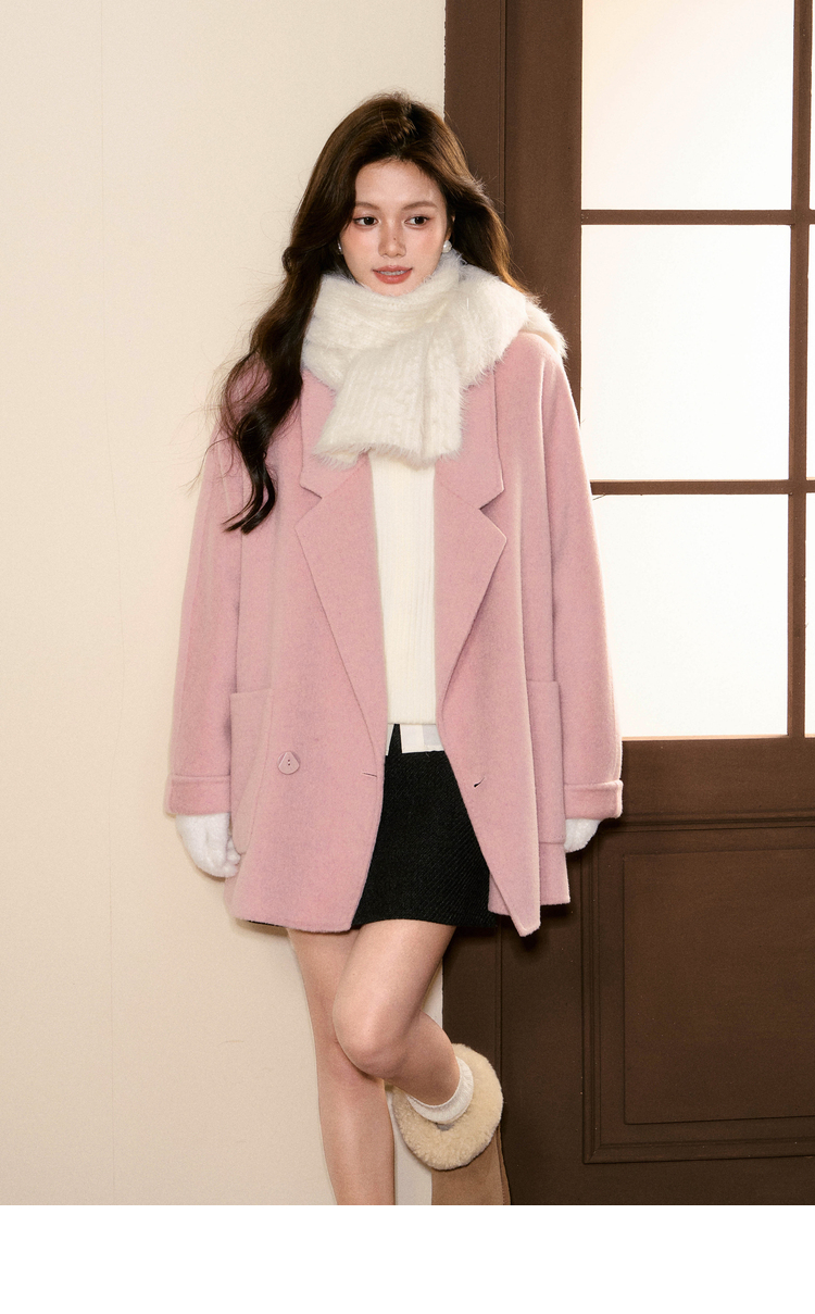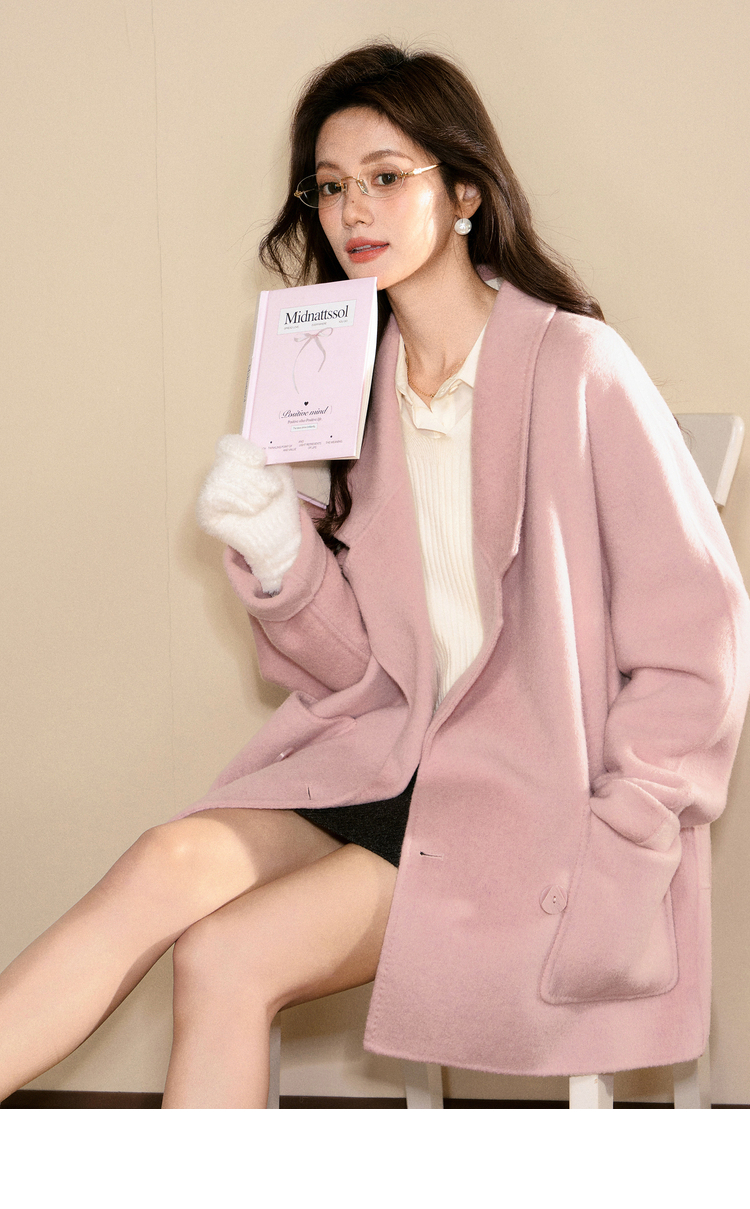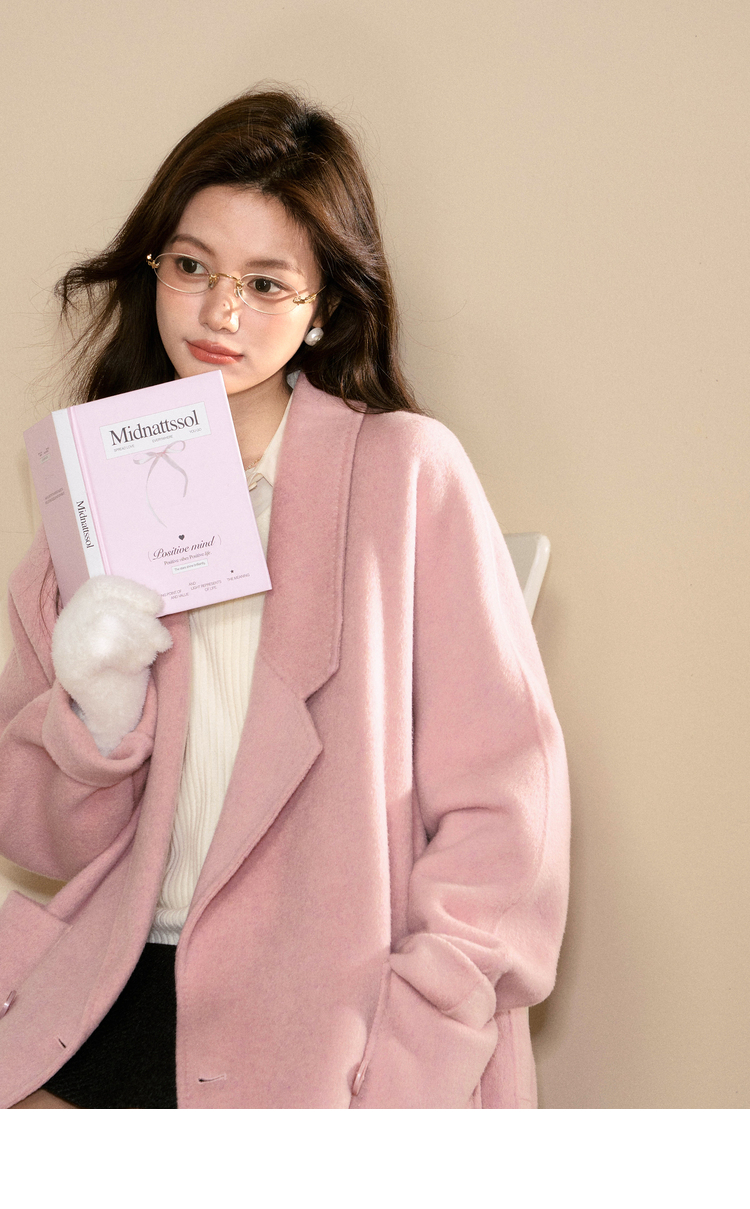 鹿向南「玫瑰露语」高级感粉色气质毛呢外套女初秋宽松巨显瘦大衣