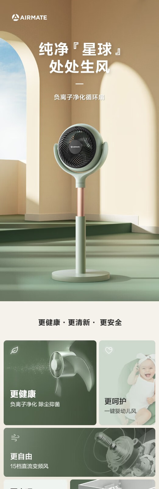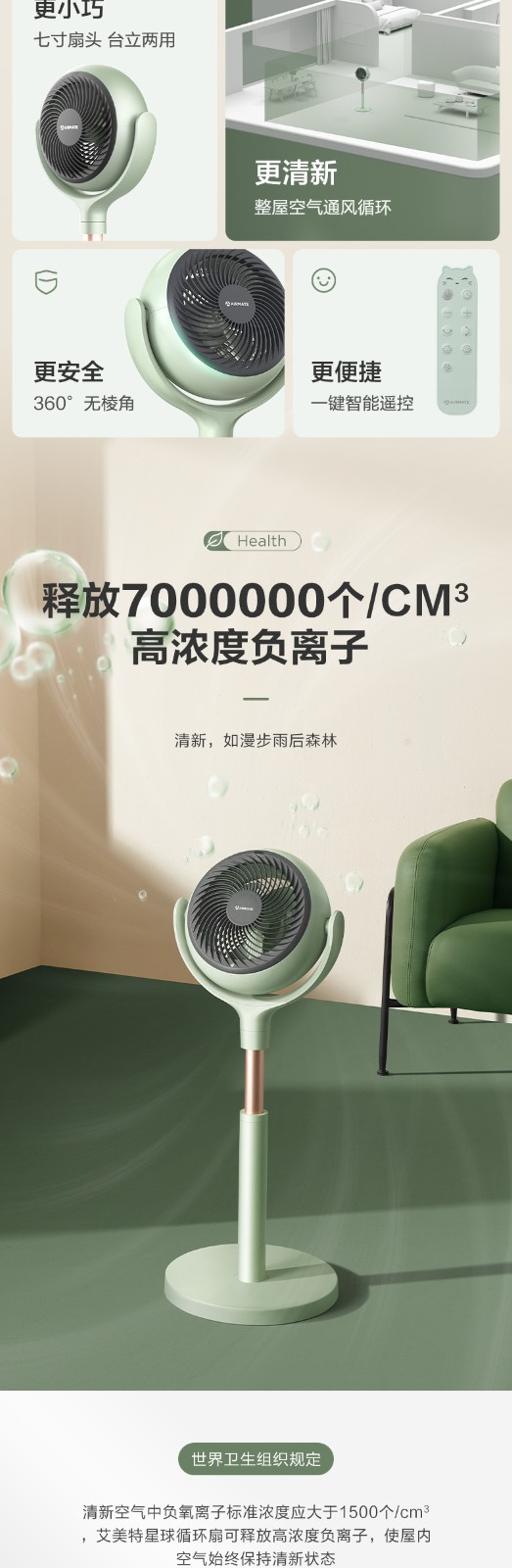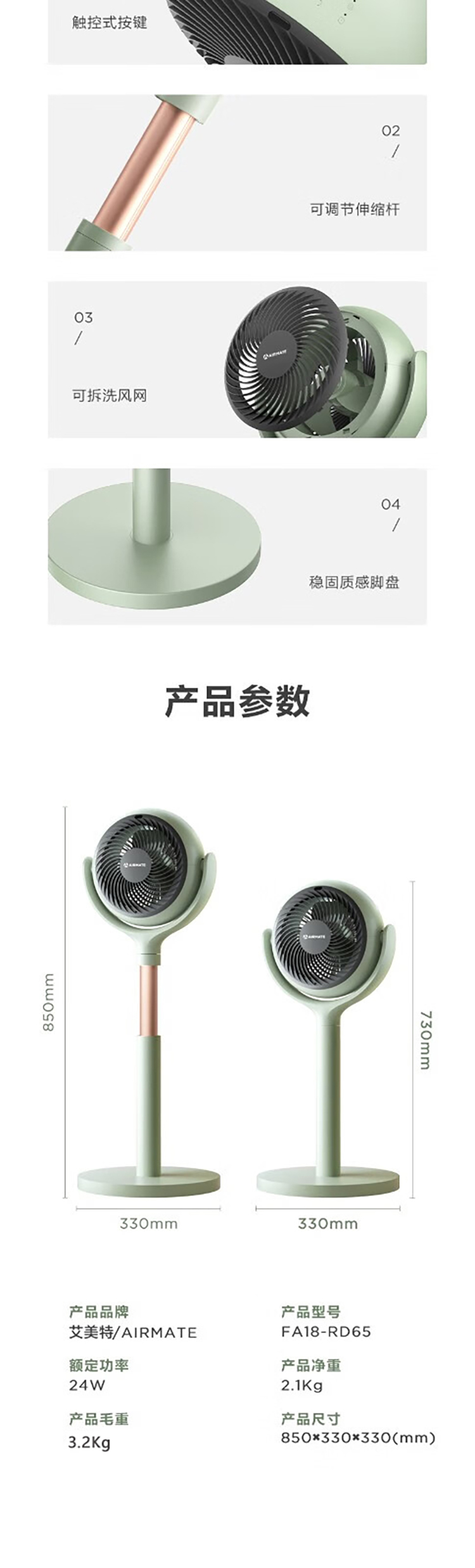 艾美特电风扇家用空气循环扇直流变频落地扇智能遥控风扇 海鸥 FA18-RD65-1【直流变频遥控款】