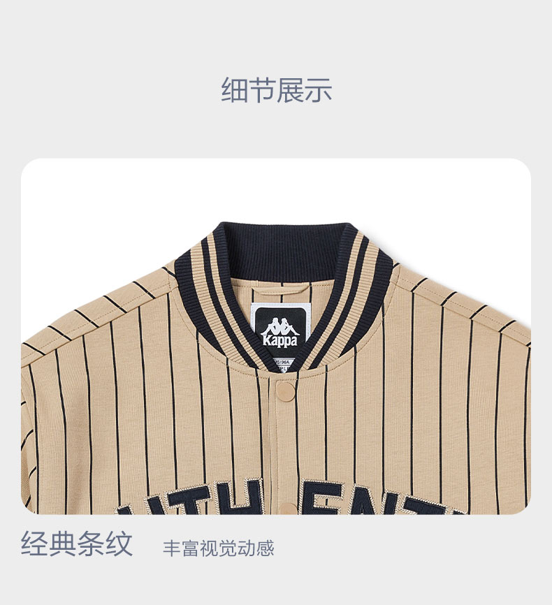 Kappa卡帕棒球服2022新款男运动卫衣经典条纹印花外套休闲开衫K0D12WK06