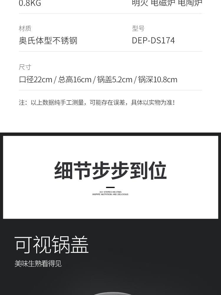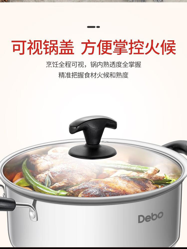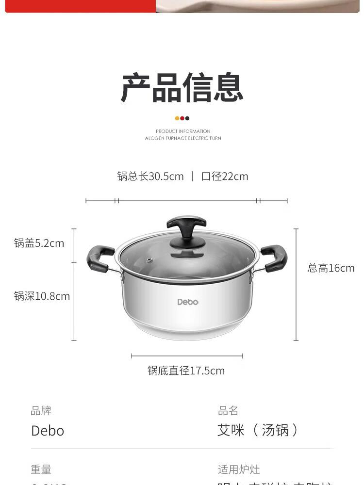 德铂Debo 艾咪汤锅 DEP-DS174 22cm可视锅盖