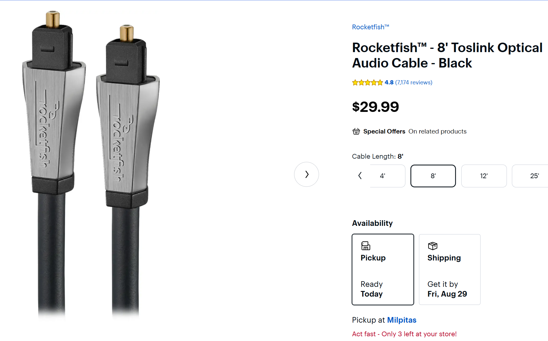 家庭影院的优质产品:我们的 Rocketfish 光纤音频线旨在为您的家庭影院或音响系统提供不间断、清晰的声音