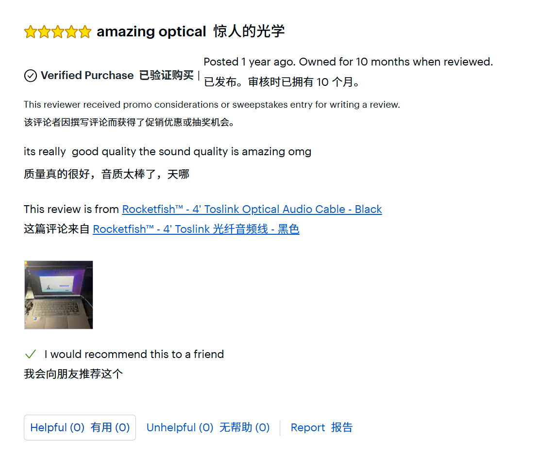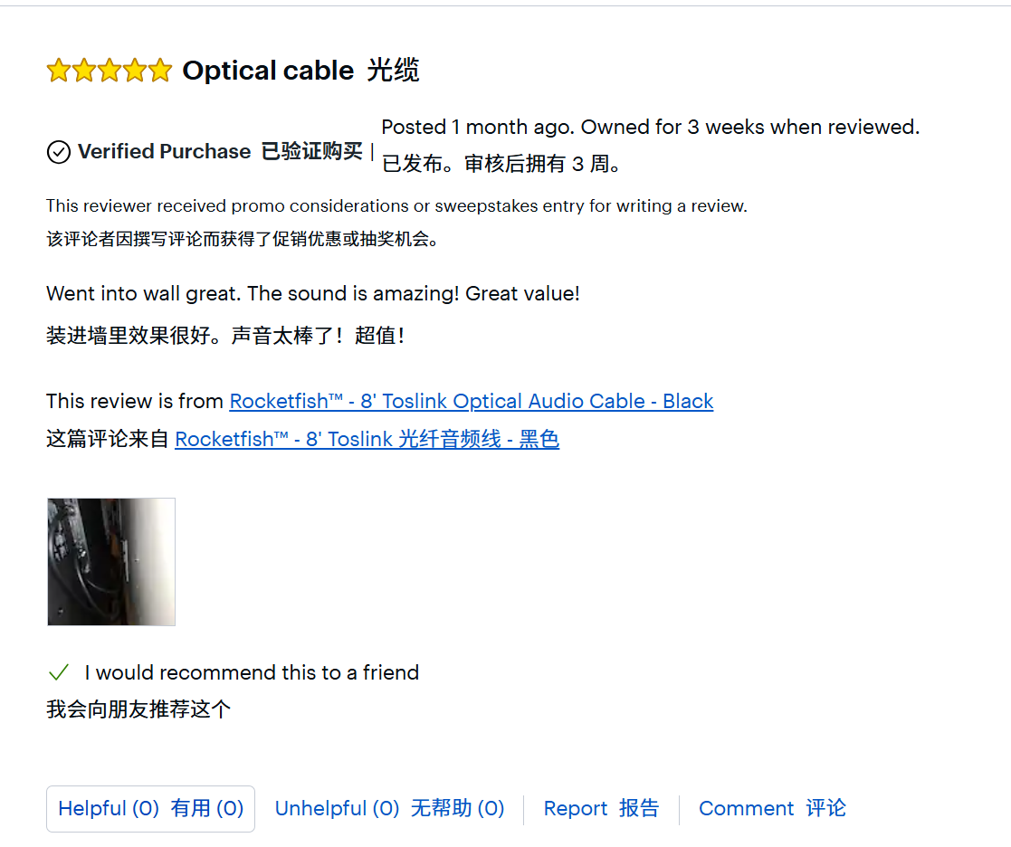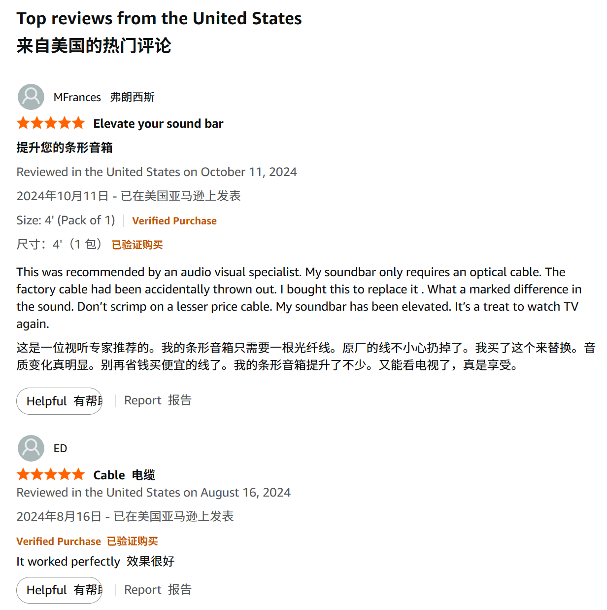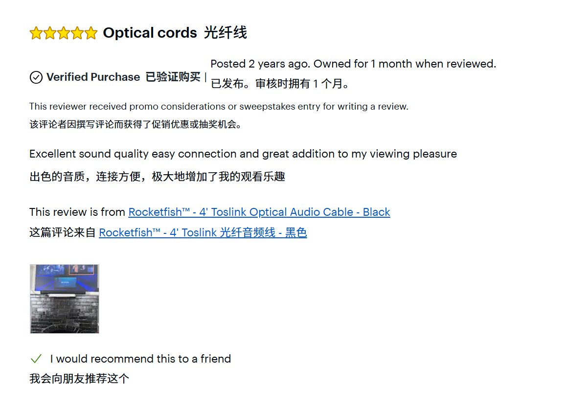 这是一位视听专家推荐的。我的条形音箱只需要一根光纤线。原厂的线不小心扔掉了。我买了这个来替换。音质变化真明显。别再省钱买便宜的线了。我的条形音箱提升了不少。又能看电视了,真是享受。