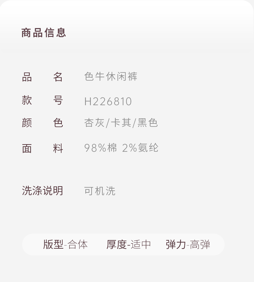 【出行二号】棉感吸湿速干透气弹力腰休闲裤255C0C813N【T】