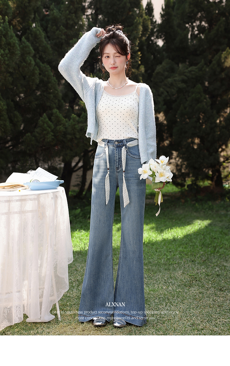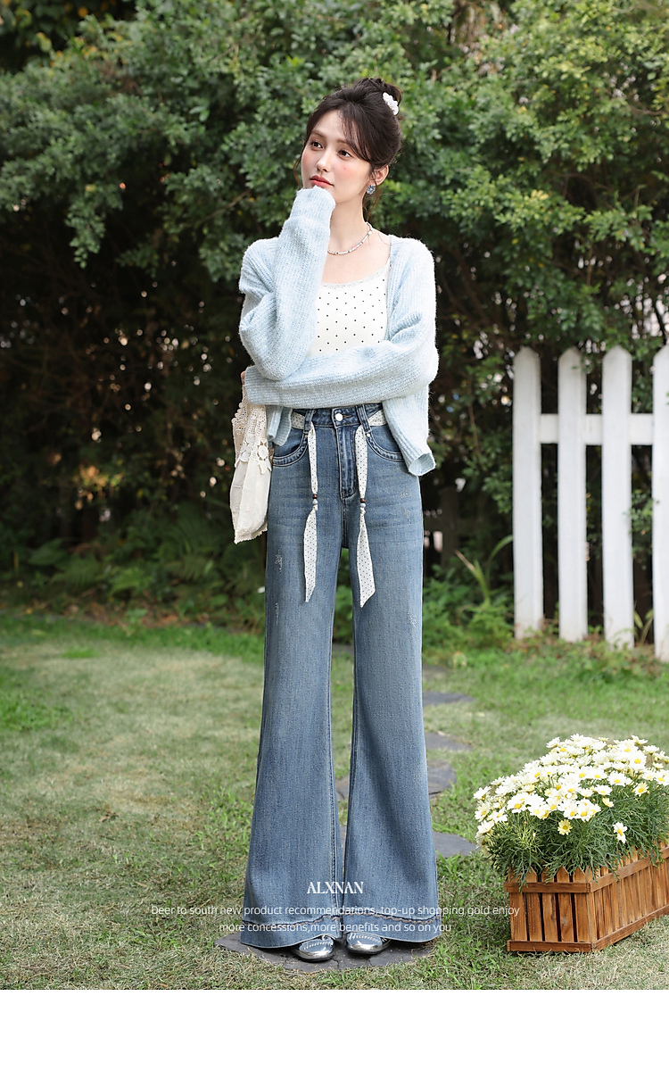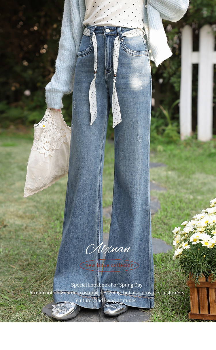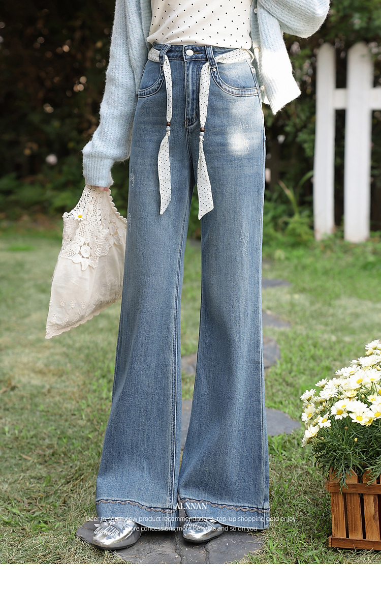 鹿向南「浅蓝浣纱」蓝色牛仔裤女春新款宽松时尚修身高腰阔腿长裤