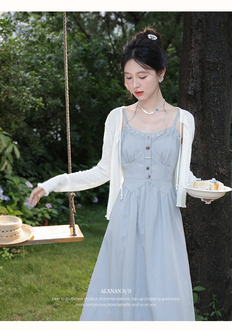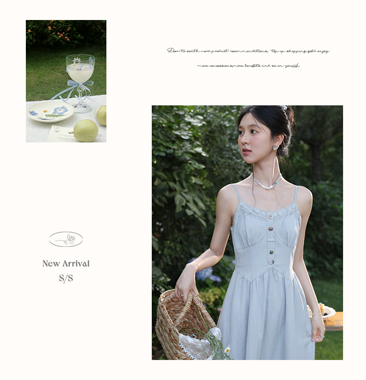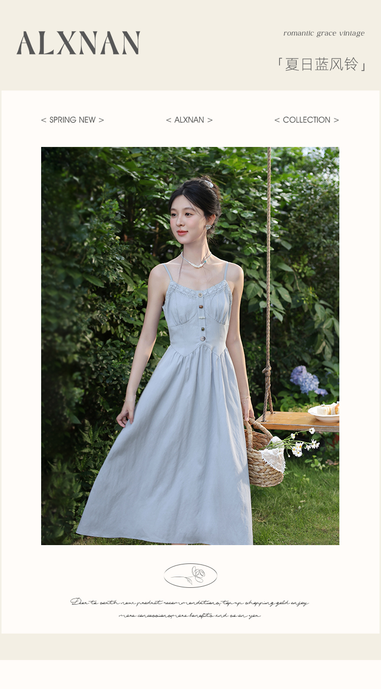 【6折秒杀】鹿向南「夏日蓝风铃」蓝色吊带连衣裙夏季新款时尚气质显瘦长裙女L56223