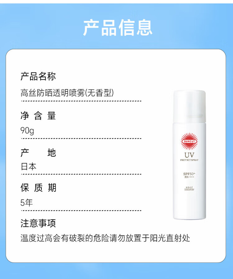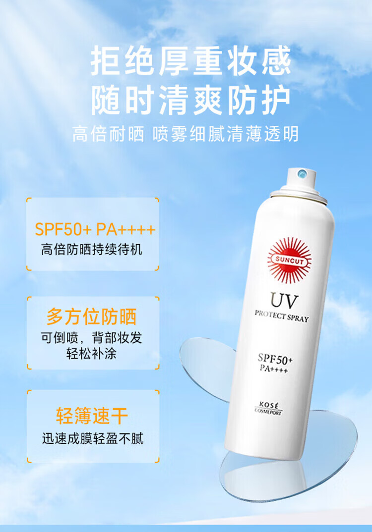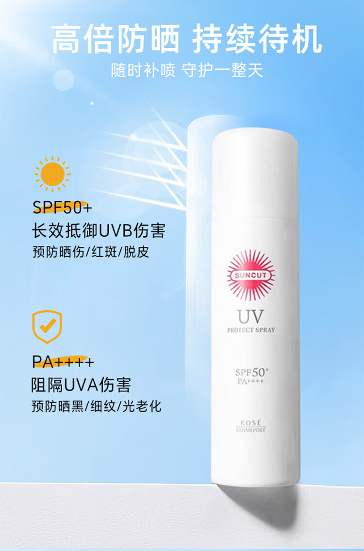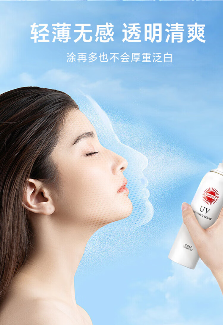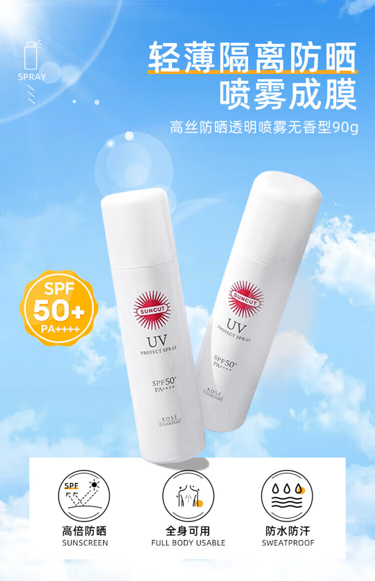 高丝日本kose高丝防晒喷雾全身面部suncut防水 1瓶防晒喷雾 透明无香 90g_BYY