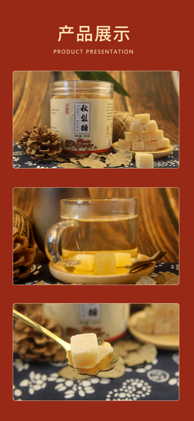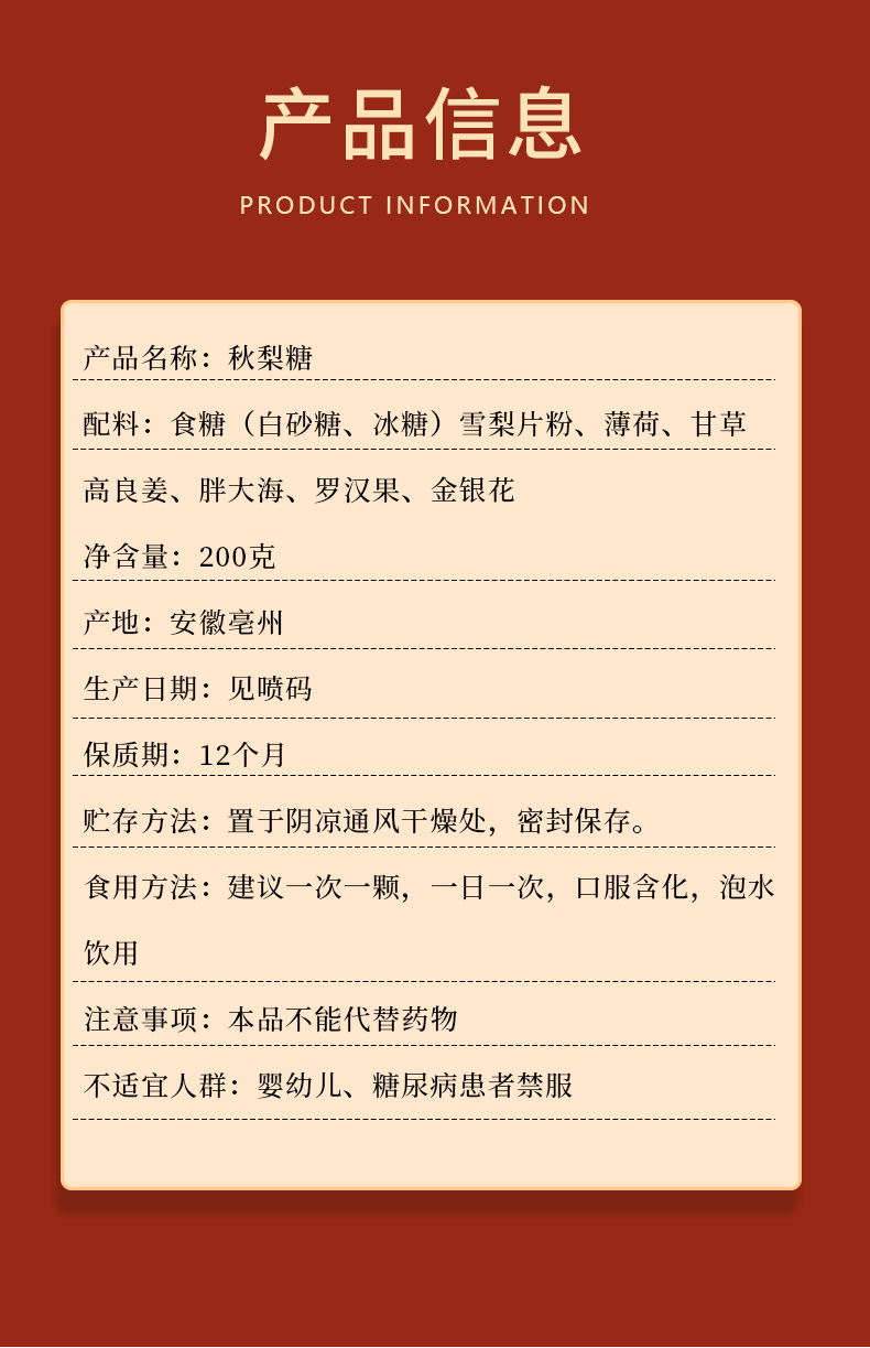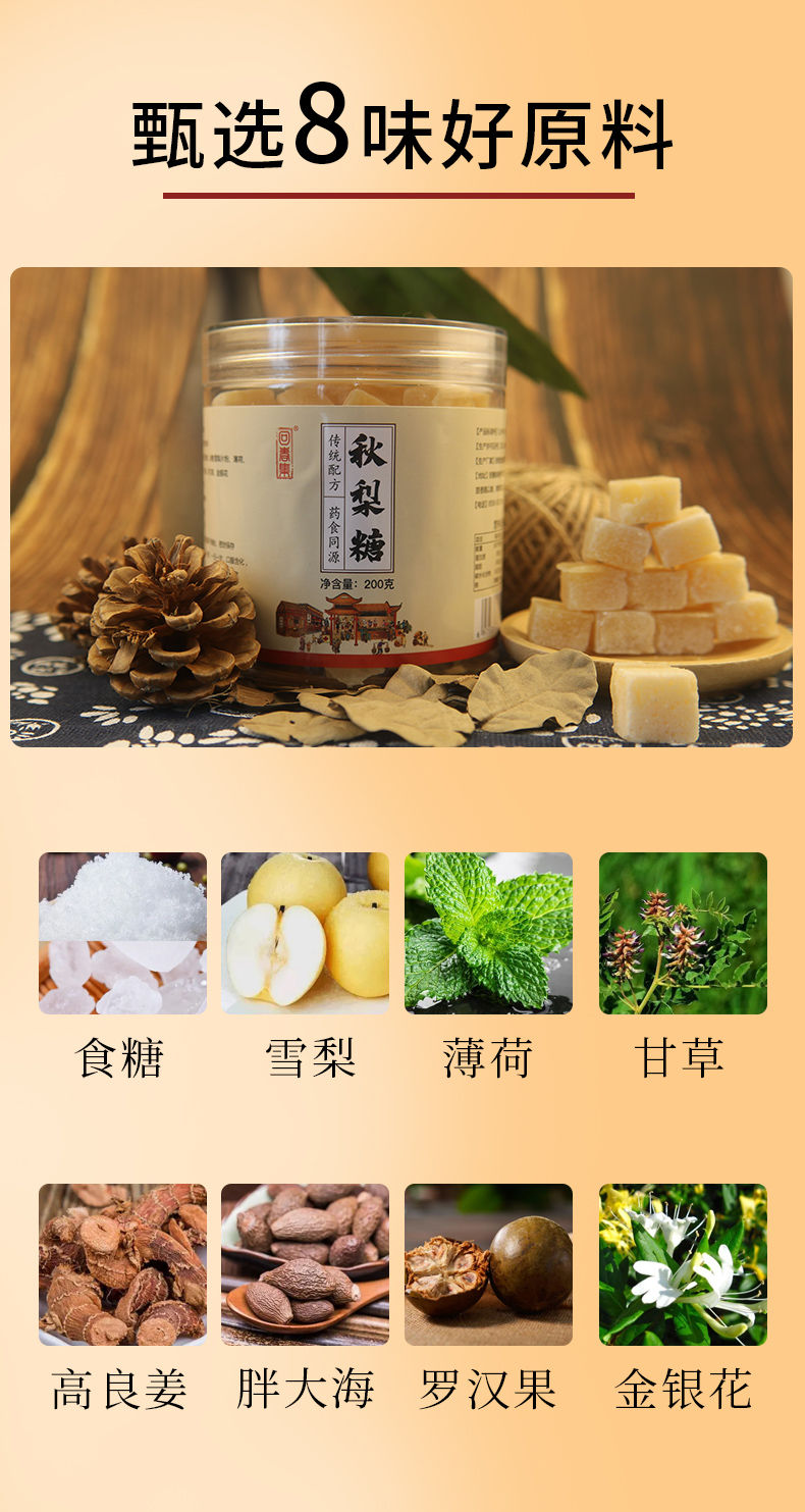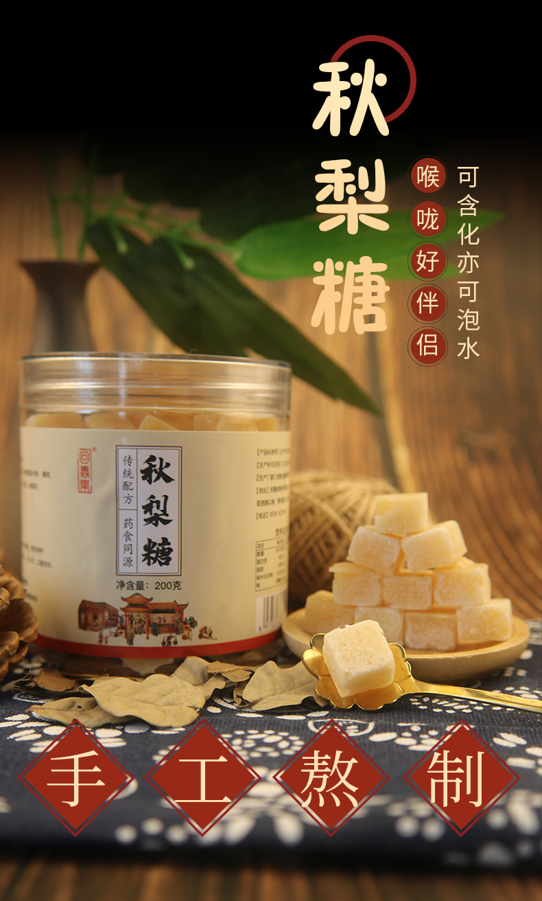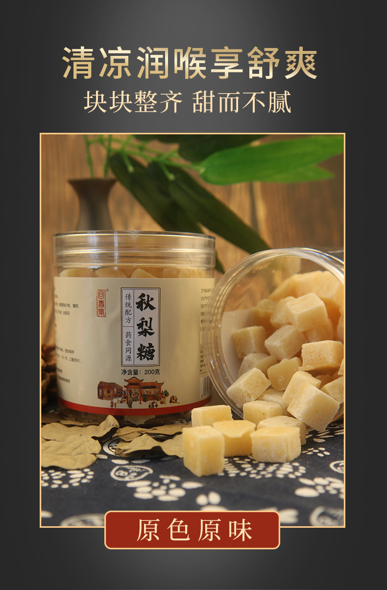 【可含化可泡水 喉咙好伴侣】回春集梨膏糖 清凉润喉享舒爽 清新口气 精选食材 入口甜而不腻 老少皆宜 200g/罐
