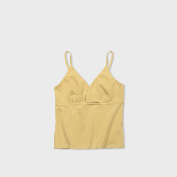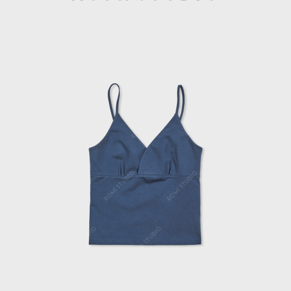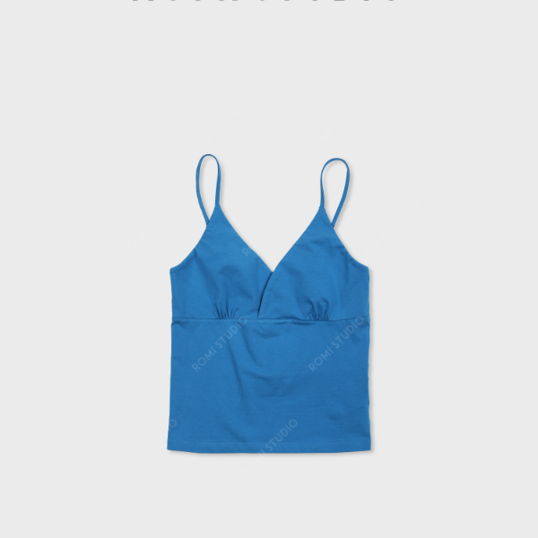ROMI STUDIO"基础优雅"棉氨纶混纺褶皱V领修身吊带背心RWCSSY7258