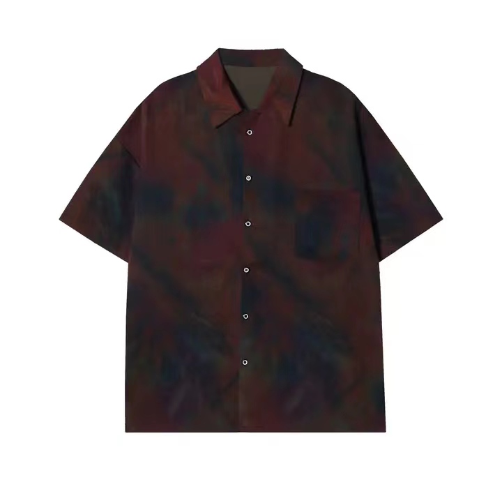 CS42夏季新款扎染男士衬衫百搭口袋休闲上衣复古宽松潮流满印短袖