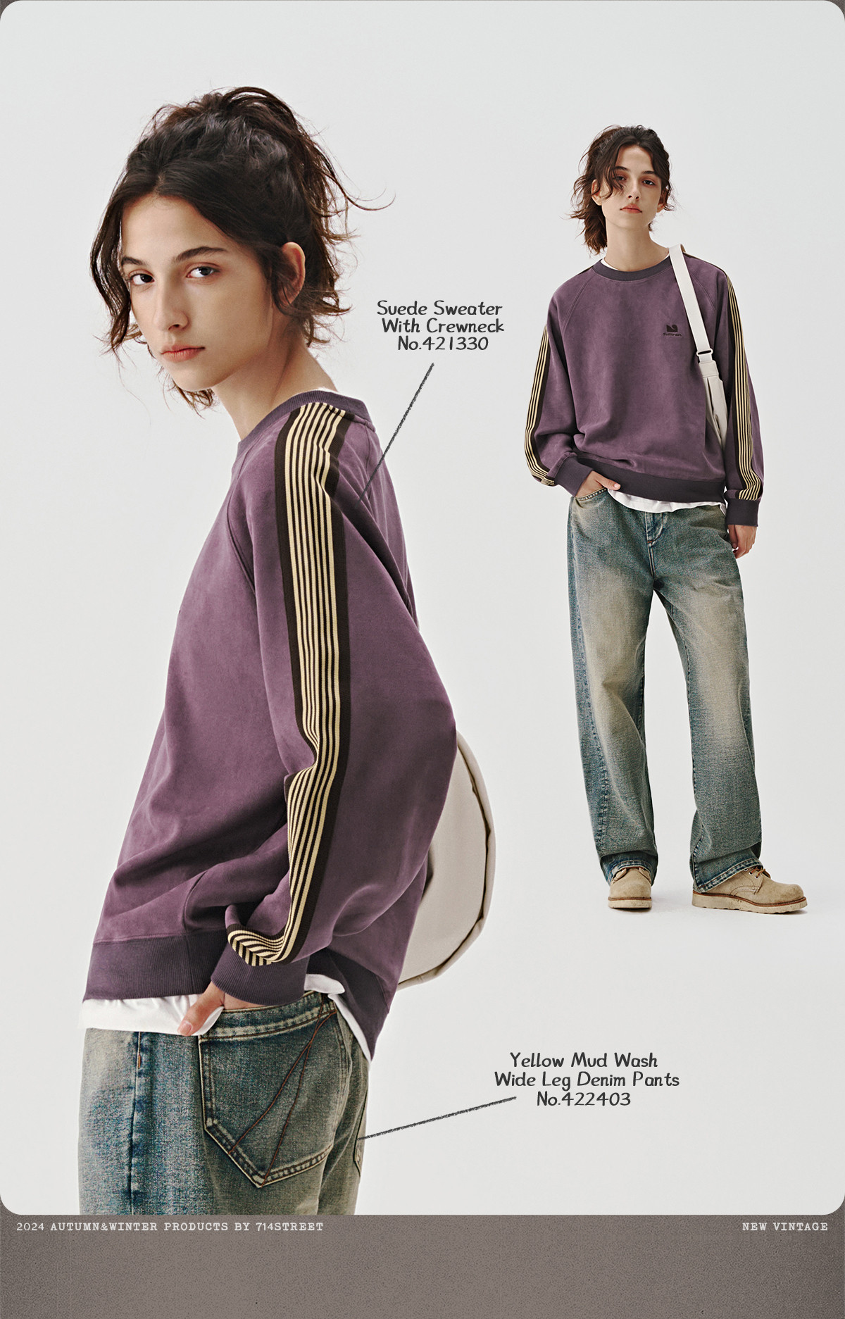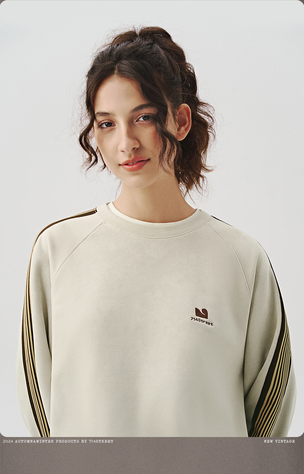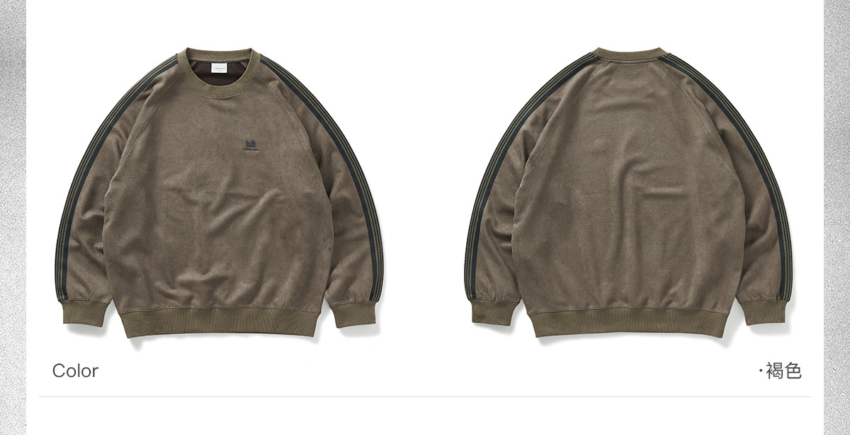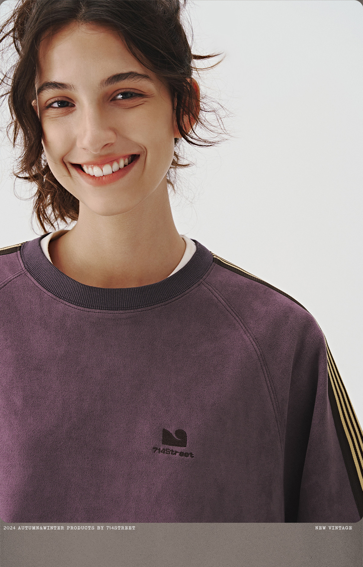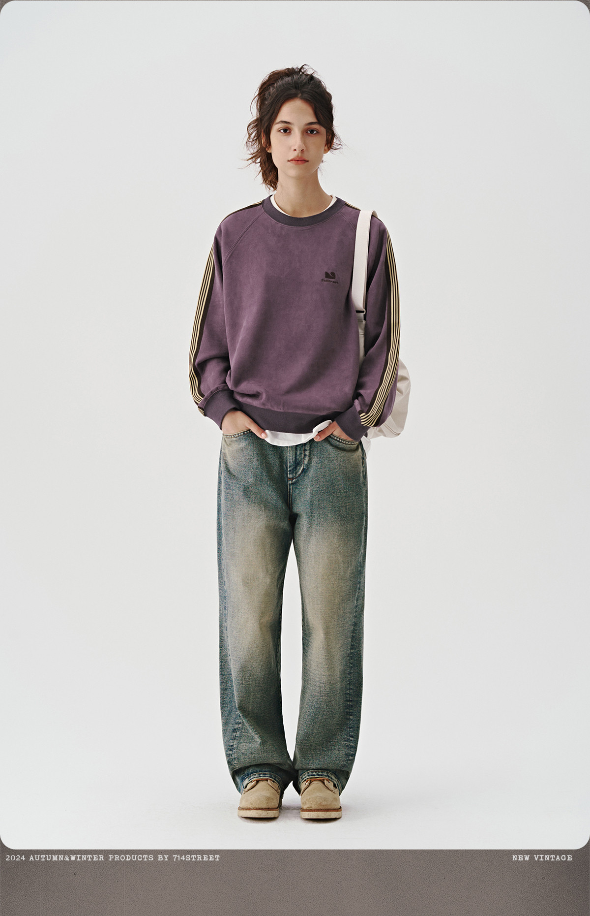 714street麂皮绒织带美式复古卫衣男女同款套装2024秋季新款上衣