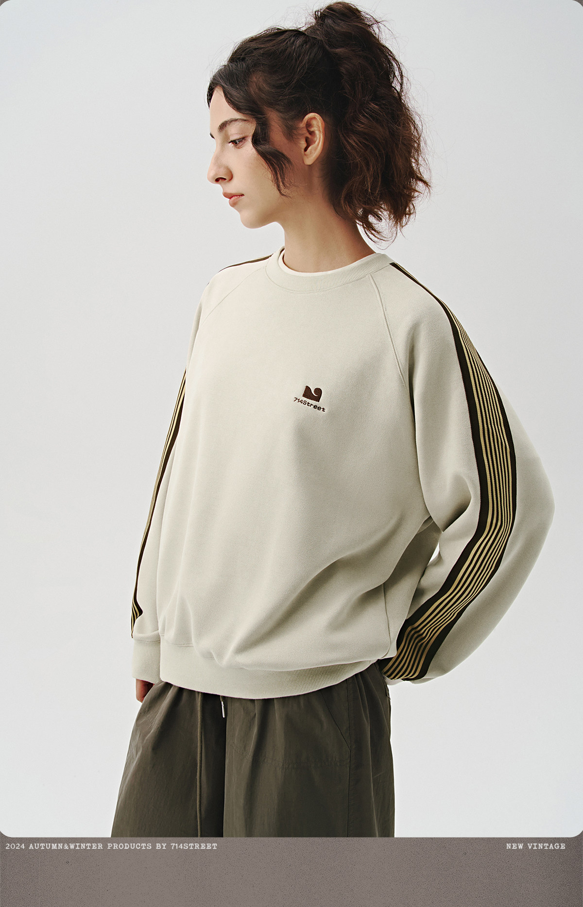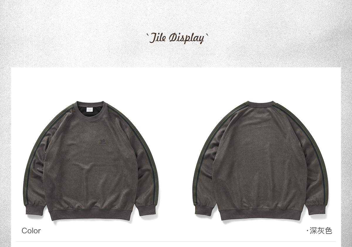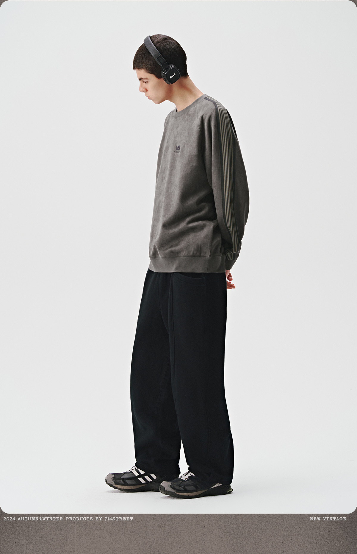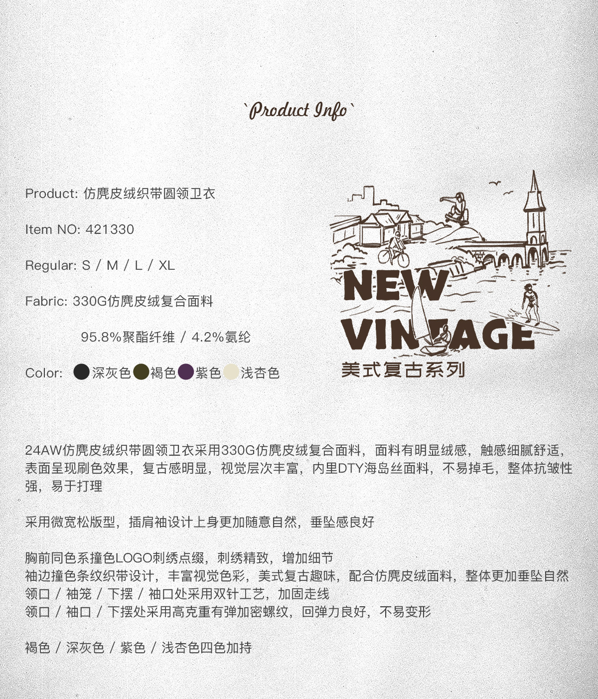 714street麂皮绒织带美式复古卫衣男女同款套装2024秋季新款上衣