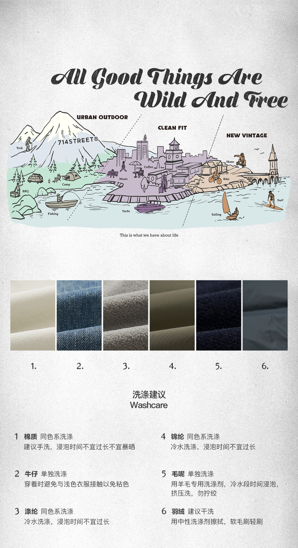 714street水洗纯棉宽松休闲裤男2025秋季新款弯刀裤cleanfit长裤