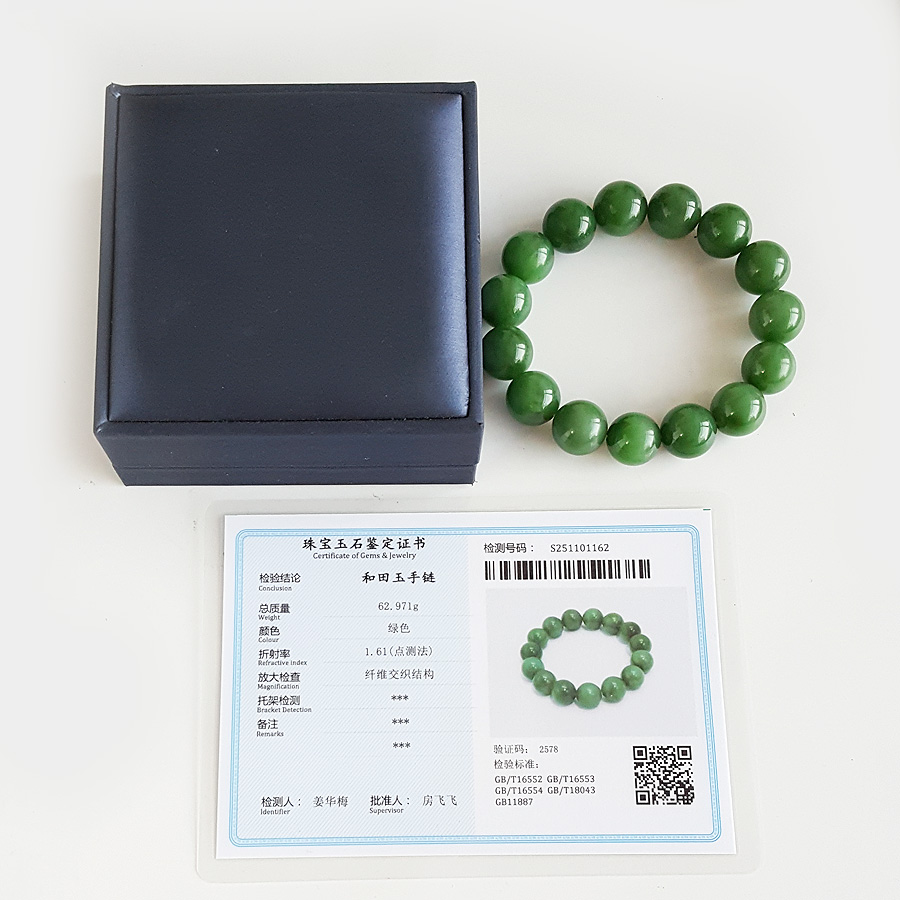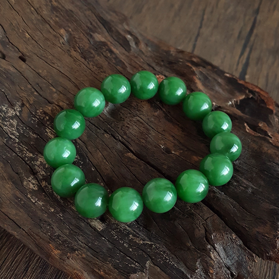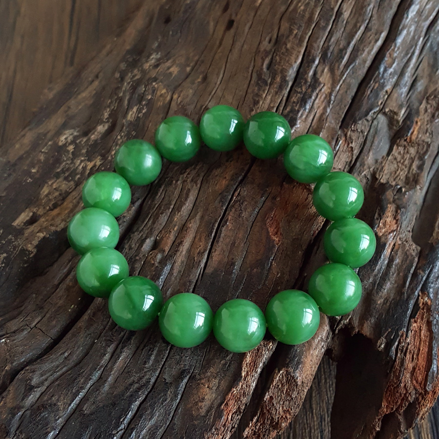 【天然正品】天然细腻菠菜绿无黑点约14.0MM碧玉圆珠手串14.0MM(皆取最大值)中性 251125NJS27
