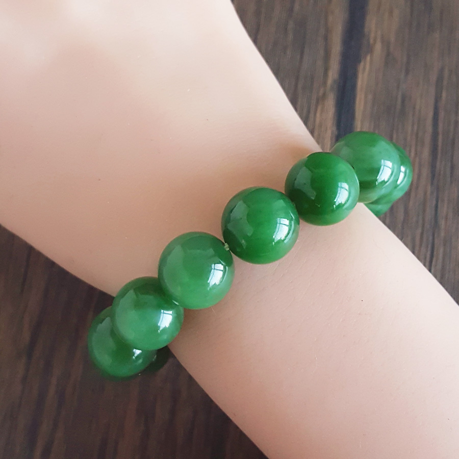 名称 | 天然细腻菠菜绿无黑点约14.0MM碧玉圆珠手串 |