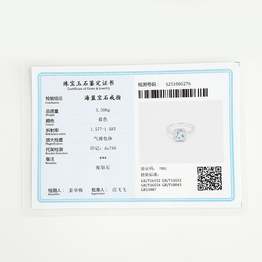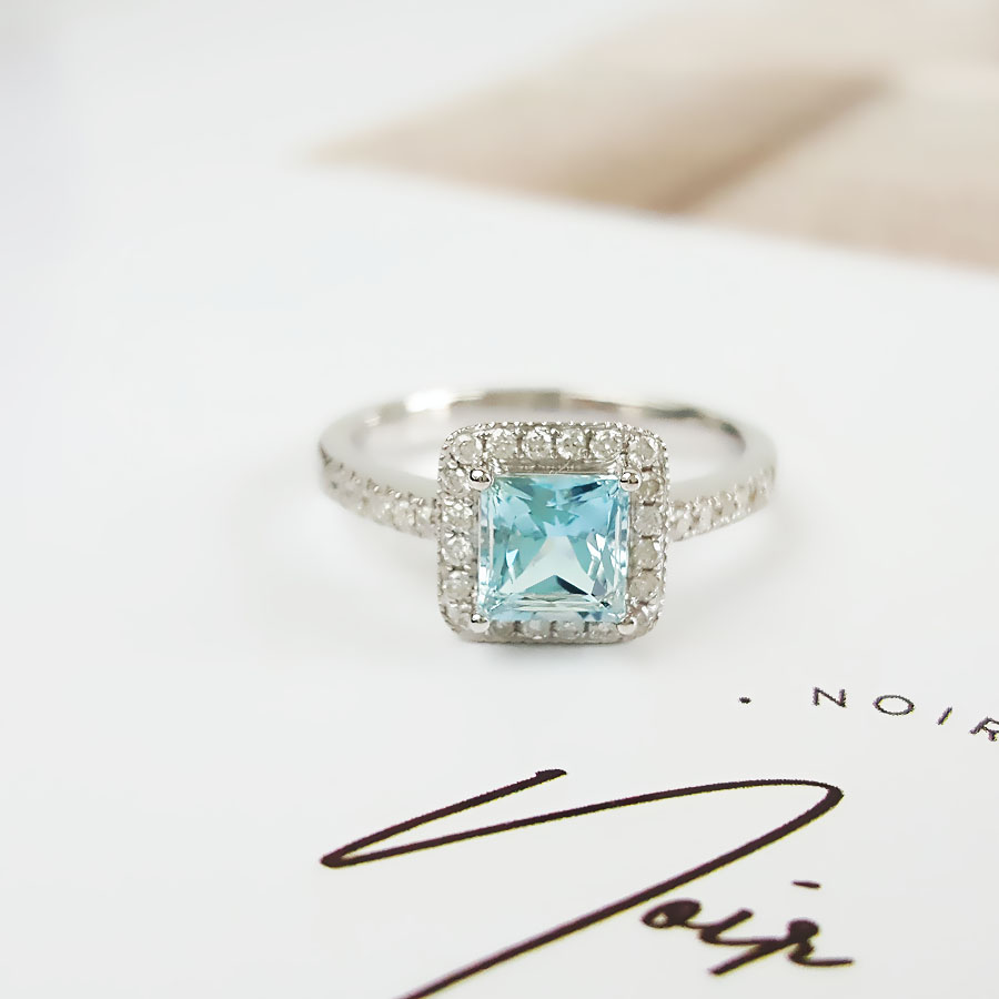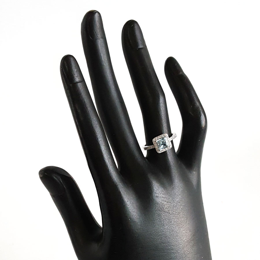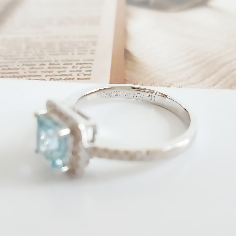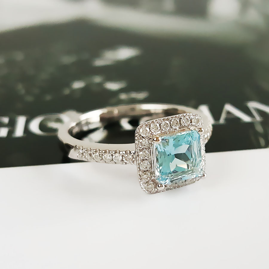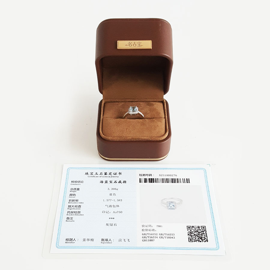 名称 | AU750白金镶钻镶天然公主方型0.726克拉海蓝宝石戒指 |