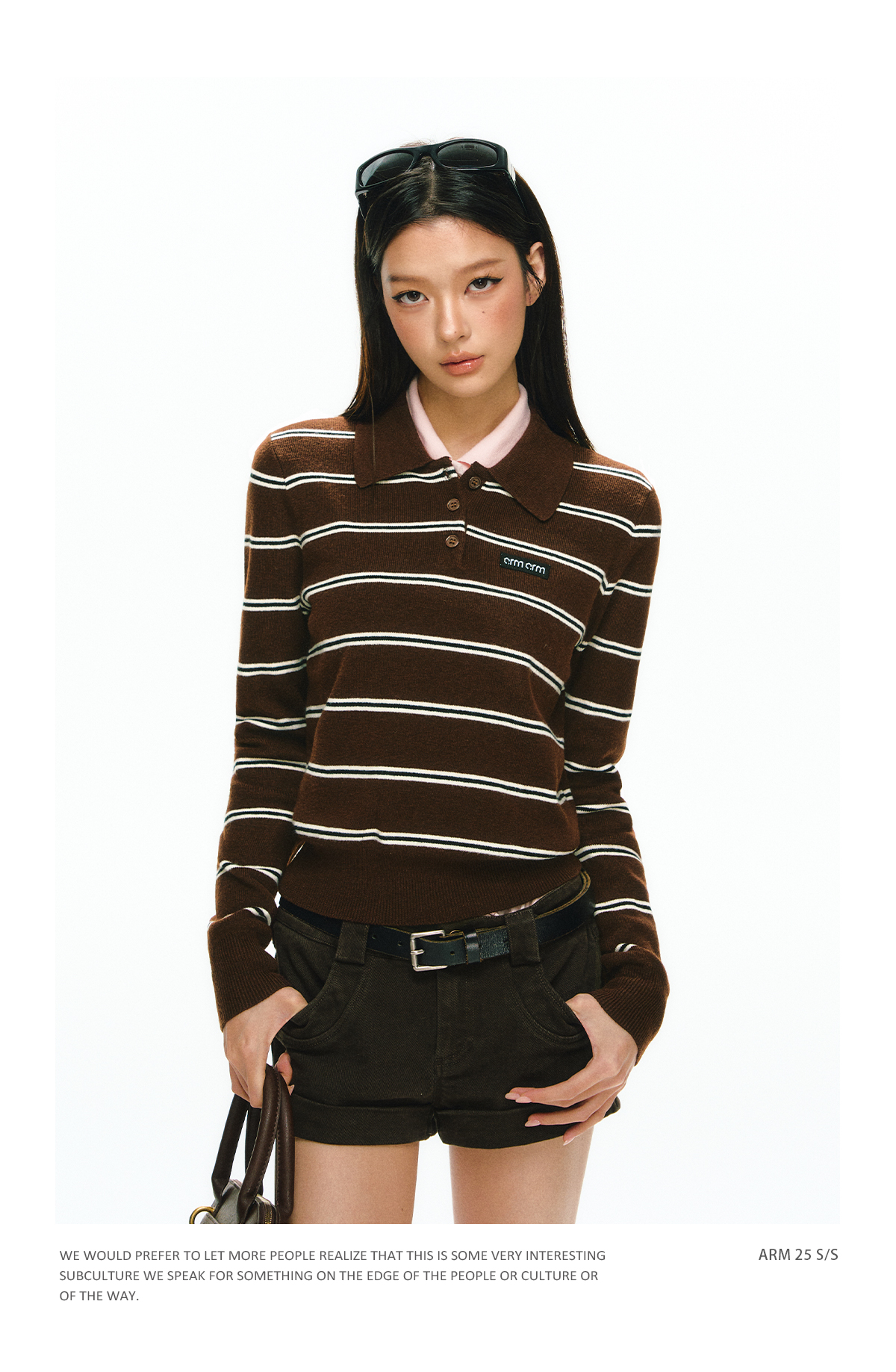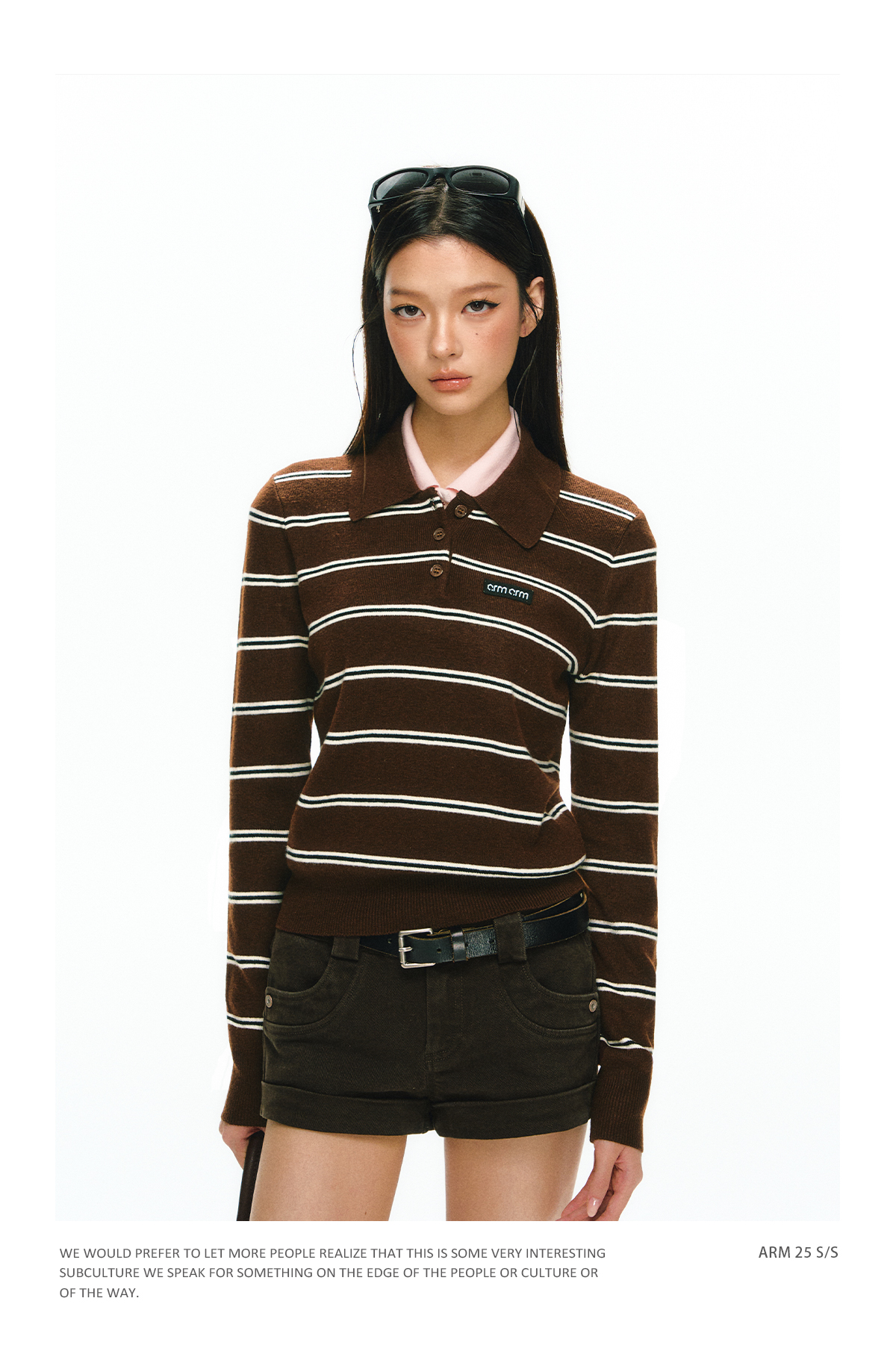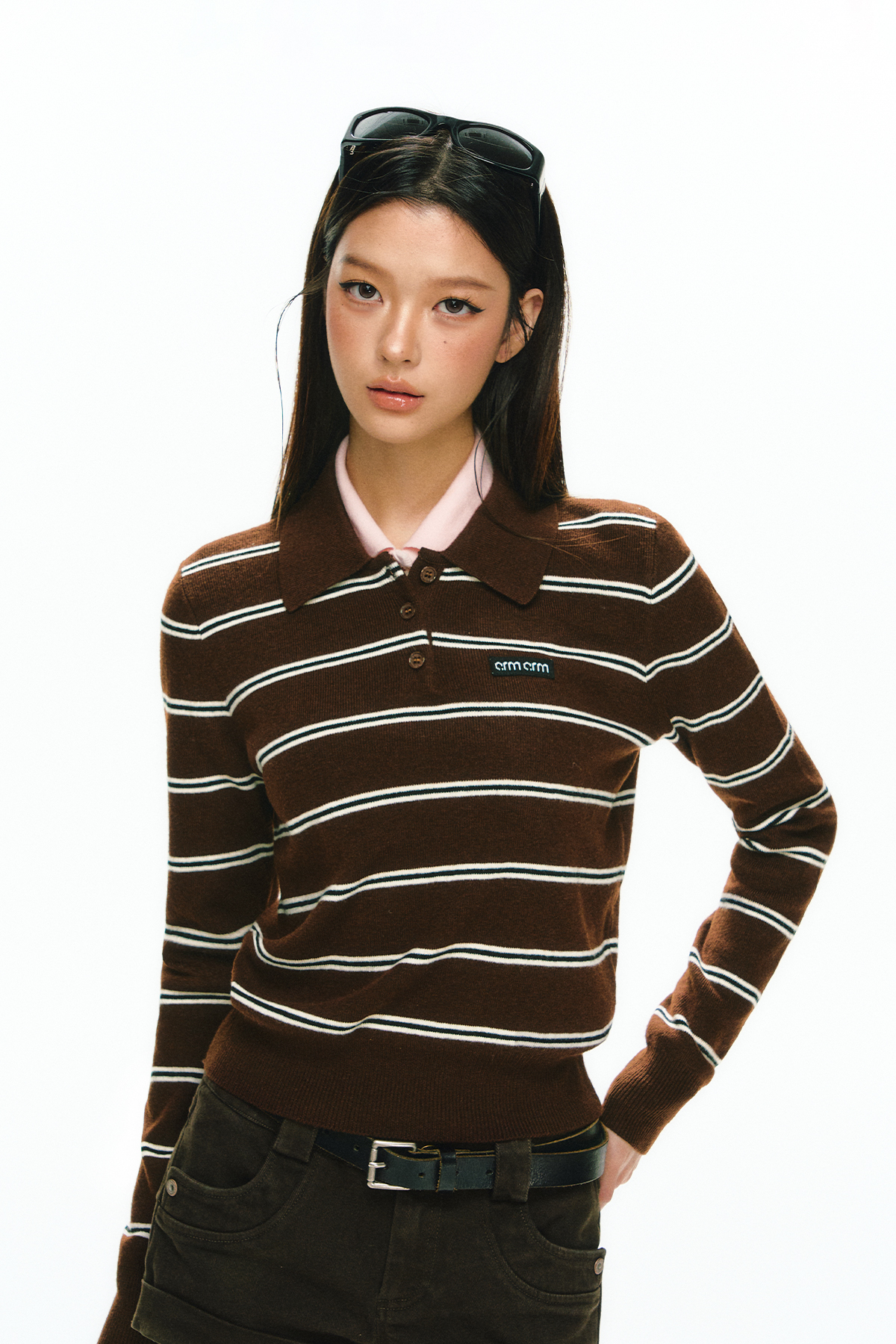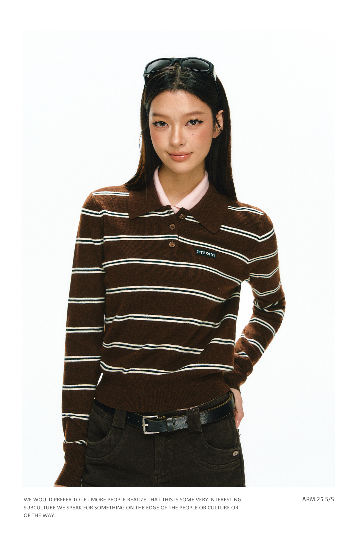 Ariseism 美式复古设计感翻领条纹针织衫毛衣女秋冬新款修身上衣