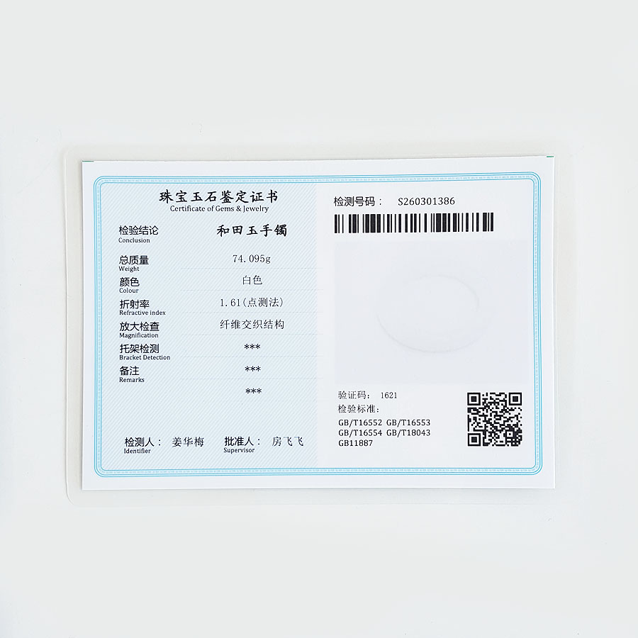 名称 | 天然精品新疆且末料细腻一级白油润度佳59号和田玉手镯 |