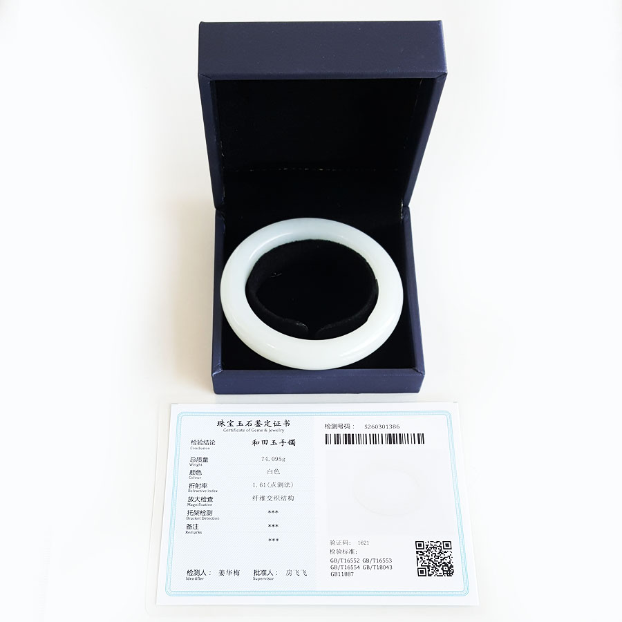 【天然正品】天然精品新疆且末料细腻一级白油润度佳59号和田玉手镯59号(皆取最大值)250326NJS15