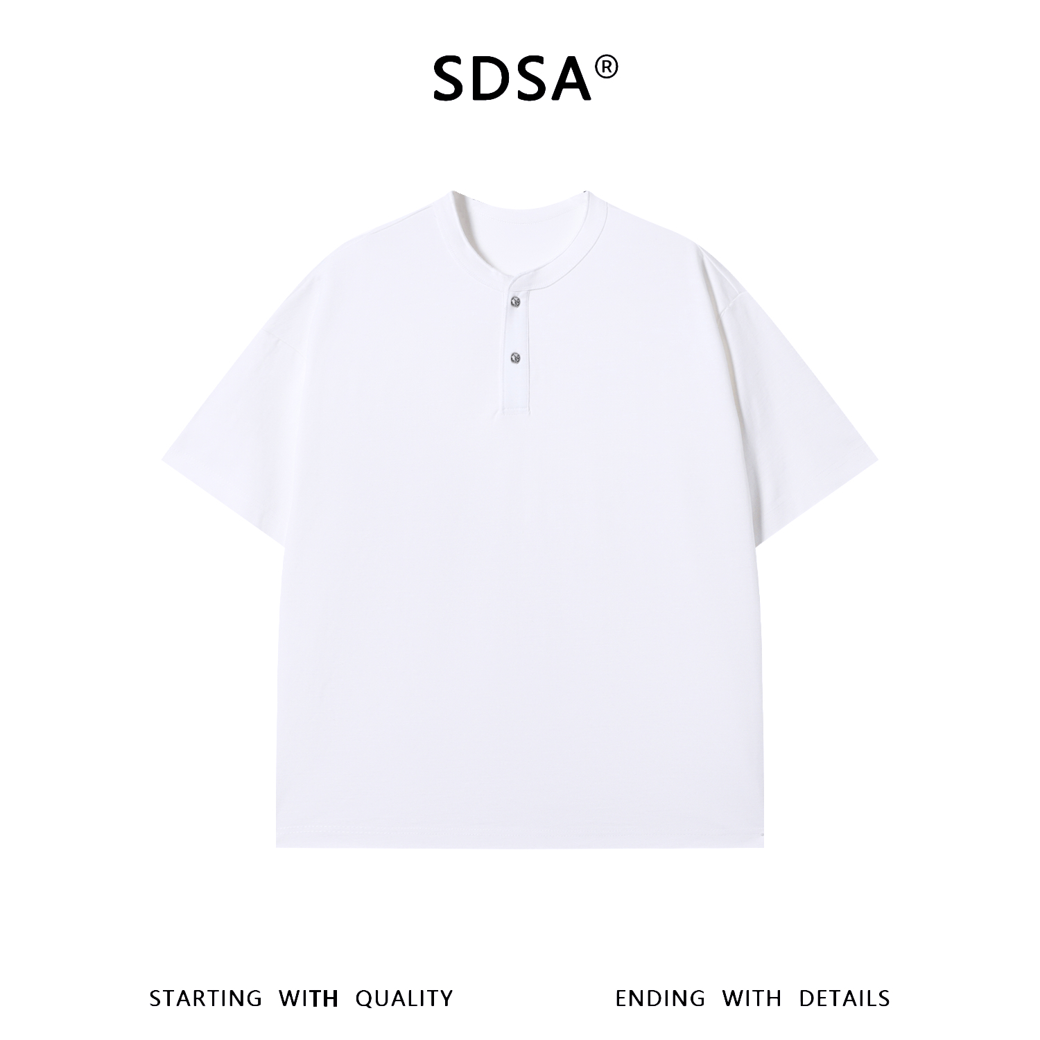 SDSA男装2026新款高贵轻奢简约纯色半纽扣设计短袖T恤百搭休闲潮