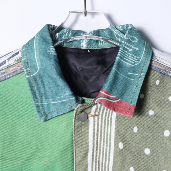 SW8004SDSA秋冬新款痞帅男装嘻哈高街印花拼接翻领牛仔夹克设计感外套