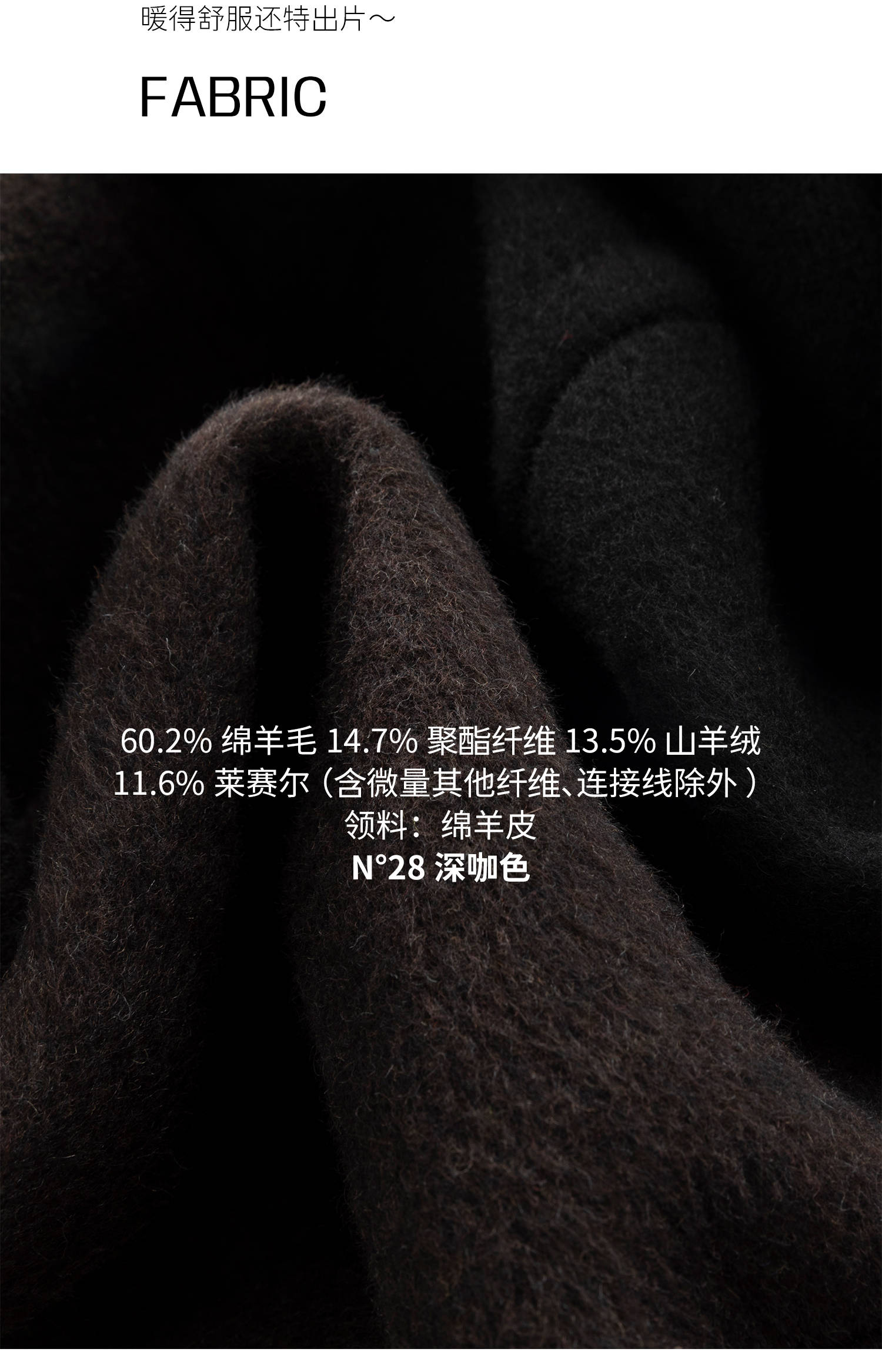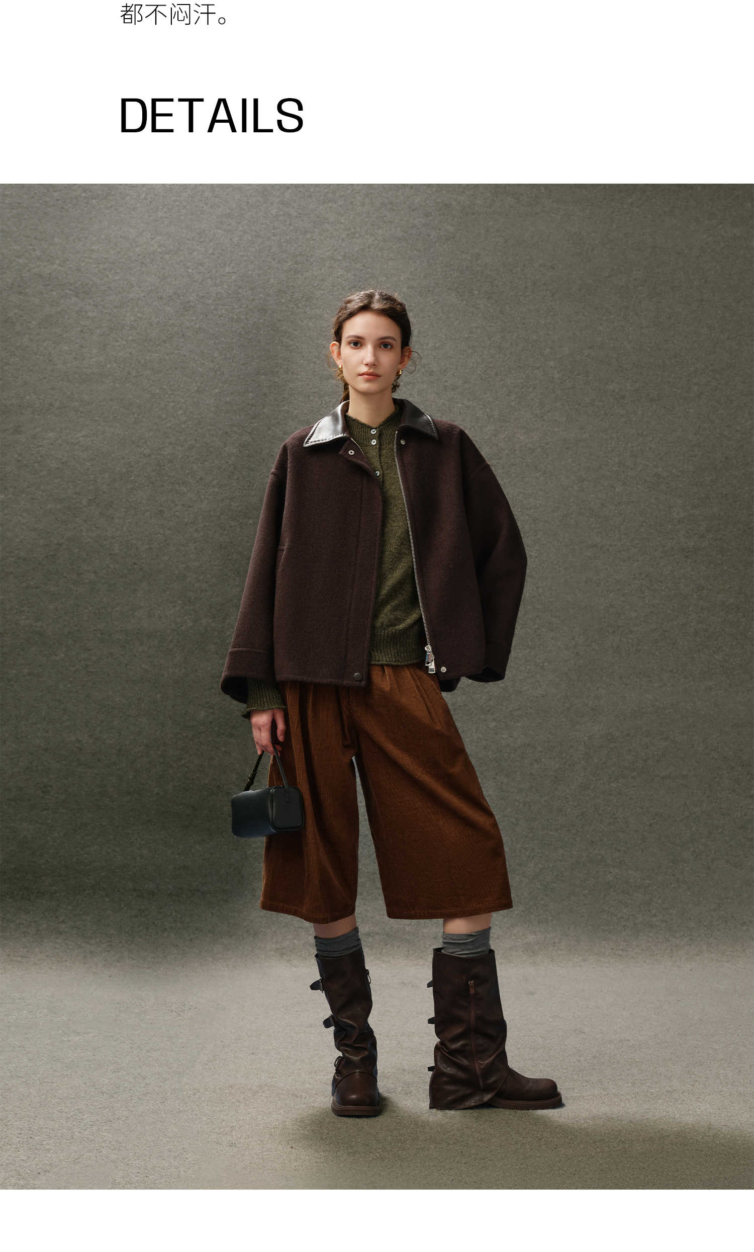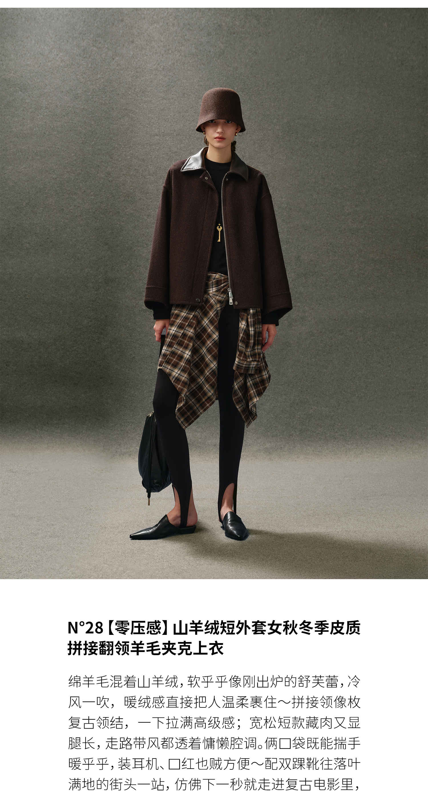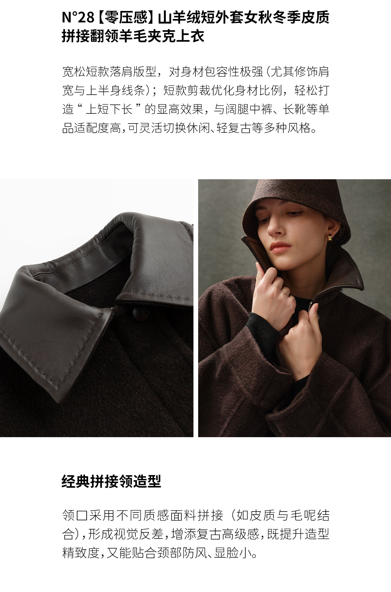N°28【零压感】秋冬季山羊绒短外套女皮质拼接翻领羊毛夹克上衣8855A1D727