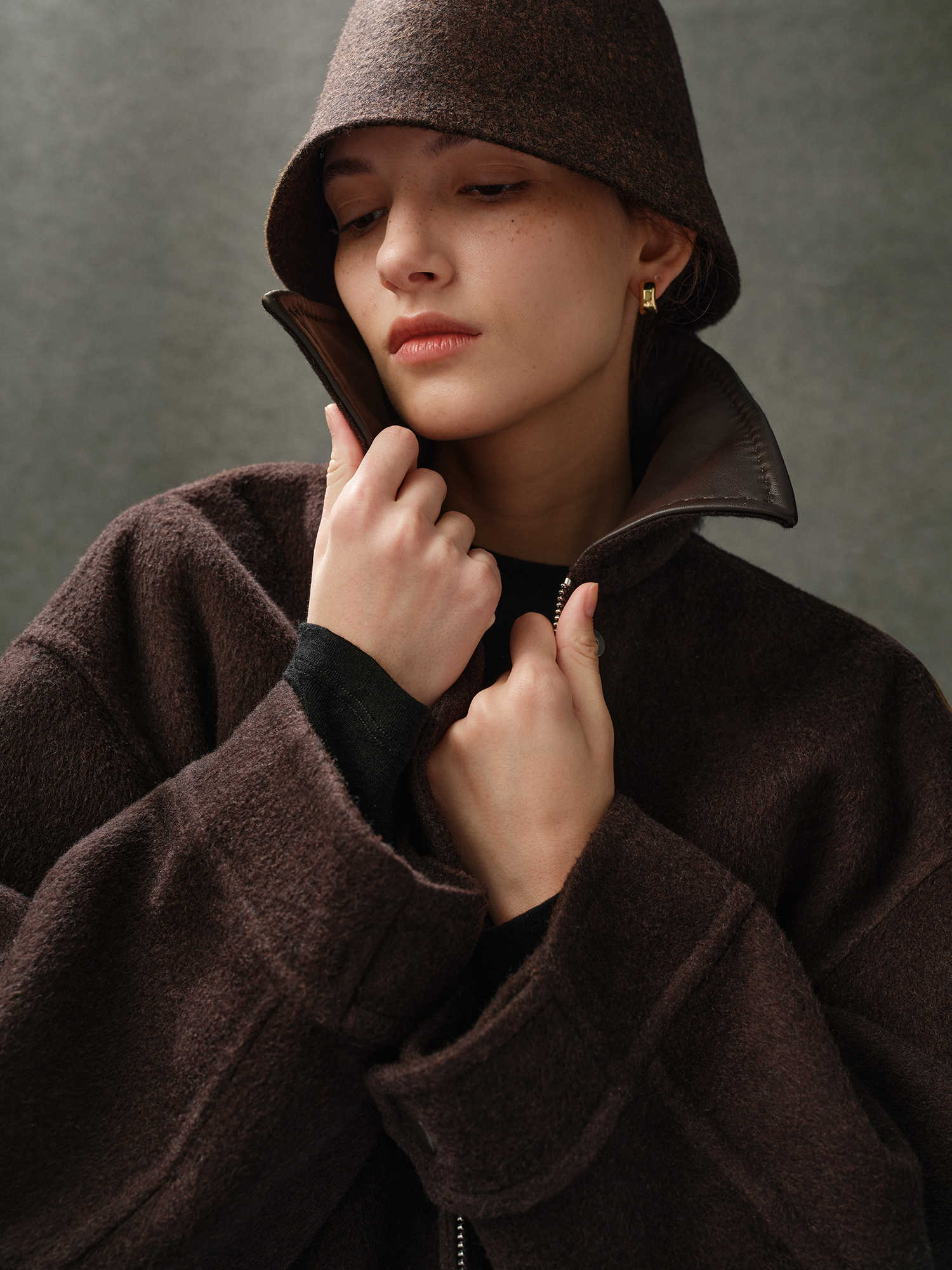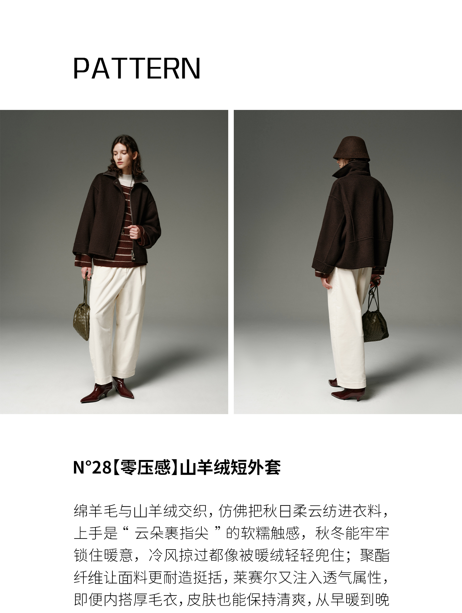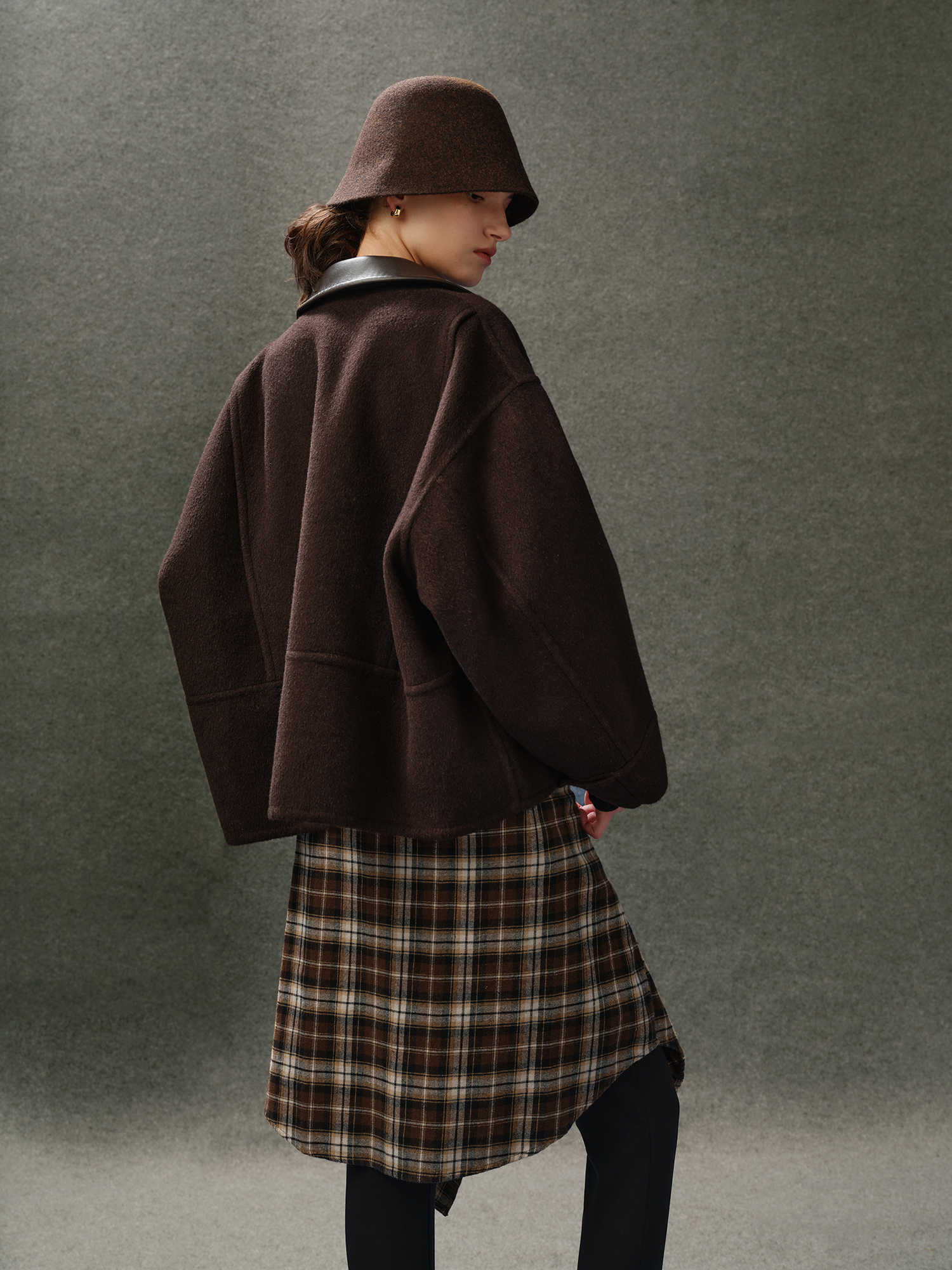N°28【零压感】秋冬季山羊绒短外套女皮质拼接翻领羊毛夹克上衣8855A1D727