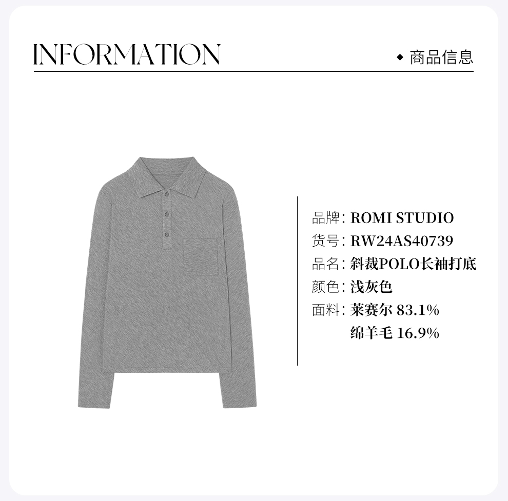 ROMI STUDIO“松弛随性”莱赛尔绵羊毛混纺斜纹长袖T恤 RW24AS40739