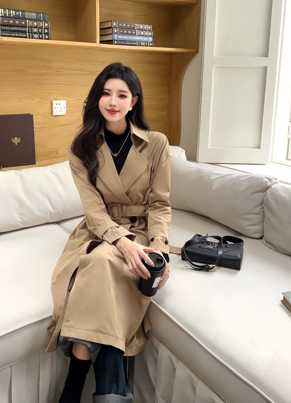 TY301-ICICL*E 之禾 新款丝羊毛精纺平纹落肩风衣(TQC)