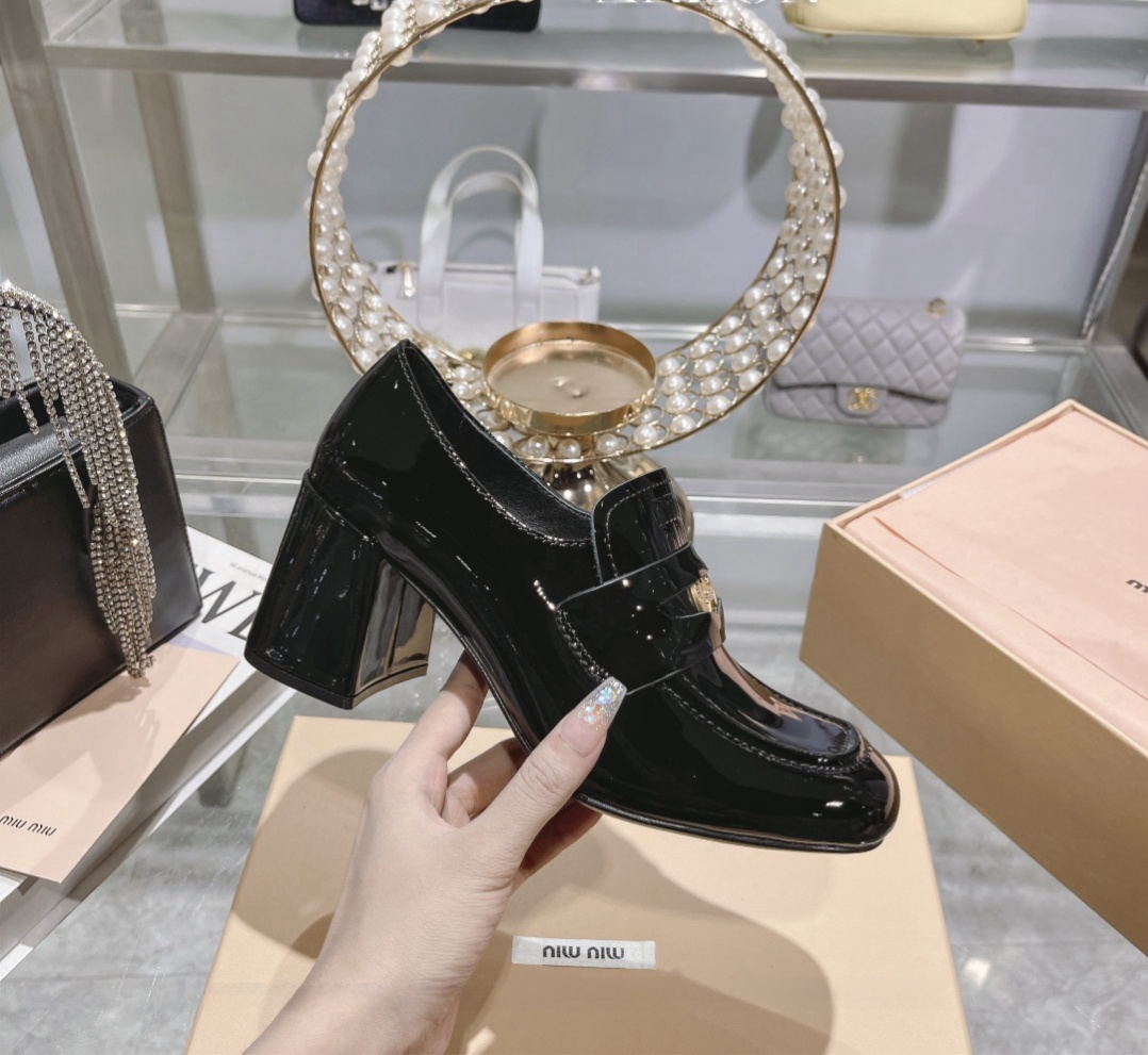 Miu Miu2023新款新色🌟又出王炸 全新金币乐福漆皮高跟鞋🌟MIUMIU 秀款!超高颜值 🌟彩色漆皮 🈵️🈵️夏天的味道 露出脚踝处,显高显瘦 拉出比例 女神同款必备单品 鞋面:进口漆皮/小牛皮✨内里:羊皮 大底✨跟高:7.5cm