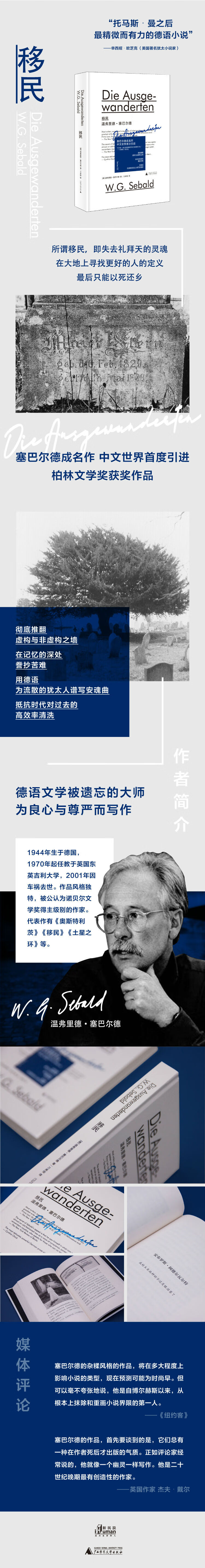 1944年生于德国,1970年起任教于英国东英吉利大学,2001年因车祸去世。作品风格独特,被公认为诺贝尔文学奖得主级别的作家。代表作有《奥斯特利茨》《移民》《土星之环》等。