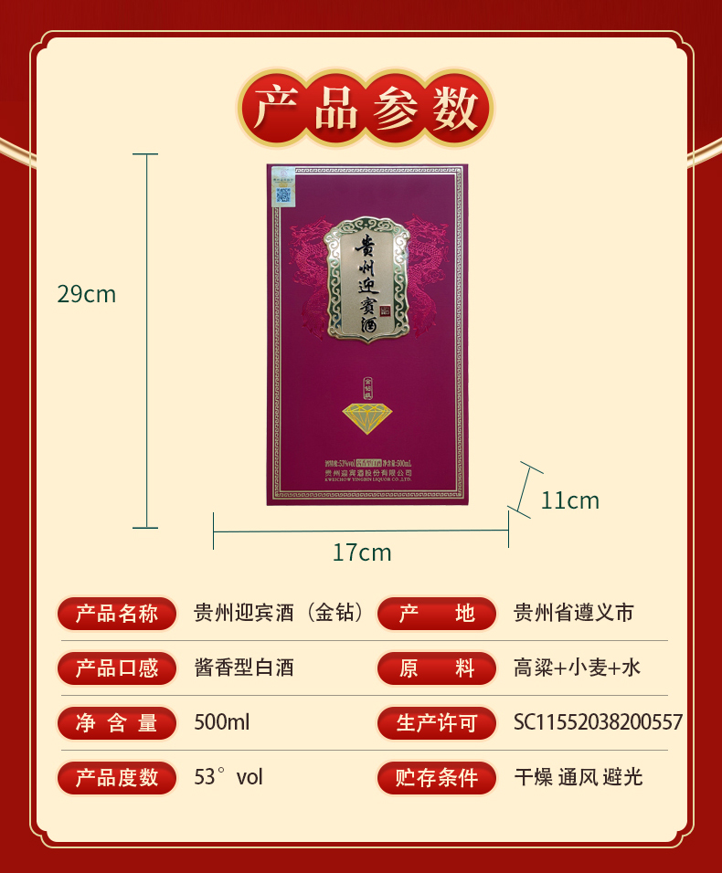 贵州迎宾酒 53度酱香型白酒 500mL*6瓶