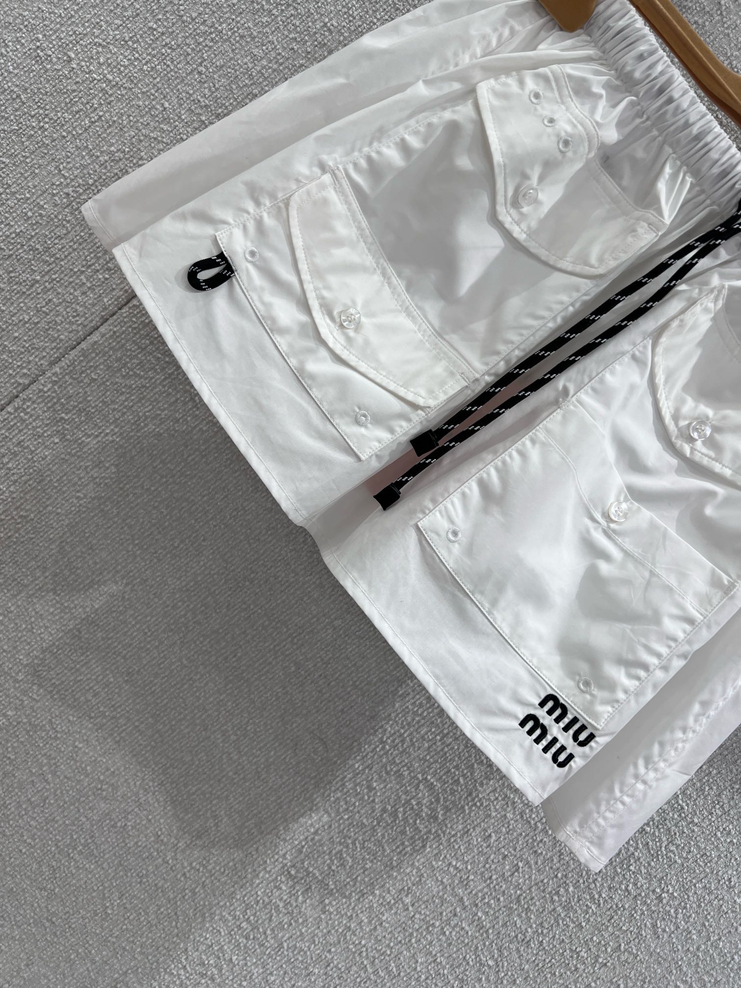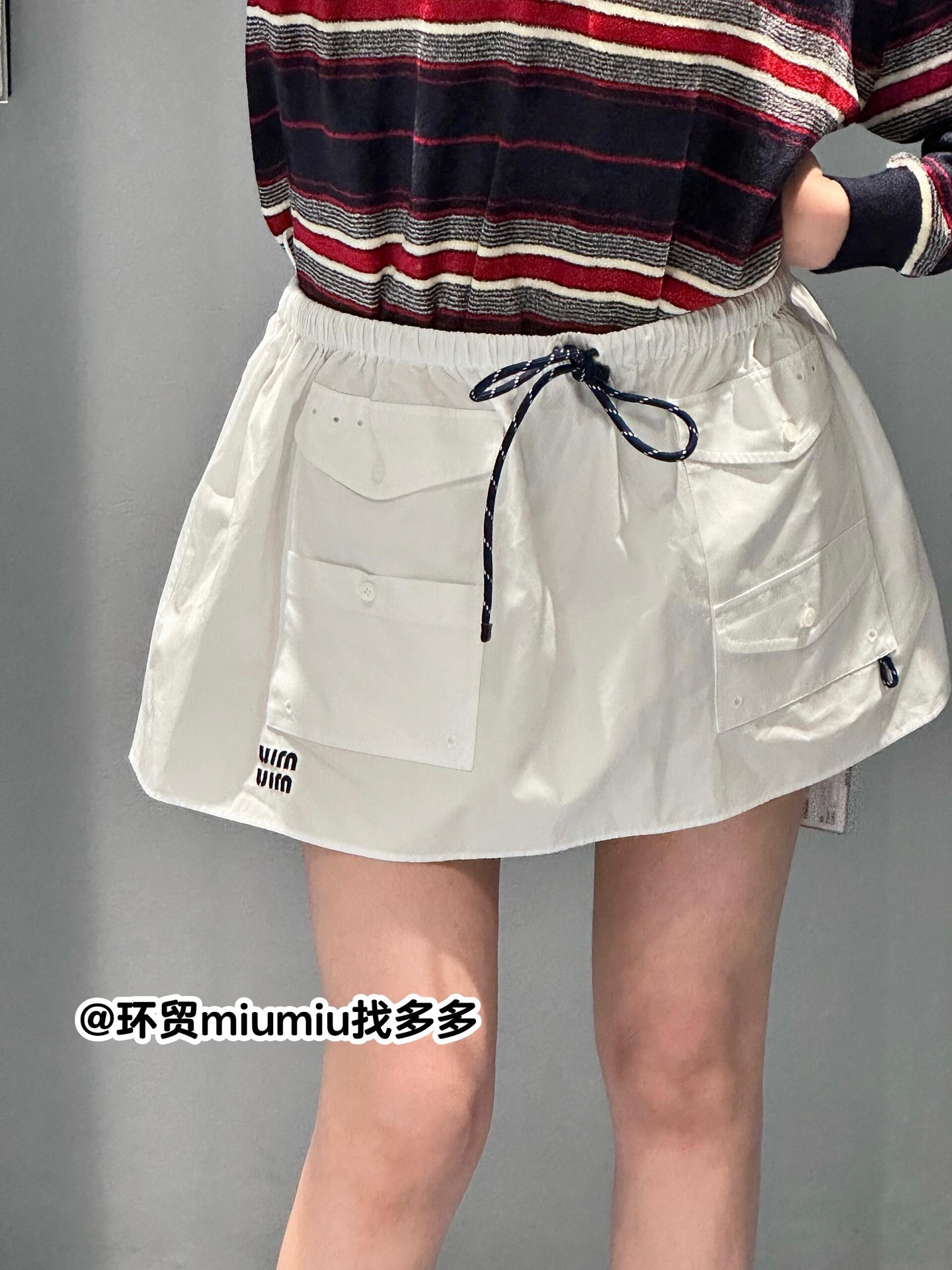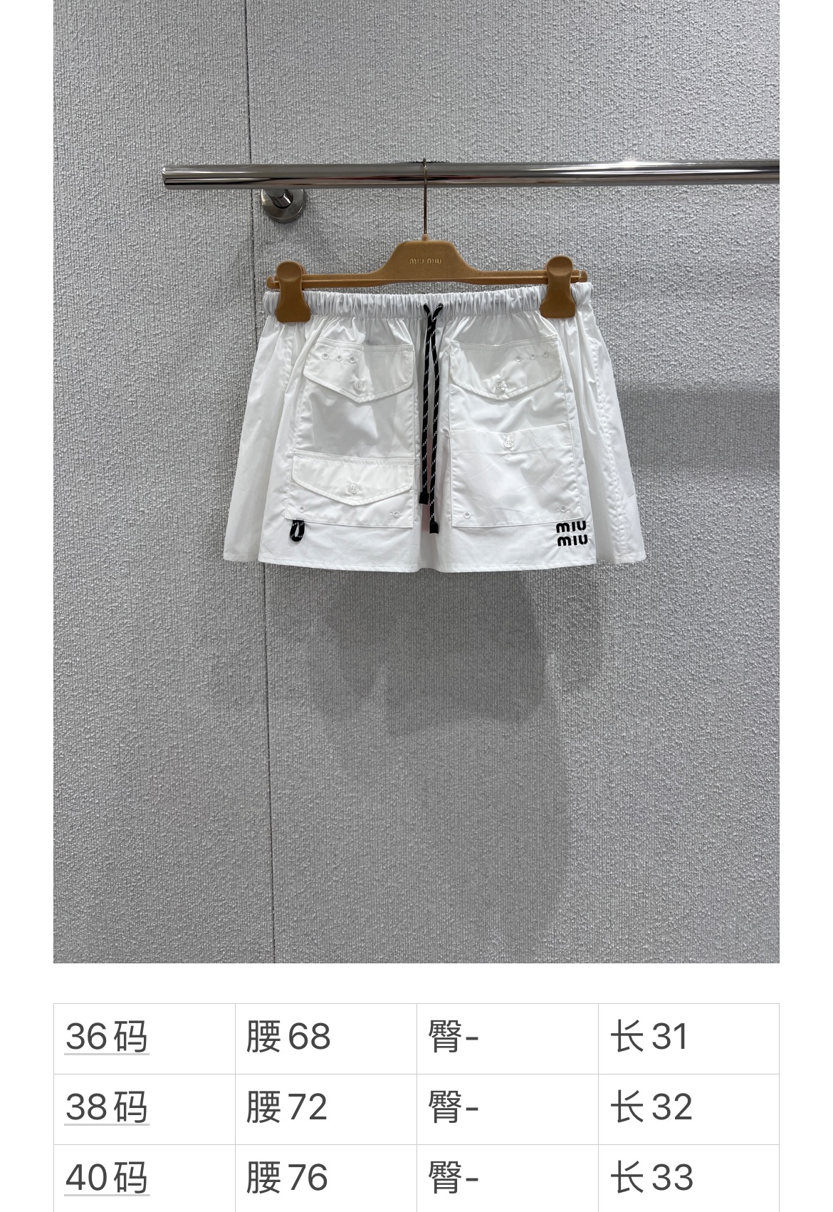 Miumi* 26Ss早春新款 字母徽标口袋迷你半身裙丨⚠独家yb开发!顶级高版出品!以挺括的棉质府绸为面料,打造出兼具工装感与少女感的A字廓形。腰部的抽绳设计可自由调节松紧,适配不同腰围;多口袋细节与侧边的迷你字母徽标相呼应,为纯白裙身注入复古活力。无论是搭配丝绒卫衣打造甜酷学院风,还是与短款背心组合出辣妹感,它都能成为早春造型的点睛之笔,轻松平衡松弛感与精致感。