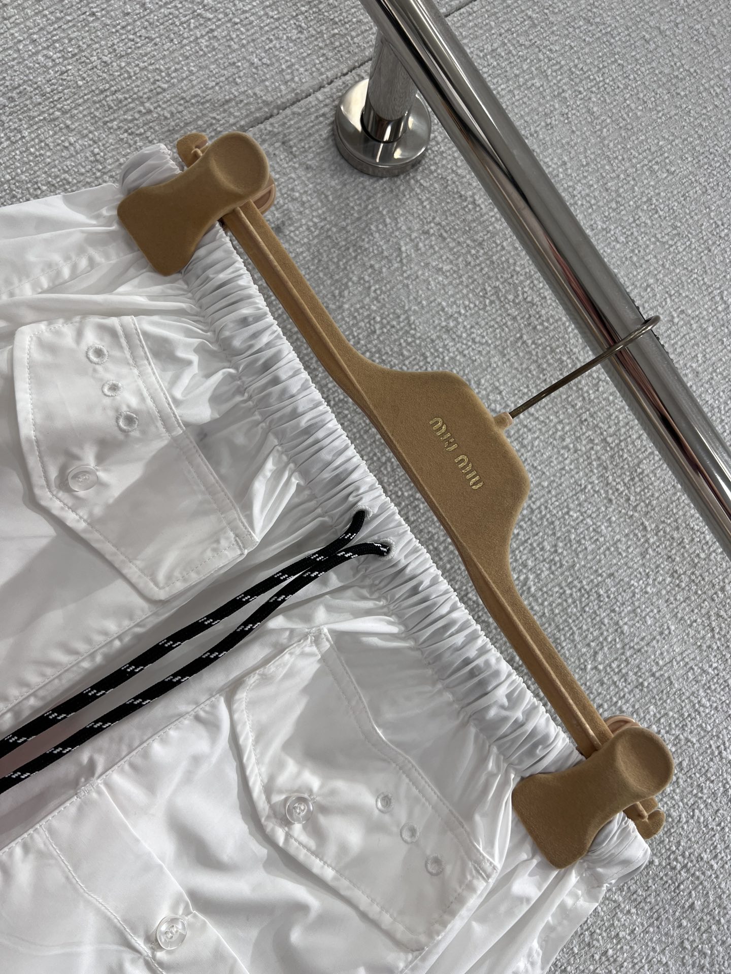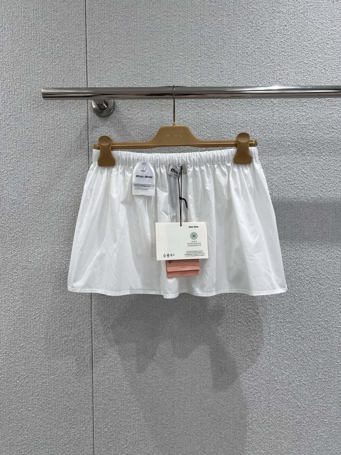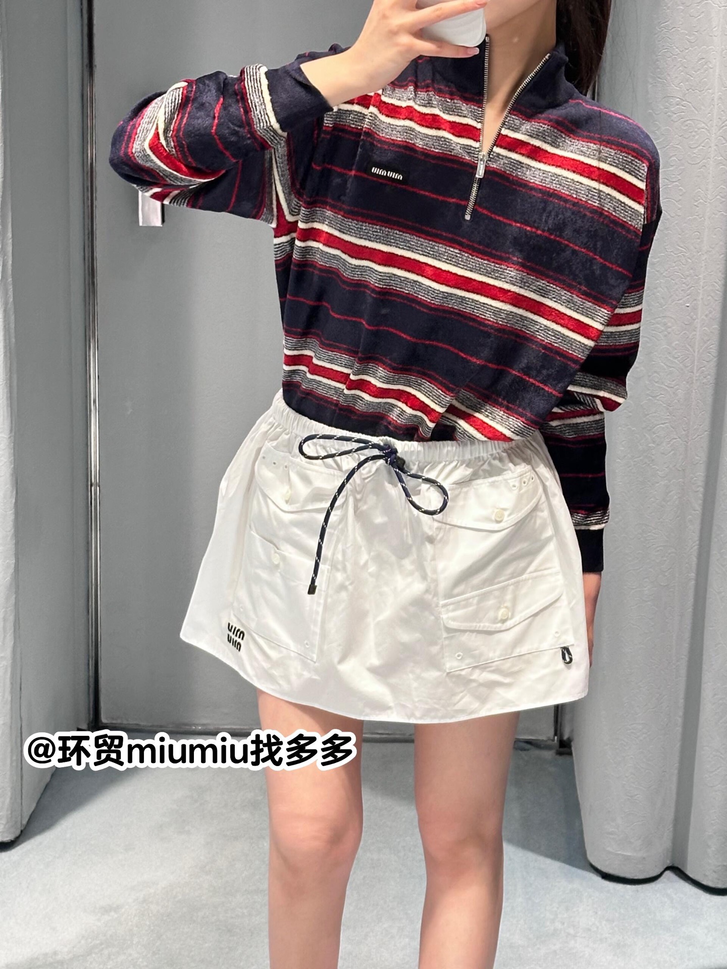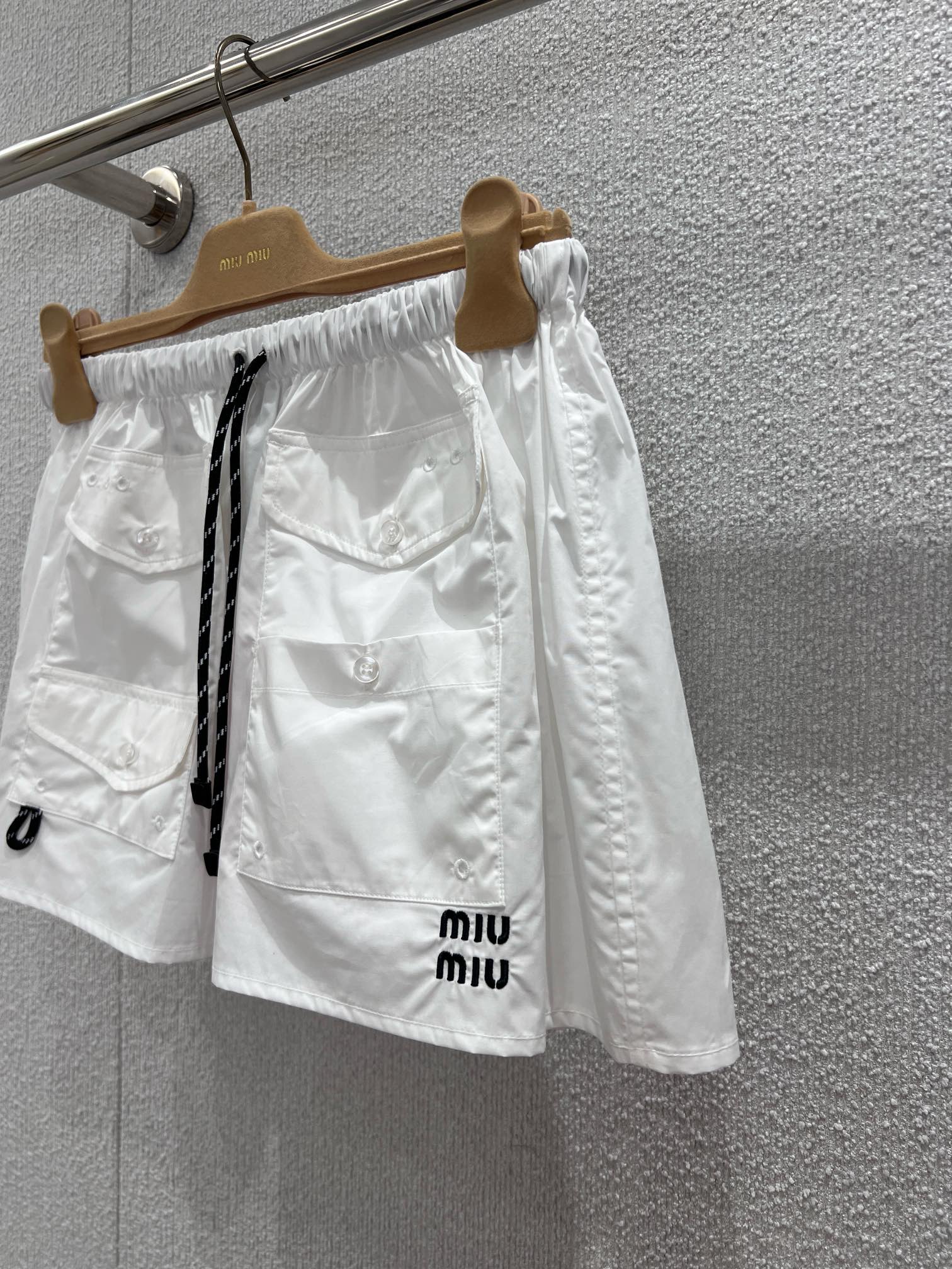 Miumi* 26Ss早春新款 字母徽标口袋迷你半身裙丨⚠独家yb开发!顶级高版出品!以挺括的棉质府绸为面料,打造出兼具工装感与少女感的A字廓形。腰部的抽绳设计可自由调节松紧,适配不同腰围;多口袋细节与侧边的迷你字母徽标相呼应,为纯白裙身注入复古活力。无论是搭配丝绒卫衣打造甜酷学院风,还是与短款背心组合出辣妹感,它都能成为早春造型的点睛之笔,轻松平衡松弛感与精致感。