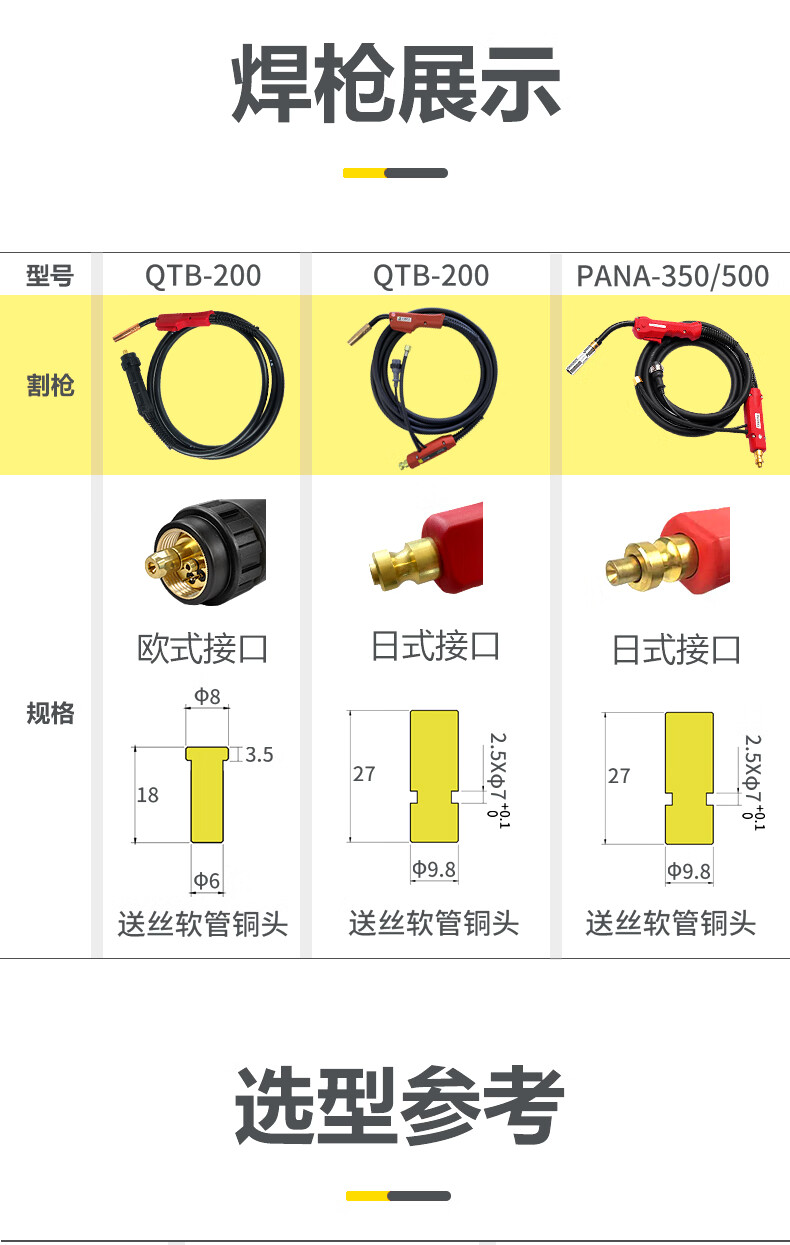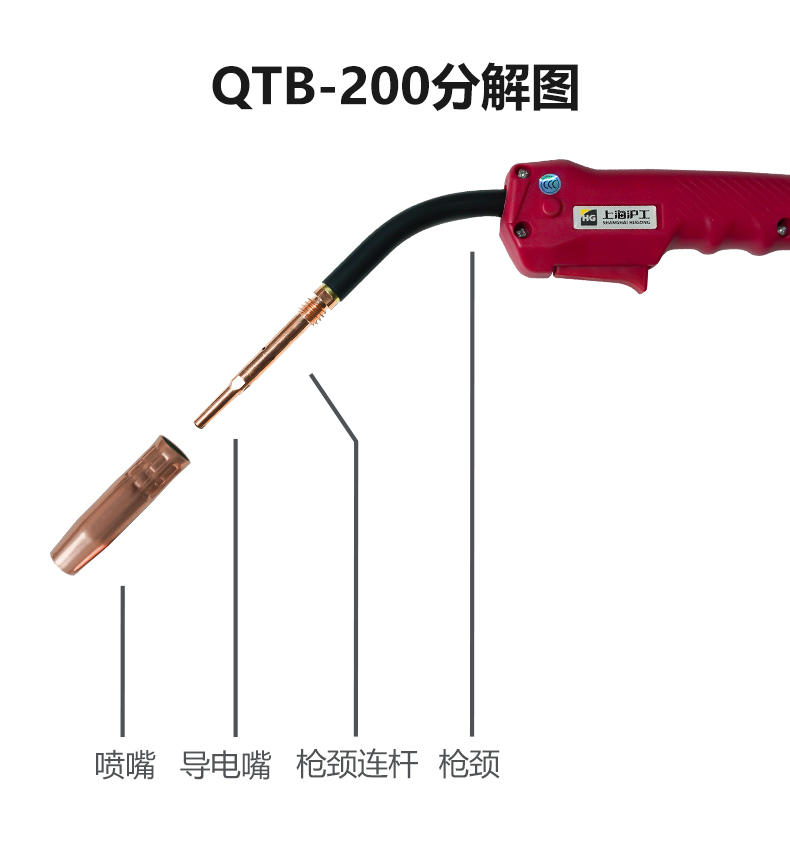 【日式松下接口款】上海沪工二保焊气保焊枪【QTB-200 5米 日式松下接口款】 电焊机配件