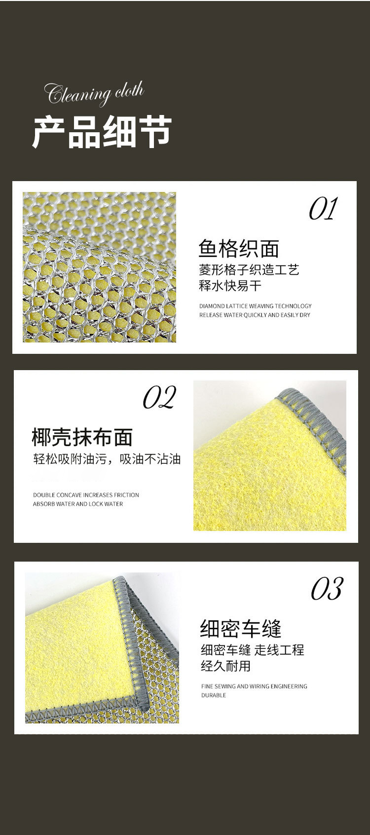 【29.9元10条】加厚款椰壳+银丝双面抹布 | 干湿两用 亲肤柔软 吸水力强 易冲洗 柔韧不易掉屑