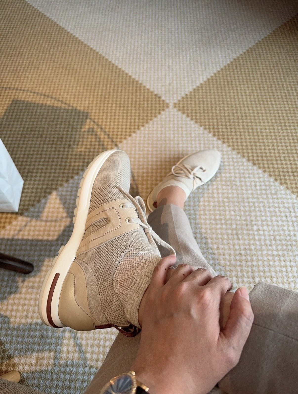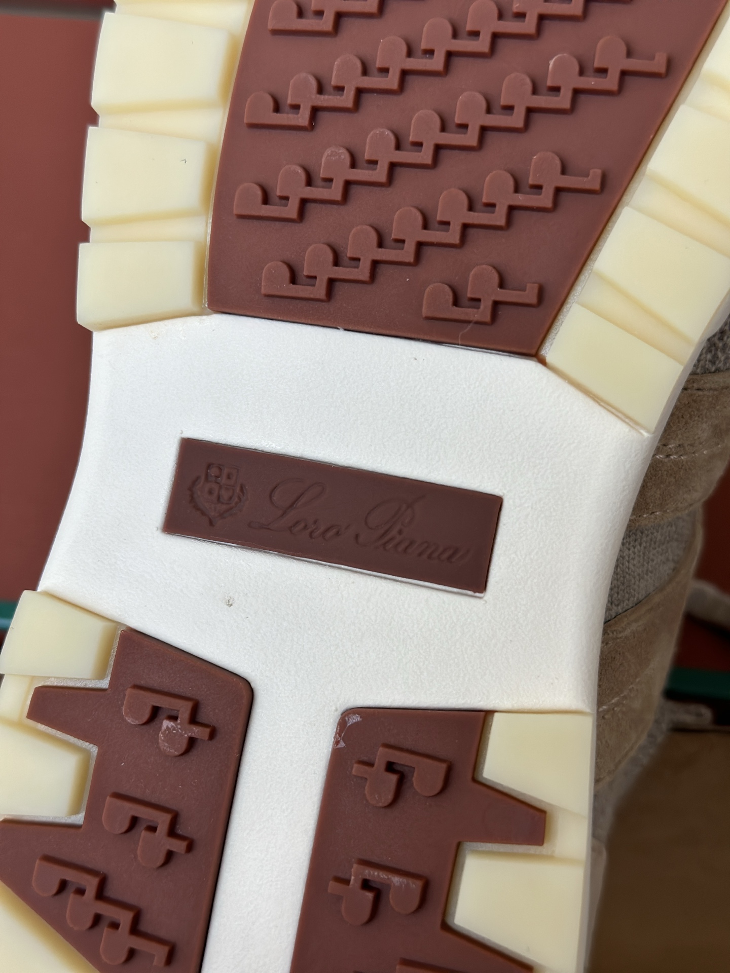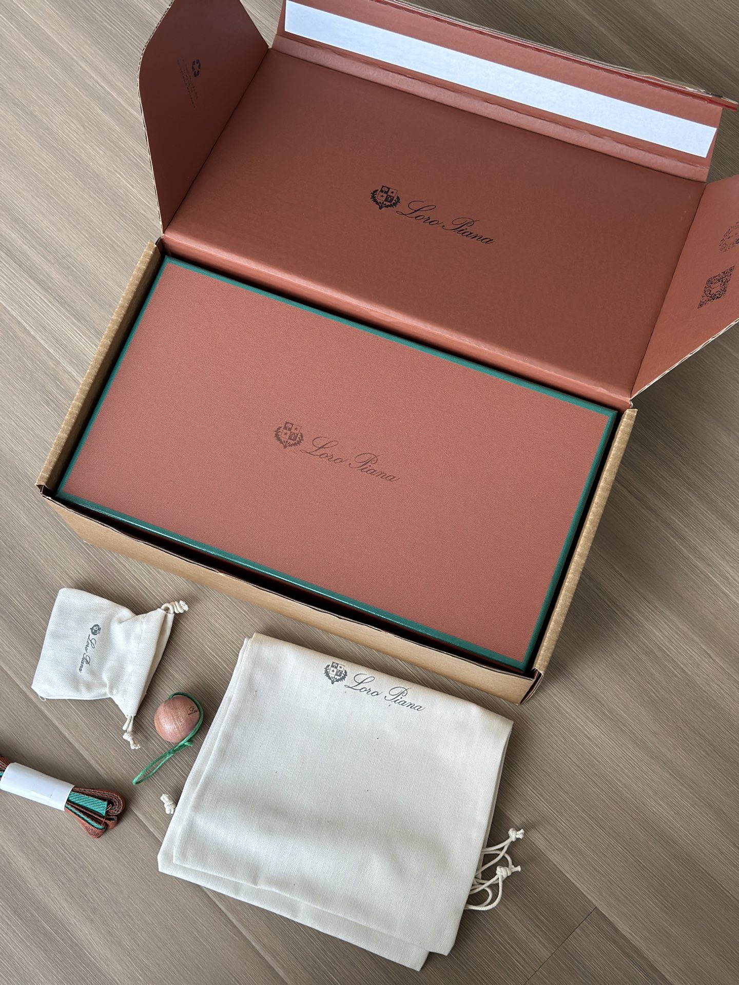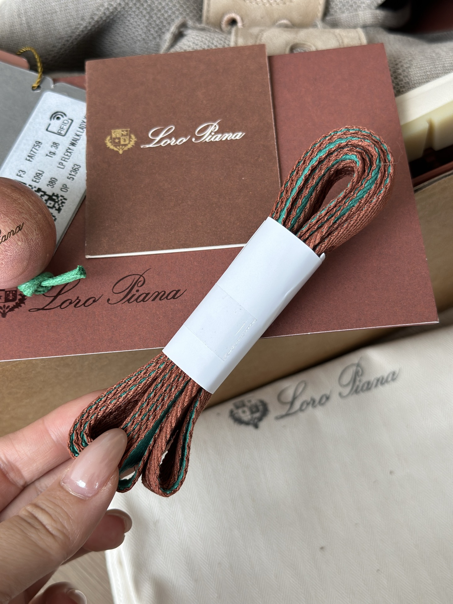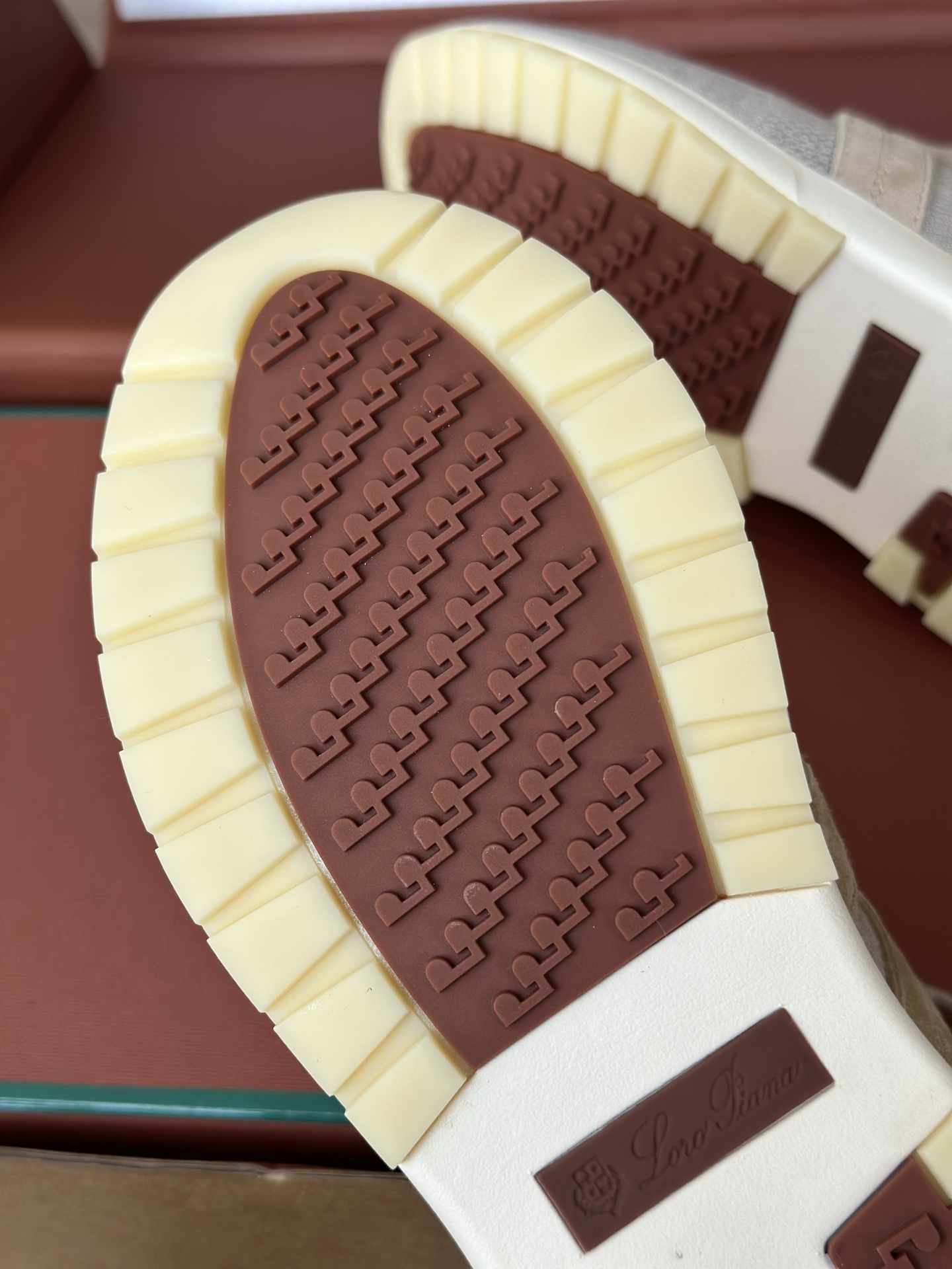配Kummel 色鞋底,印有Loro Piana首字母缩写重复图案Kummel 色提拉环带有Loro Piana 标识