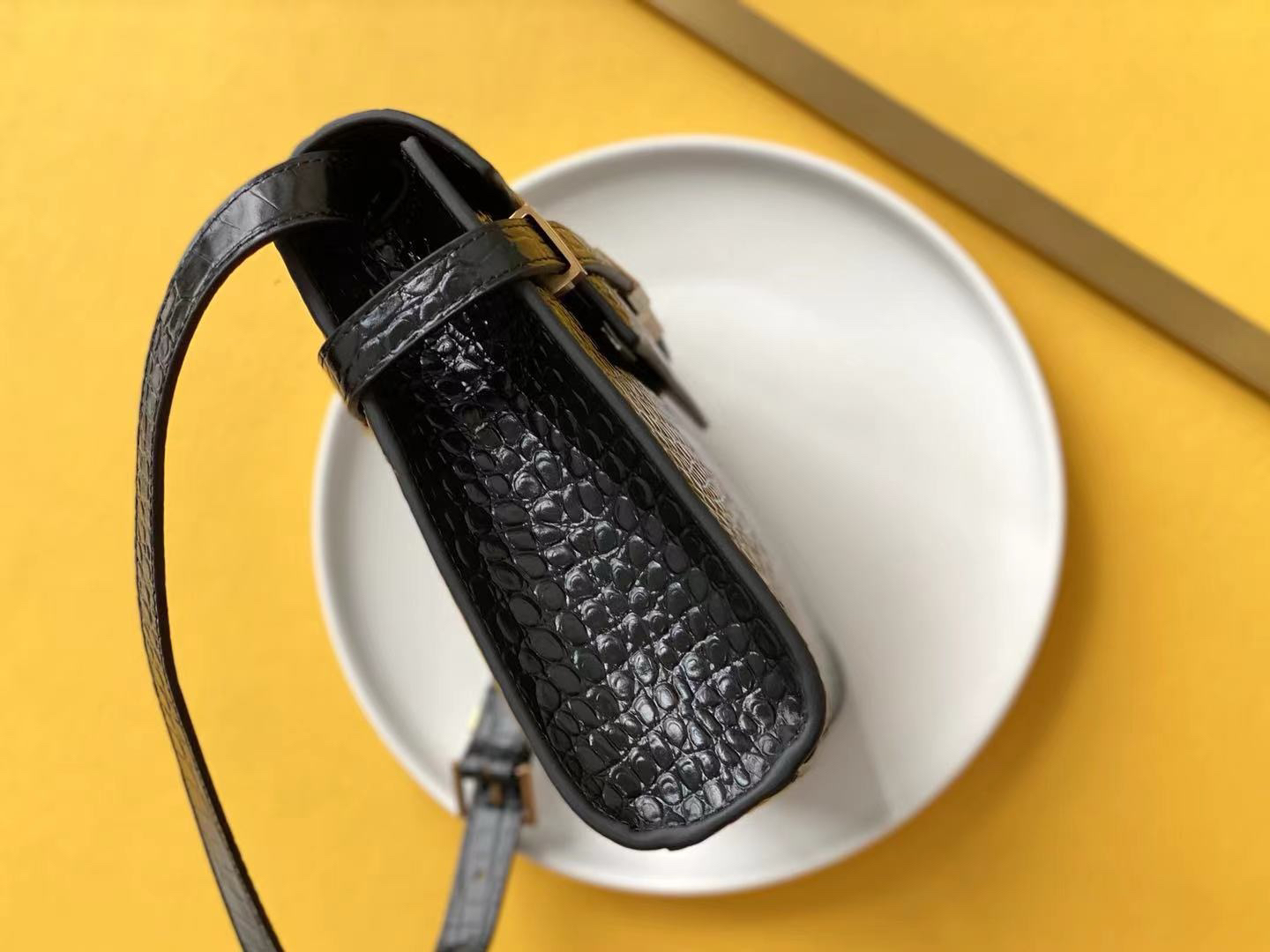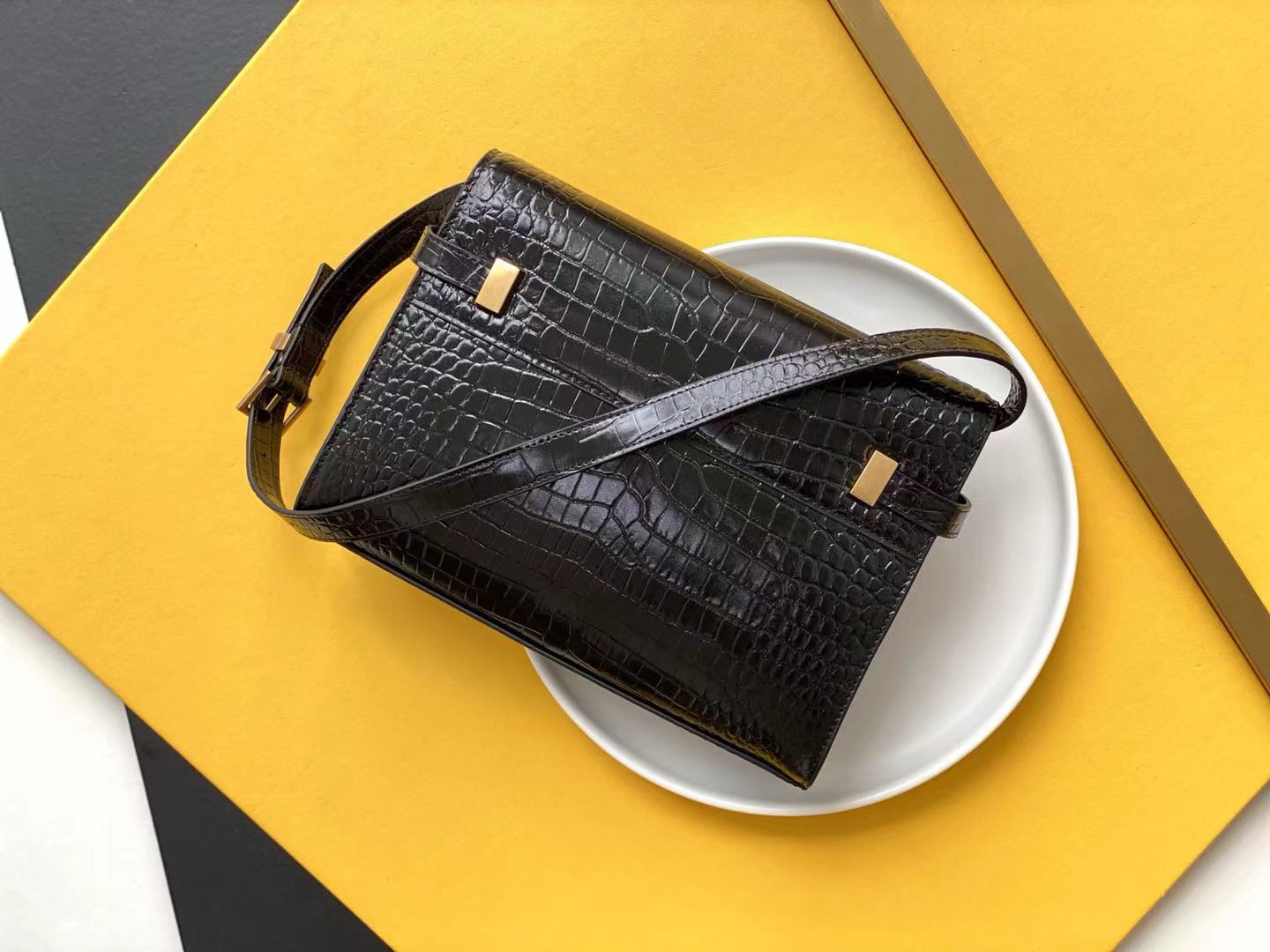 SAINT LAURENT圣罗兰 YSL SL MANHATTAN 曼哈顿金扣 鳄鱼纹压花闪亮牛皮革 斜挎单肩包 小号 中号女款 黑色(CB)