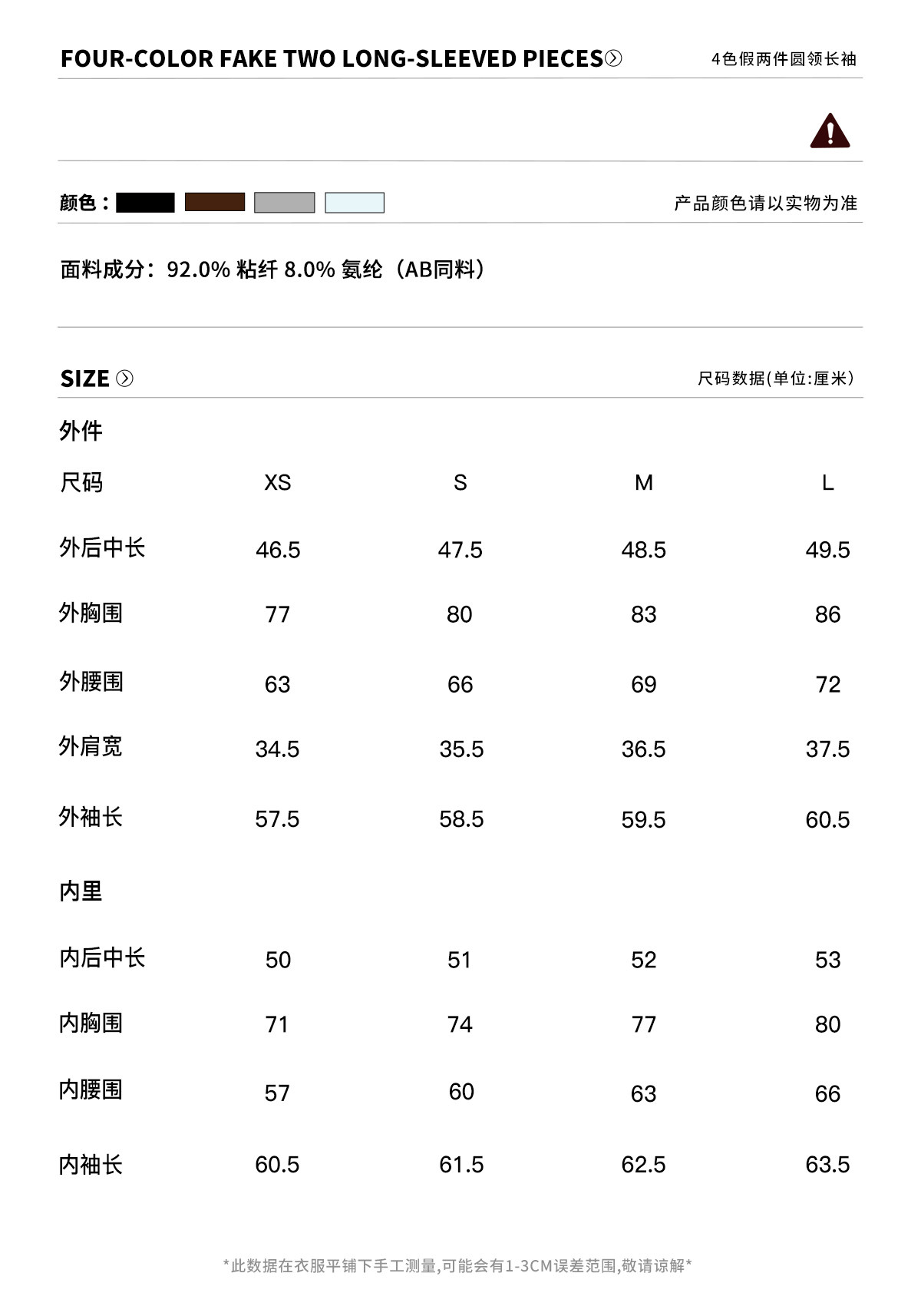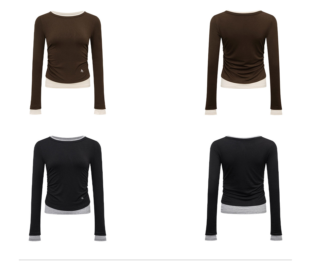 Ariseism 美式复古设计感假两件长袖T恤女秋冬新款内搭打底上衣