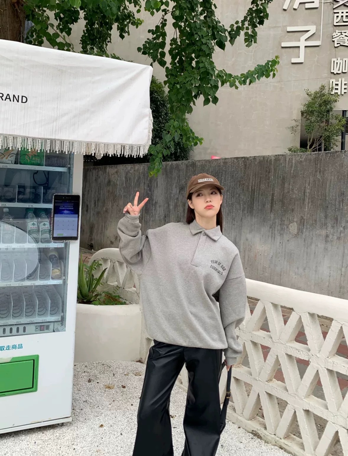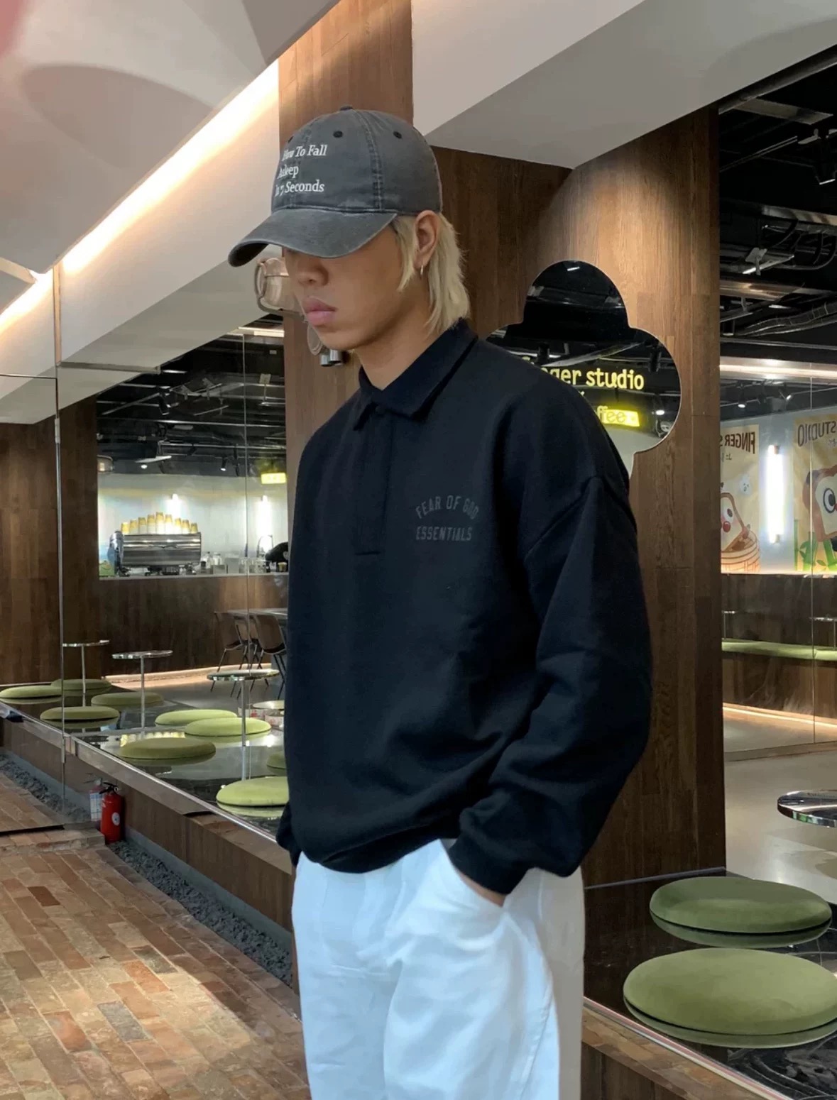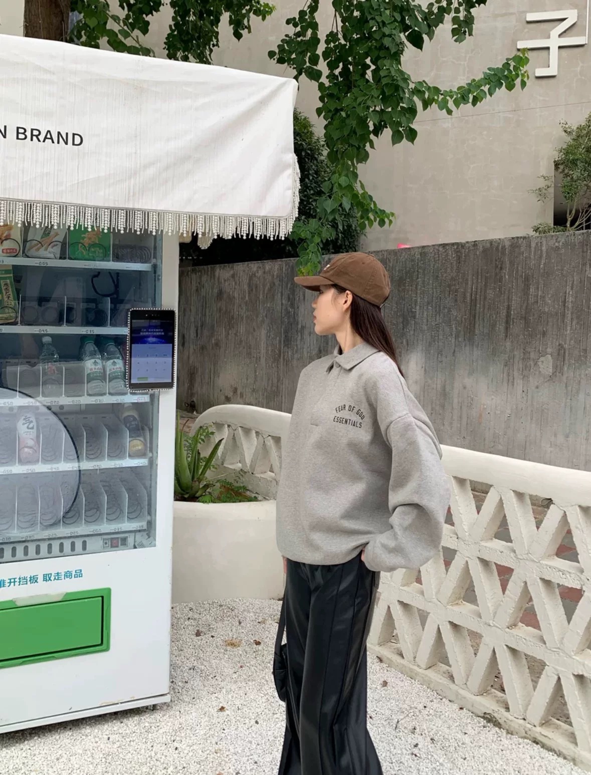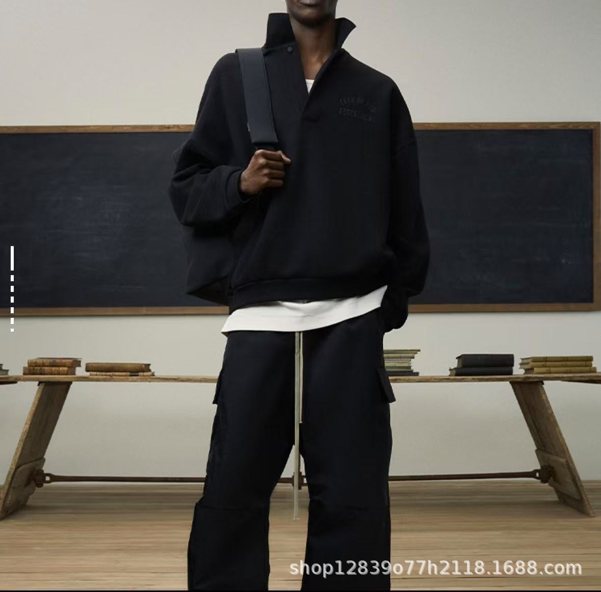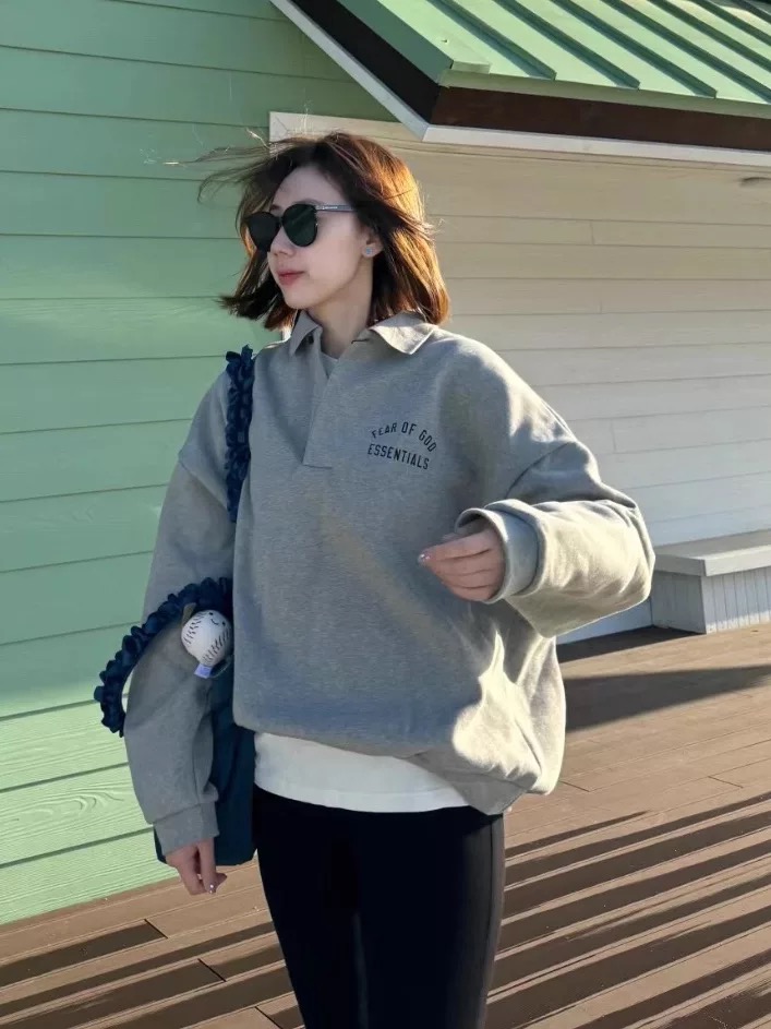 Fear of God Essentials Fall24 BACK TO SCHOOL系列 Fleece Polo 徽标印花套头长袖Polo衫 (BG)