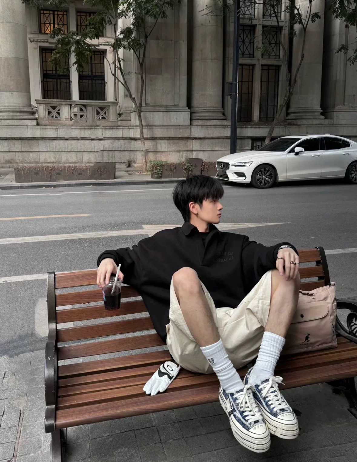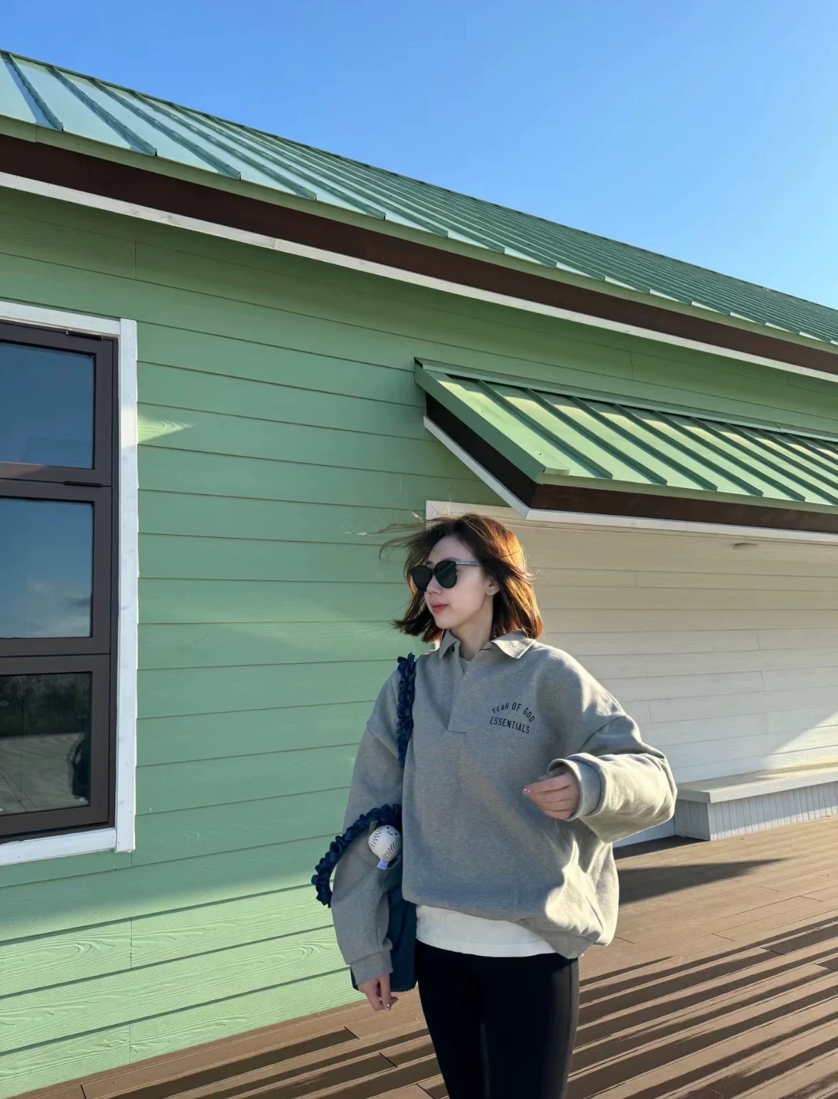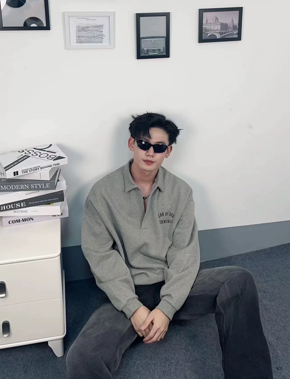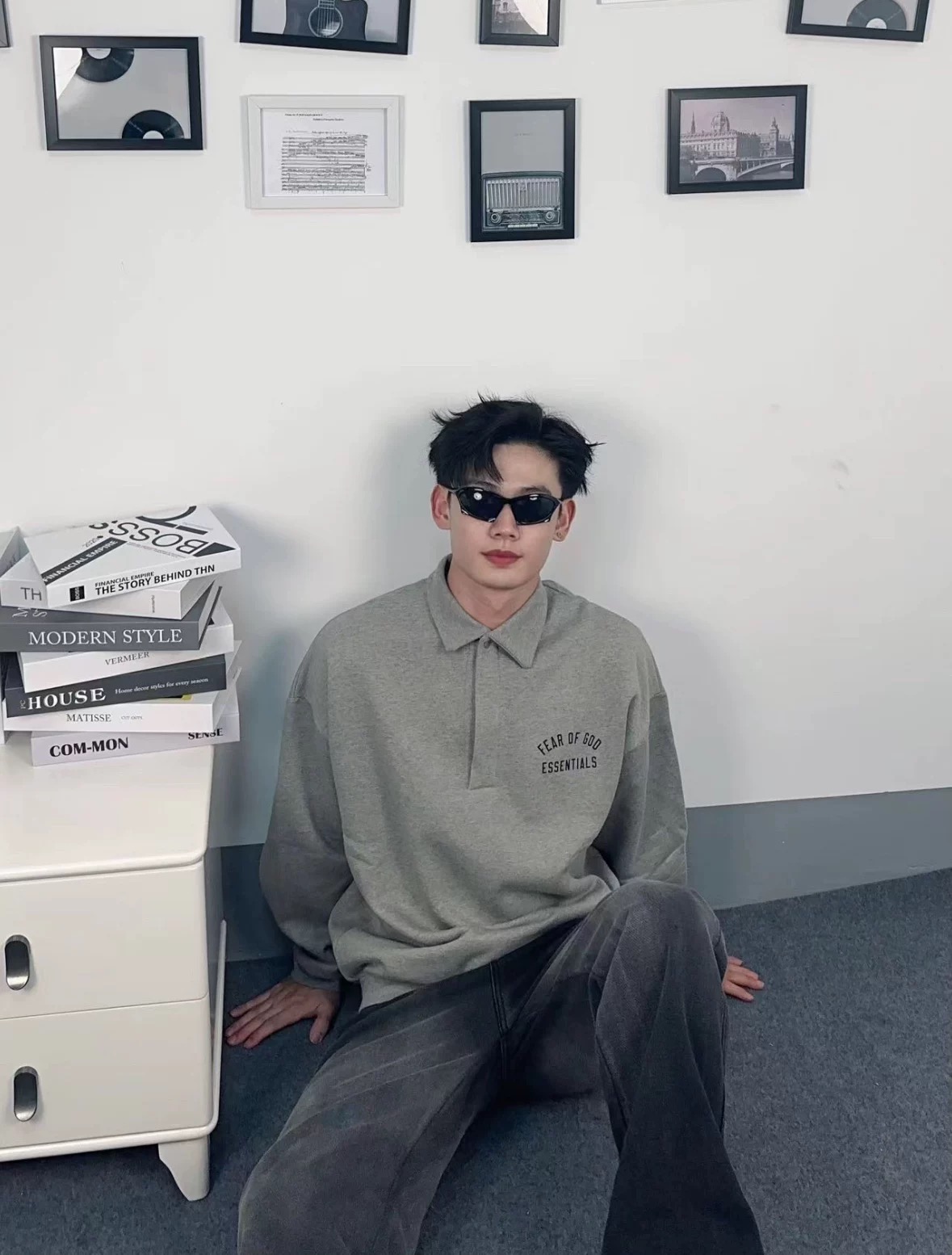 Fear of God Essentials Fall24 BACK TO SCHOOL系列 Fleece Polo 徽标印花套头长袖Polo衫 (BG)