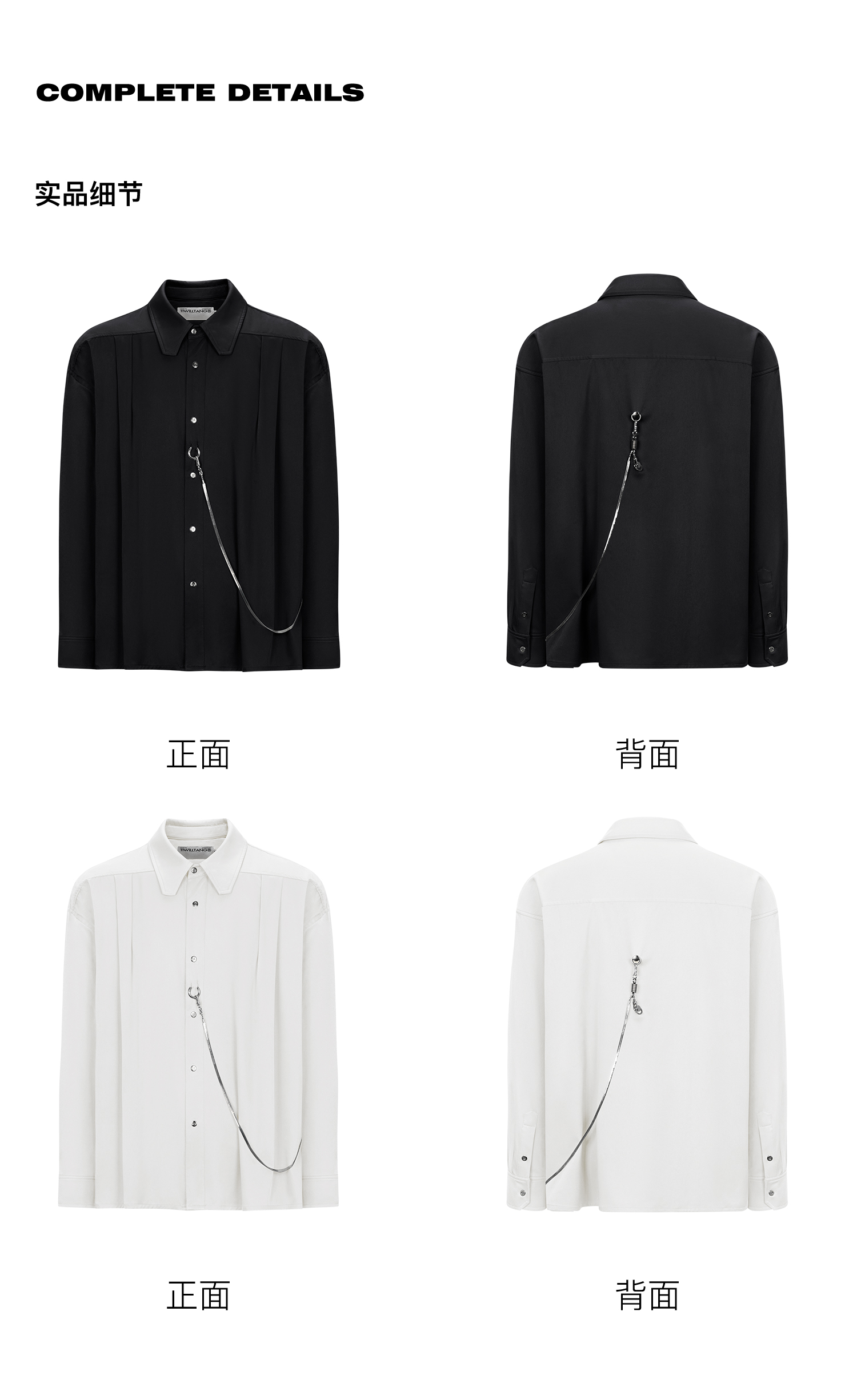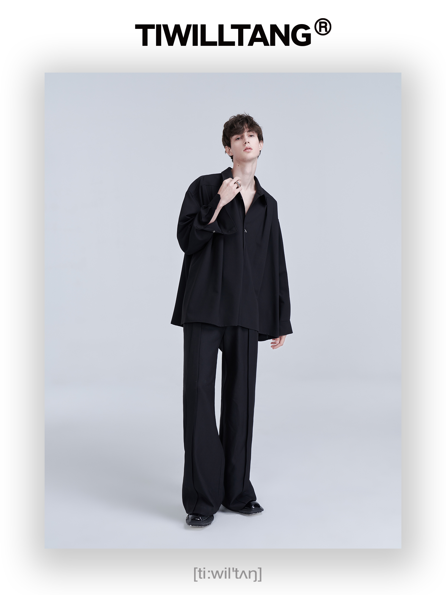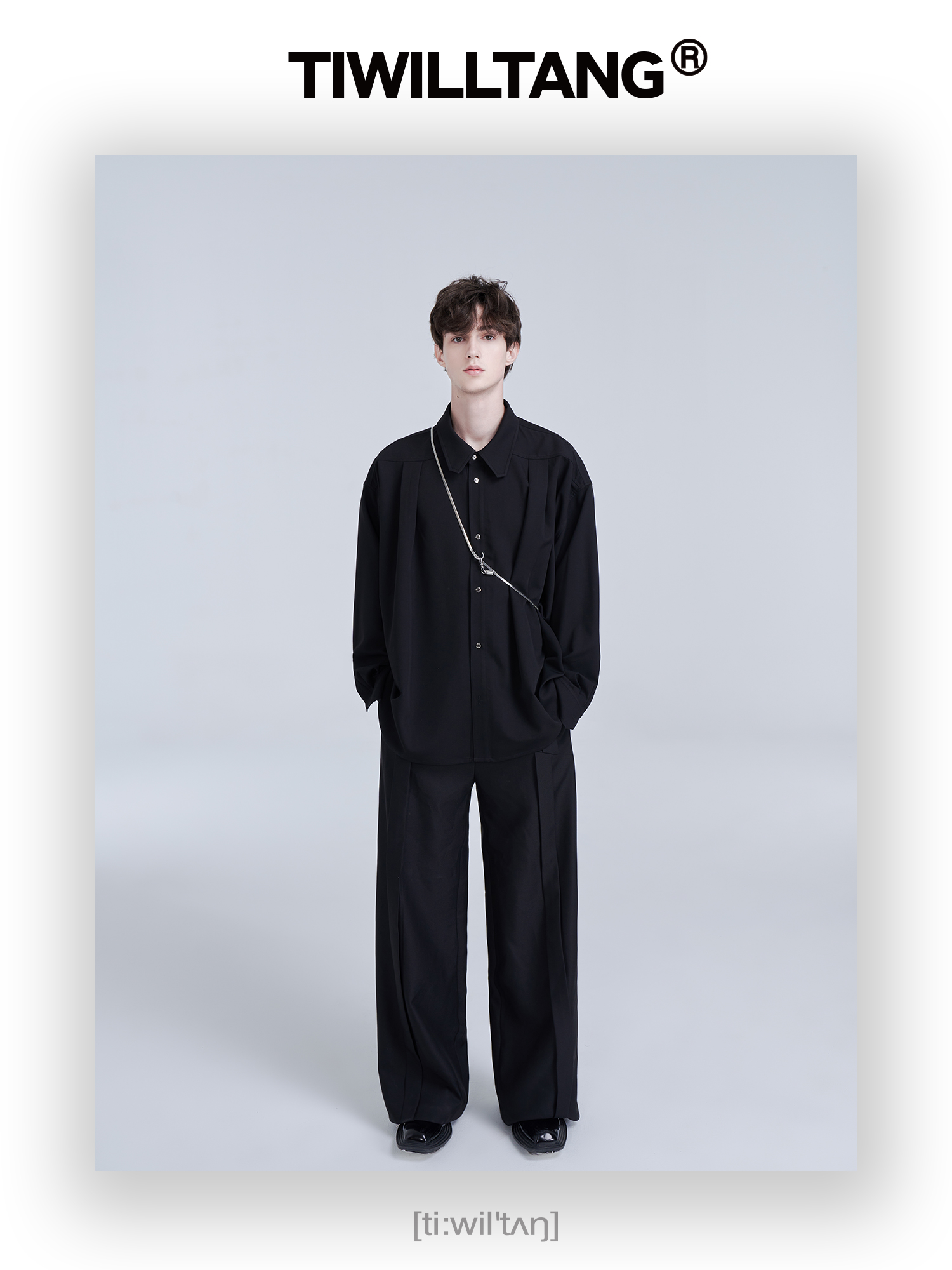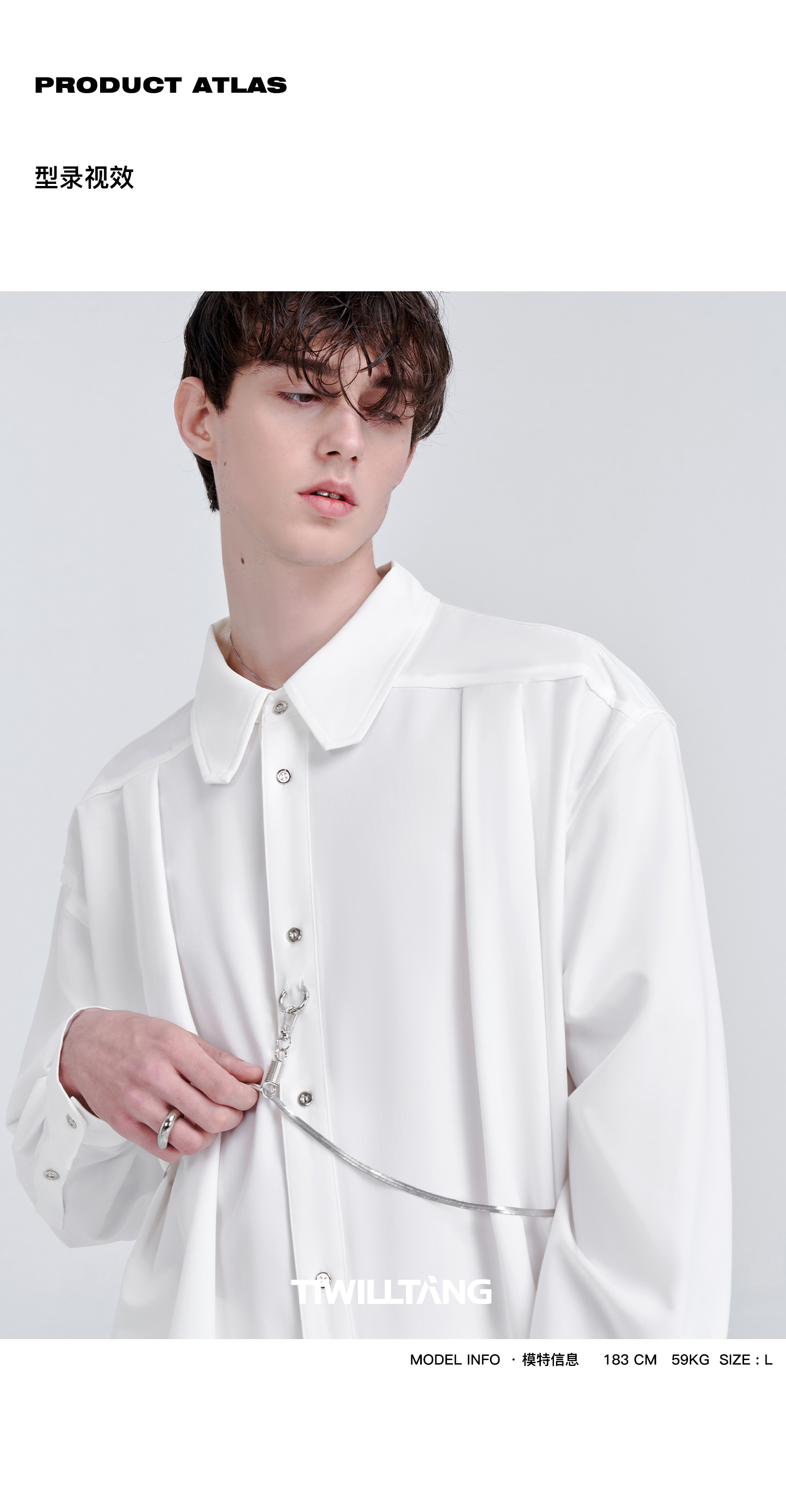 TIWILLTANG启世录“濠慵”龙骨链慵懒风垂感纯色宽松长袖衬衫黑白