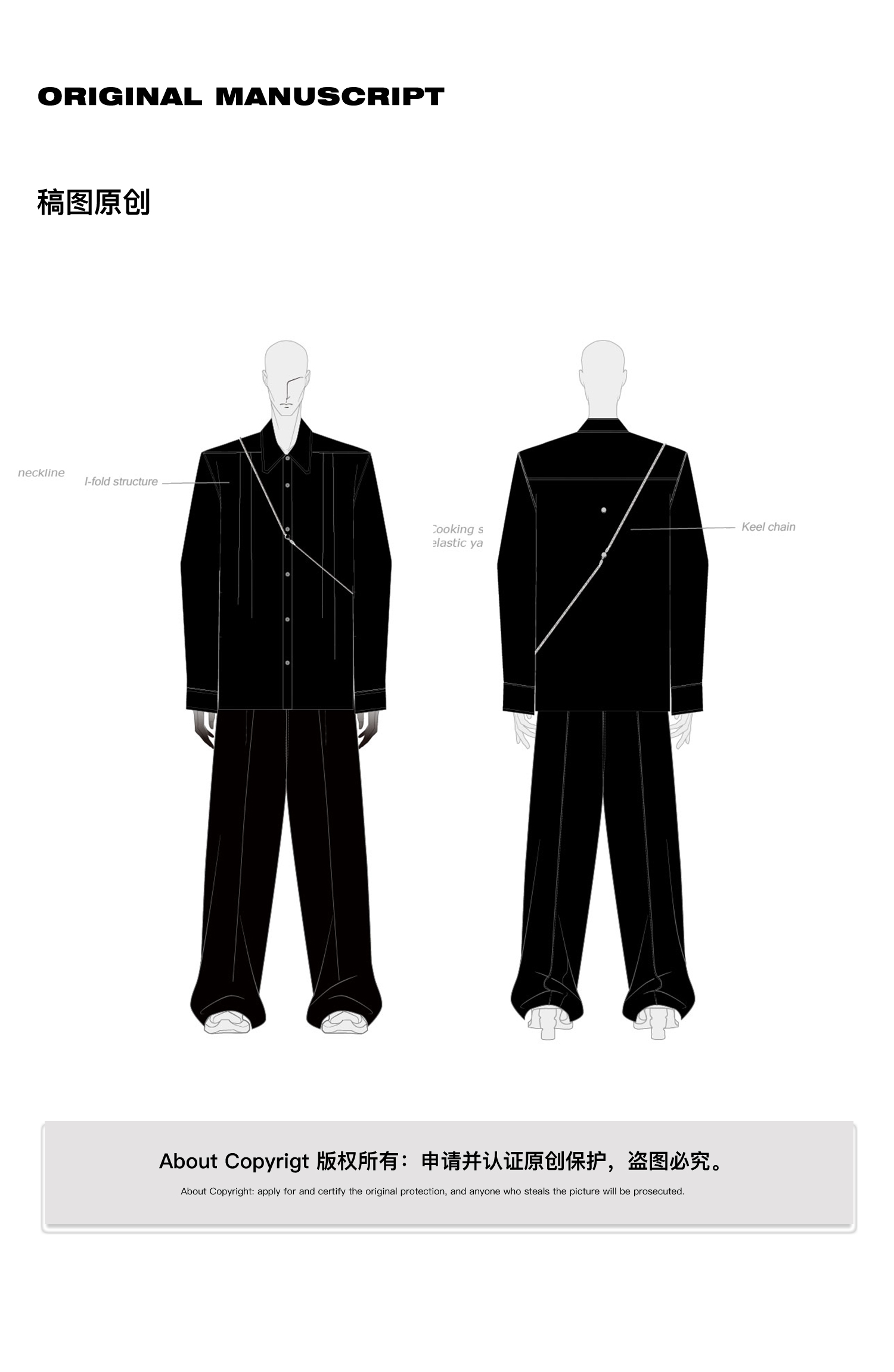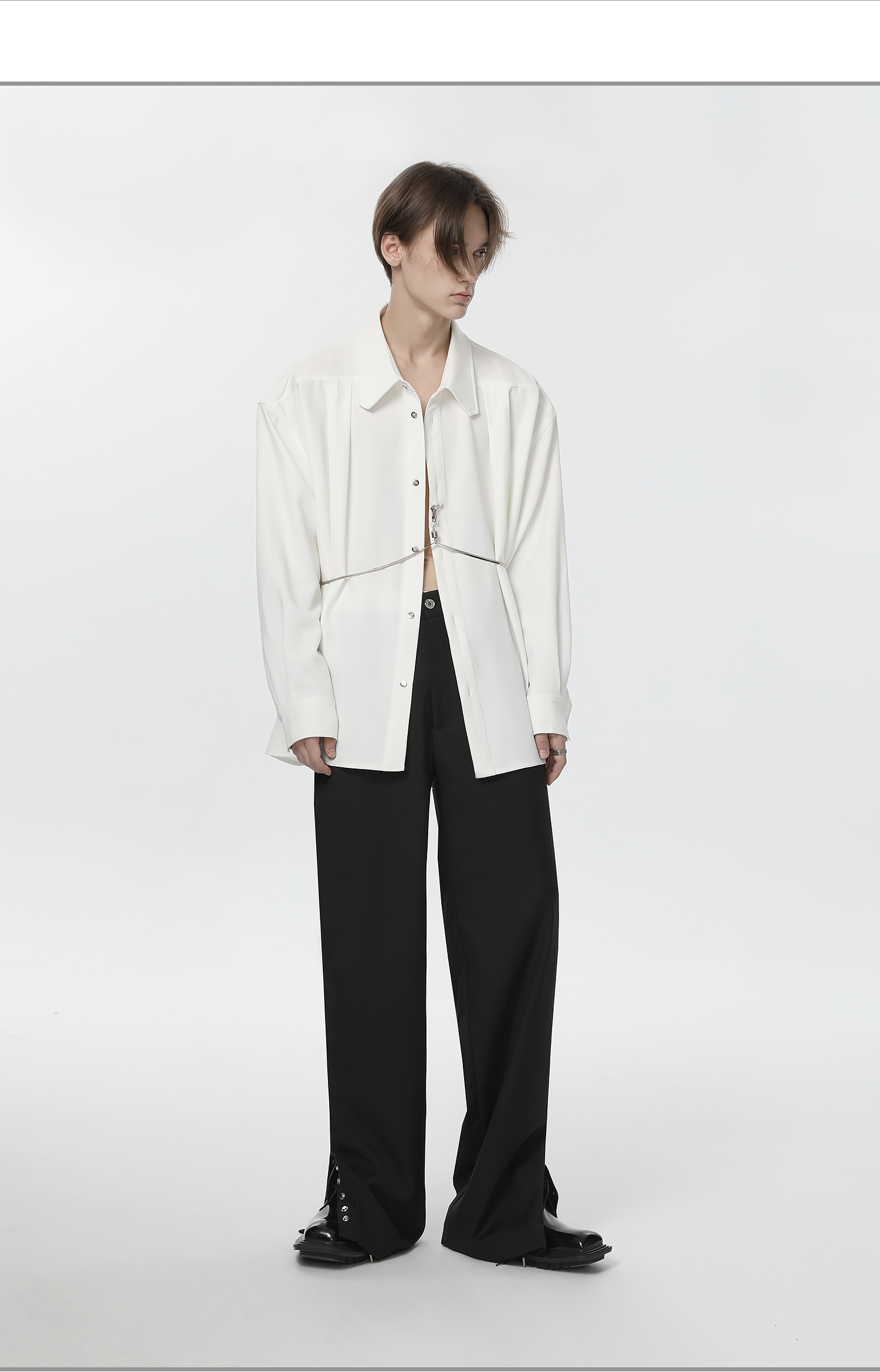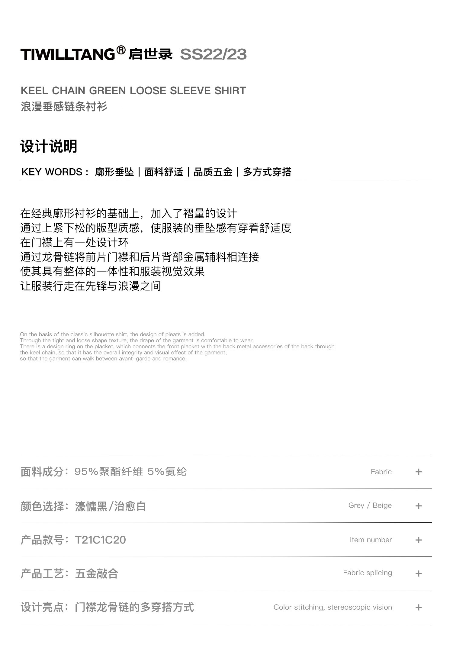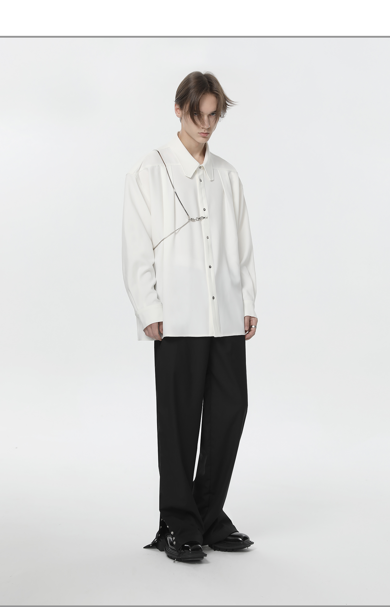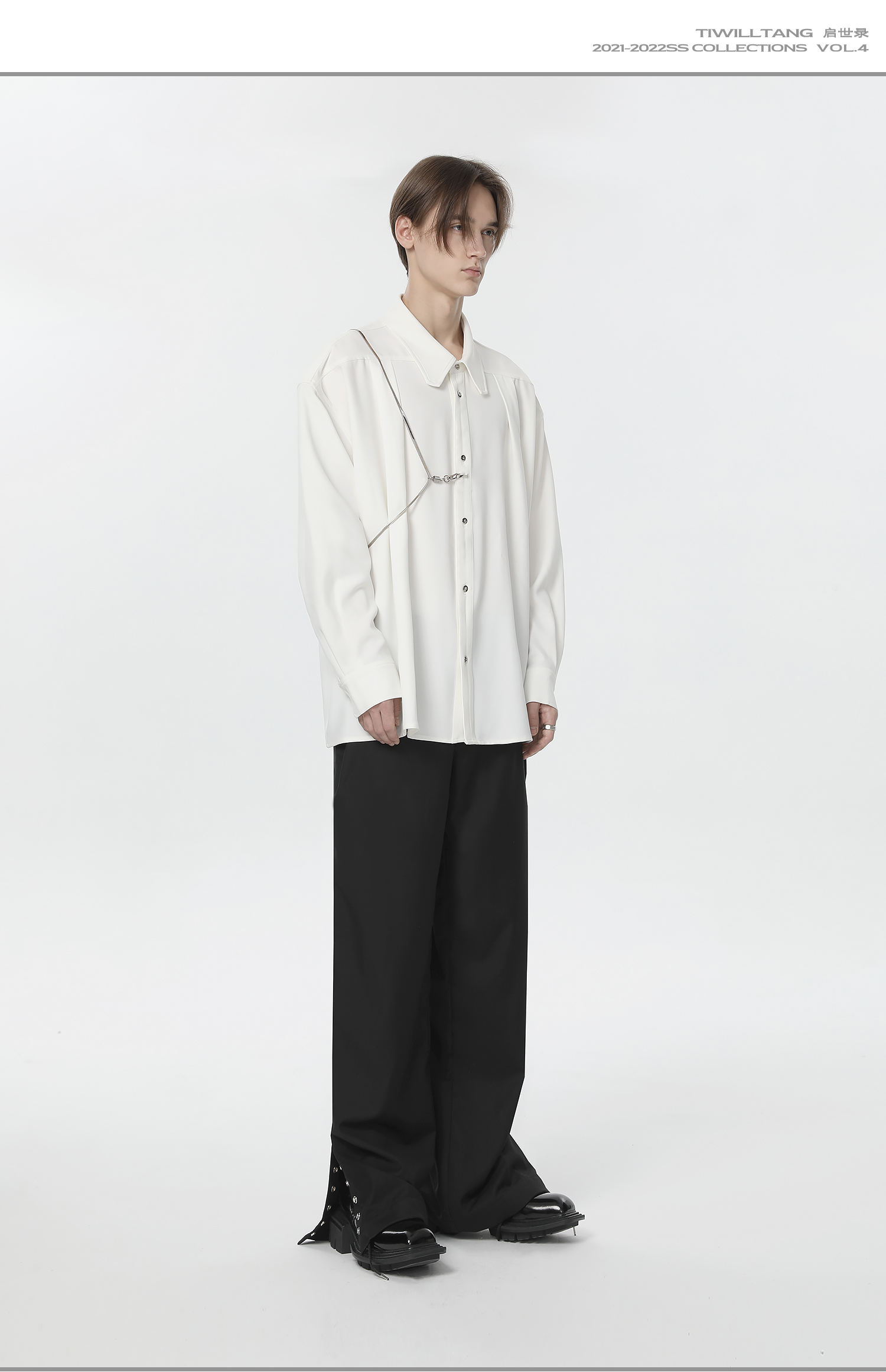 TIWILLTANG启世录“濠慵”龙骨链慵懒风垂感纯色宽松长袖衬衫黑白