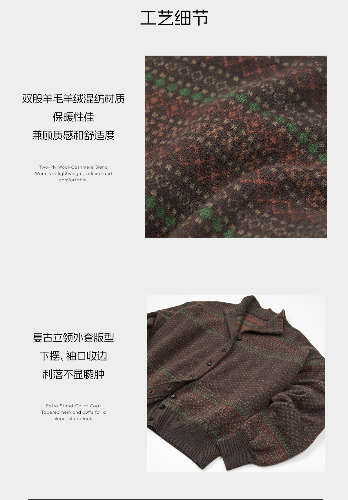 ROMI STUDIO“复古色彩”羊绒高支羊毛开衫软糯立领毛织RWCAW65766