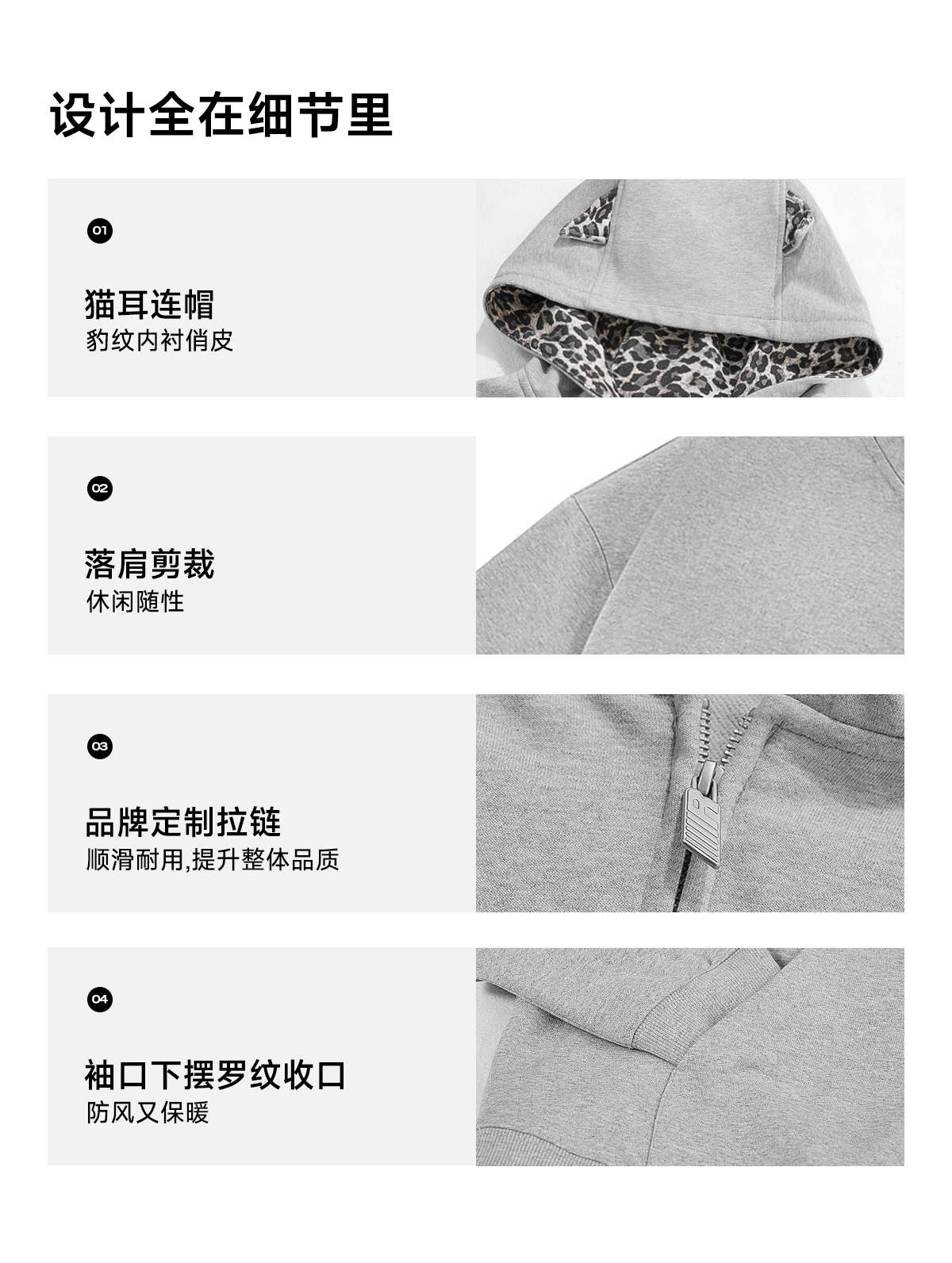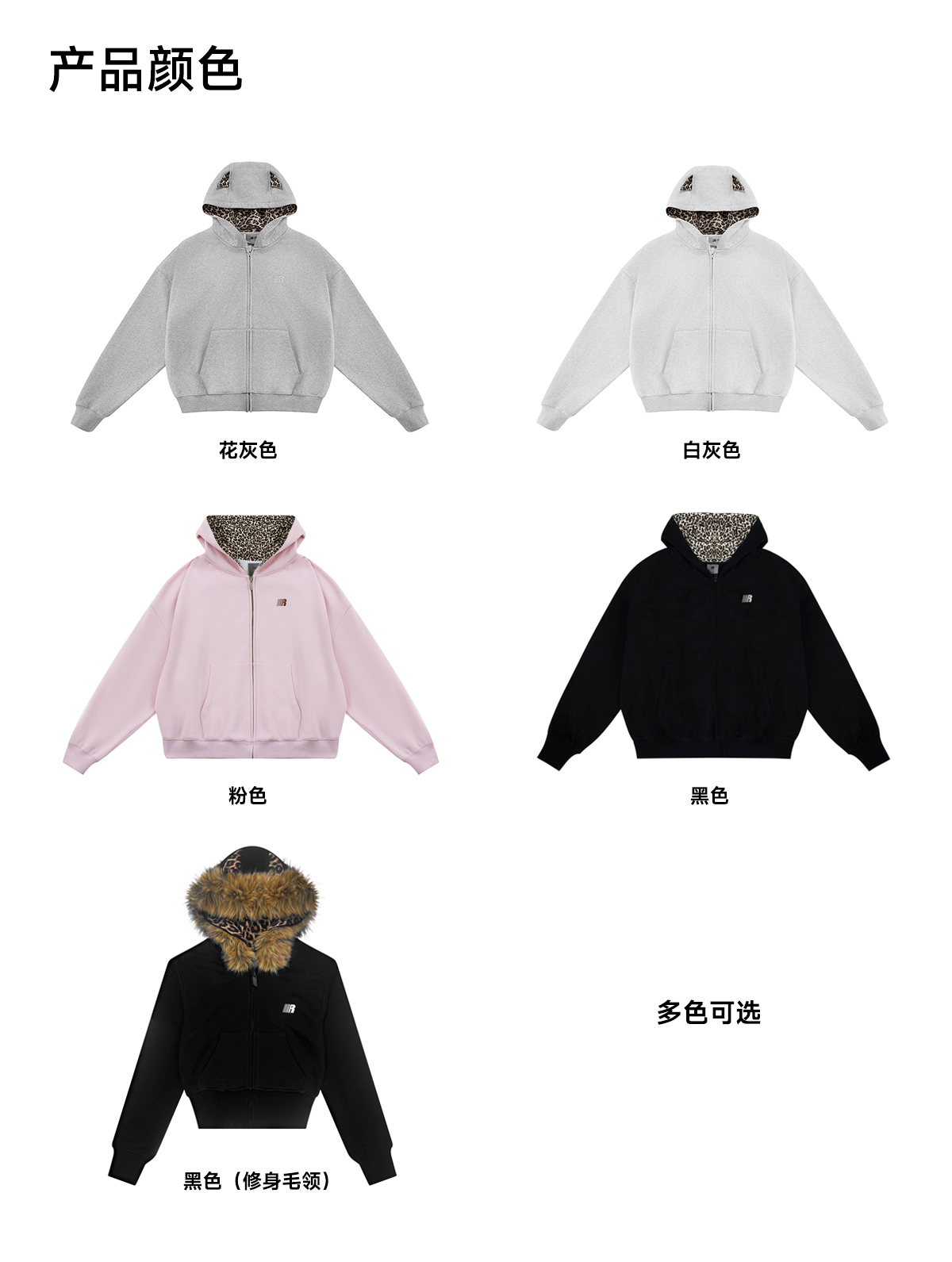 FDR官方店 7A抗菌耳朵豹纹连帽卫衣外套男女秋季美式蓄热锁温上衣